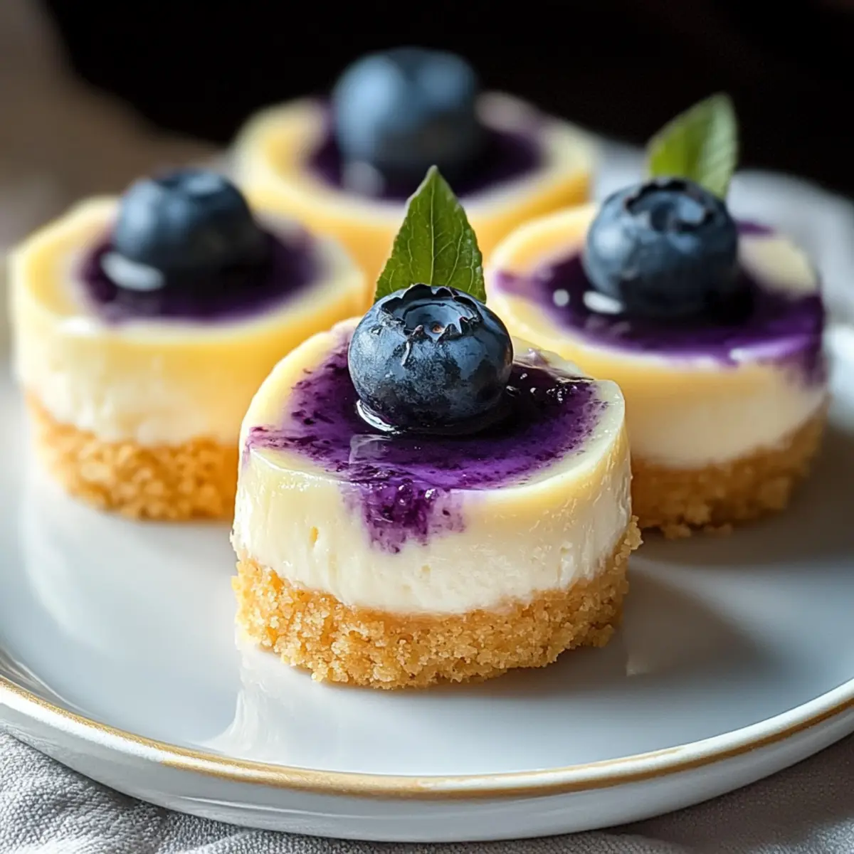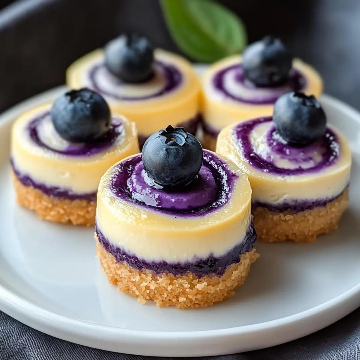 The sweet aroma of fresh blueberries mingling with zesty lemon takes me back to sunny days spent with family, laughter echoing in the air. With these Mini Lemon Blueberry Cheesecakes, I’ve captured that vibrant essence into a delightful dessert that’s sure to impress. Not only are they a crowd-pleaser, perfect for summer gatherings, but they also offer the convenience of being make-ahead treats. Imagine savoring each creamy bite, complemented by a crunchy graham cracker crust and a luscious blueberry swirl, all while enjoying the sunshine without being anchored to the kitchen. Plus, they’re easily customizable for those with dietary preferences, whether you’re after gluten-free or dairy-free options. Ready to indulge in a slice of bliss that’s both fresh and fabulous? Let’s dive into this refreshing recipe!