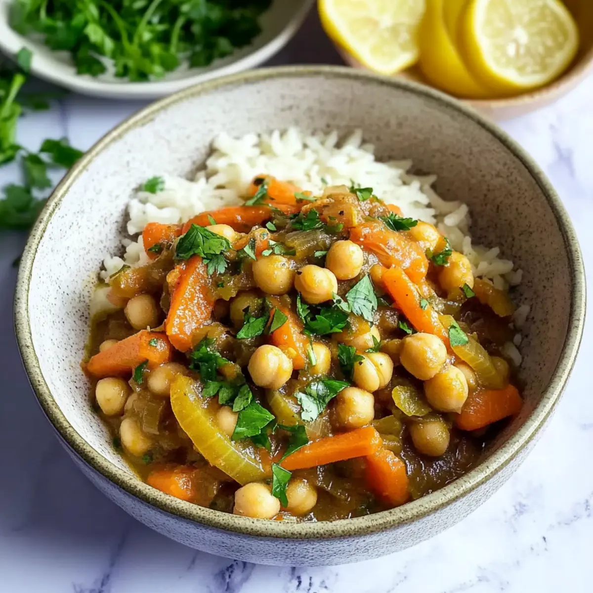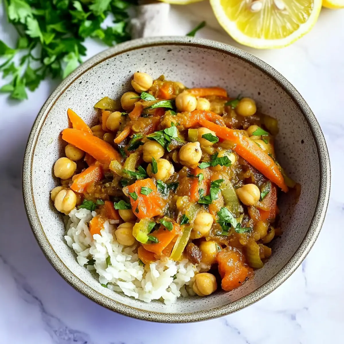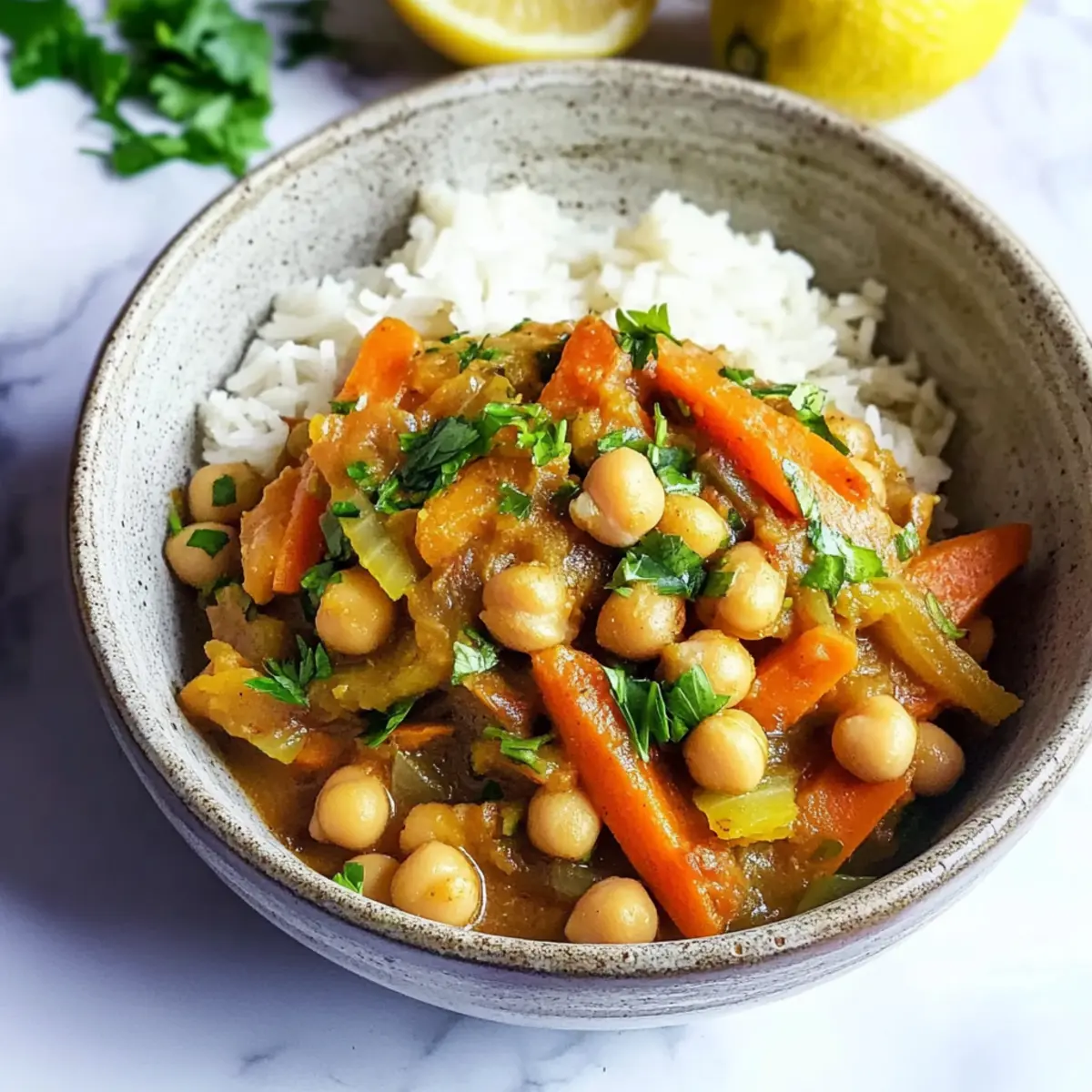 Stepping into a Moroccan bazaar is like taking a vibrant journey through a world of aromatic spices and vivid colors. That same enchanting atmosphere can be recreated in your own kitchen with this Moroccan Chickpea Tagine with Preserved Lemons. This hearty vegan dish is a delightful blend of sweet, tangy, and savory notes, making it the perfect antidote to fast food fatigue. With its quick prep time and crowd-pleasing appeal, this tagine is not only a wonderful choice for year-round meals, but it also offers a unique way to impress guests or simply enjoy a cozy night in. Are you ready to transform your dining experience with this exotic culinary creation? Why is this Tagine a Must-Try? Exotic Flavors: The Moroccan Chickpea Tagine bursts with a harmonious blend of spices and preserved lemons, delivering a culinary trip without leaving your home. Crowd-Pleasing Dish: Whether you’re cooking for family or friends, this savory stew is sure to impress even the pickiest eaters. Quick and Easy: With minimal prep time, you can whip up this hearty meal in no time, making it perfect for busy weeknights. Versatile Ingredients: Swap in your favorite veggies or dried fruits; feel free to customize this dish to fit your taste or pantry! Healthy Comfort Food: Packed with nutrients, it’s not just satisfying but a nourishing alternative to typical fast food fare. For a refreshing side, consider a light Chickpea Feta Avocado salad! Moroccan Chickpea Tagine Ingredients For the Stew • Extra Virgin Olive Oil – Enhances flavor and richness; use coconut oil for a different nuance. • Large Onion (sliced) – Base flavor component that adds sweetness when cooked; substitute with shallots for a milder taste. • Low Sodium Chickpeas (1 can or ~2 cups cooked) – Provides protein and texture; can use dried chickpeas if soaked and cooked beforehand. • Large Carrots (4) – Adds natural sweetness and nutrition; substitute with parsnips for a twist. • Garlic (2 cloves, smashed) – Infuses flavor into the stew; omit if sensitive to garlic. • Ground Cumin (1 tsp) – Adds warmth and a distinct aromatic quality; use coriander for a different spice layer. • Ground Coriander (1 tsp) – Complements cumin and adds depth. • Ground Cinnamon (1/2 tsp) – Provides a hint of sweetness and warmth; nutmeg can be used for variation. • Ground Ginger (1/2 tsp) – Adds a zestful heat; fresh ginger can be substituted. • Vegetable or Chicken Broth (2 cups) – Acts as the cooking liquid; use homemade stock for richer flavor. • Salt (1/4 tsp) – Enhances overall flavor; adjust to taste. • Chopped Preserved Lemon (1) – Key ingredient that brightens the dish; substitute with a mixture of lemon juice and zest. • Tapioca Flour (1 tbsp) – Helps thicken the sauce to stew-like consistency; arrowroot or cornstarch also works. • Chopped Dried Dates (1/4 cup) – Introduces sweetness; swap with raisins or figs. • Chopped Dried Apricots (1/4 cup) – Adds fruity tang; use dried peaches if unavailable. • Chopped Cilantro or Parsley (optional, 2 tbsp) – Adds freshness; if you dislike cilantro, use parsley instead. Unlock the mouthwatering flavors of this Moroccan Chickpea Tagine and let your taste buds embark on a delicious journey! Step‑by‑Step Instructions for Moroccan Chickpea Tagine Step 1: Preheat the Cooking Vessel Begin by preheating your tagine on low heat for about 10 minutes, allowing it to warm gradually. If you’re using a pot instead, heat it over medium-low heat. This step is essential to season your tagine properly while ensuring even cooking, creating a perfect base for the Moroccan Chickpea Tagine. Step 2: Sauté the Aromatics Increase the heat to medium and drizzle in 2 tablespoons of extra virgin olive oil. Add the sliced large onion and sauté for about 5 minutes, stirring occasionally, until the onions are softened and translucent. This aromatic foundation will infuse your dish with warmth and flavor. Step 3: Incorporate Vegetables and Spices Next, add in the large carrots along with smashed garlic, ground cumin, ground coriander, ground cinnamon, and ground ginger. Stir these flavorful spices into the pot, letting them mingle and cook for about 2 minutes until fragrant. This creates a vibrant, aromatic base critical to the Moroccan Chickpea Tagine’s flavor profile. Step 4: Add the Cooking Liquid and Remaining Ingredients Pour in the vegetable or chicken broth, and then add the chopped preserved lemon, chopped dried dates, and chopped dried apricots. Stir to combine all ingredients, making sure everything is well-coated. Cover the tagine with its lid (or pot) and let it simmer for 30 minutes, stirring occasionally to prevent sticking. Step 5: Stir in Chickpeas After 30 minutes, carefully uncover your tagine and add the low sodium chickpeas. Cook for an additional 10 to 15 minutes, allowing the flavors to meld together beautifully. The vegetables should be tender yet firm, maintaining a delightful bite, perfect for the Moroccan Chickpea Tagine. Step 6: Thicken the Stew To enhance the stew-like consistency, whisk the tapioca flour in a small bowl with a splash of water to create a slurry. Stir this into the tagine, ensuring it’s evenly distributed. Allow the mixture to cook for another 5 minutes, thickening as it bubbles gently, creating a luscious sauce. Step 7: Final Touches and Serve Once thickened, remove from heat and fold in the chopped cilantro or parsley for a burst of freshness. Serve your Moroccan Chickpea Tagine immediately over fluffy couscous or rice, garnishing with extra cilantro if desired. Relish the deep flavors and inviting aroma of this delightful dish as you enjoy your culinary creation! Make Ahead Options These Moroccan Chickpea Tagine preparations are a lifesaver for busy weeknights! You can chop the vegetables and mix the spices up to 24 hours in advance, storing them in the refrigerator to maintain freshness. Additionally, you can pre-soak and cook drie