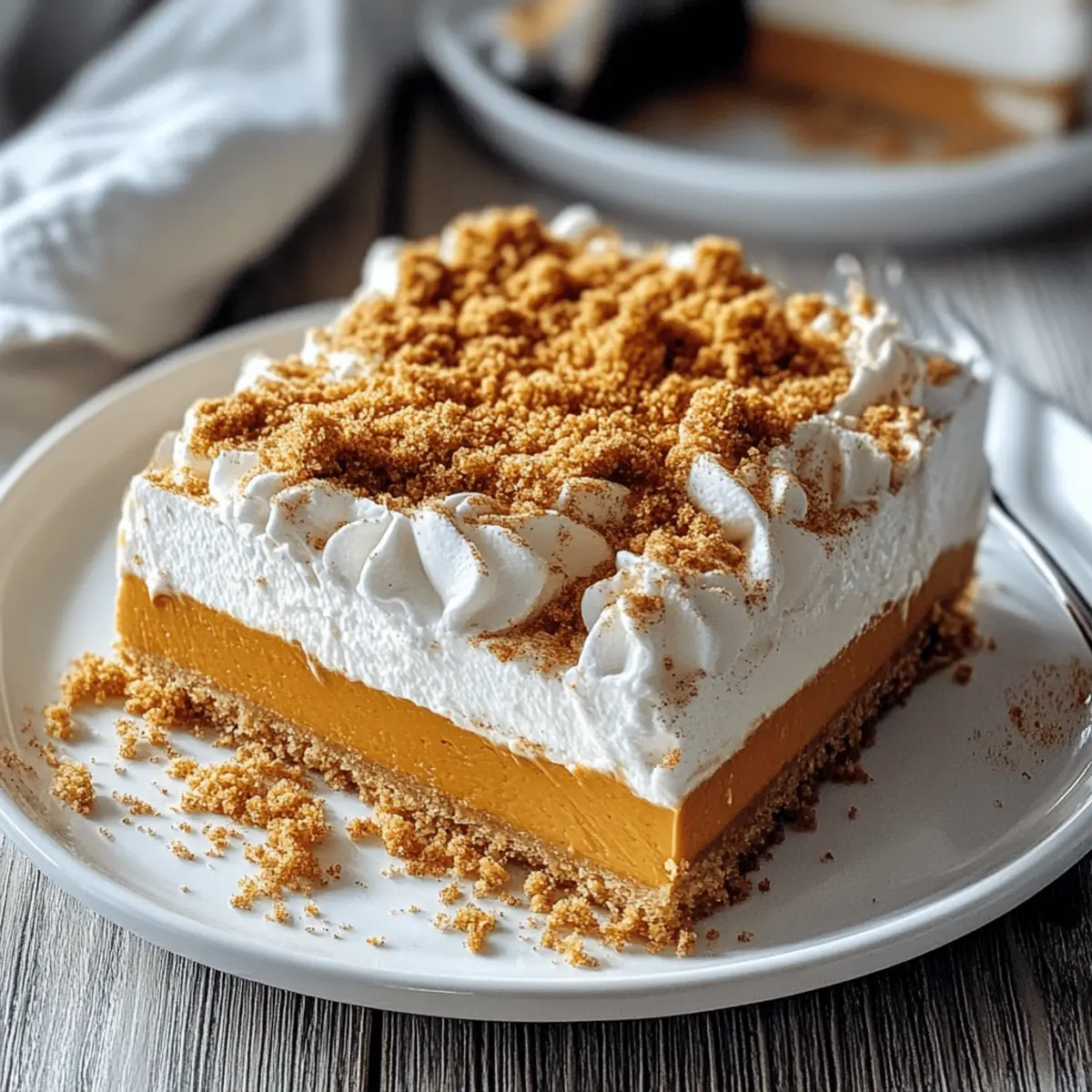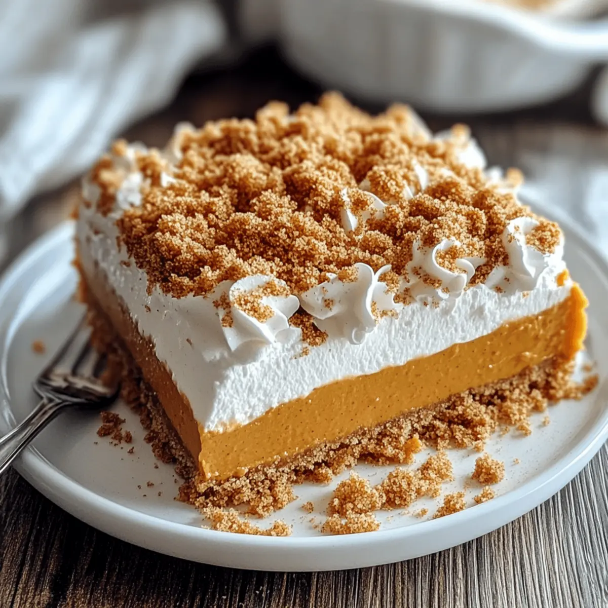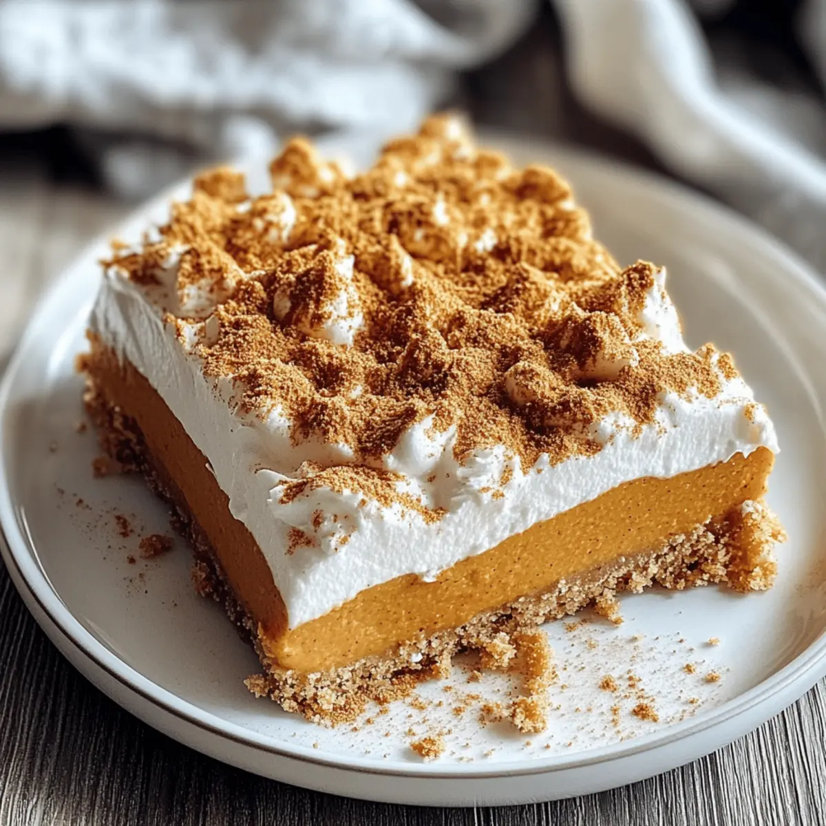 As the leaves begin to crunch beneath my feet and the air carries that crisp scent of autumn, I can’t help but crave all things pumpkin spice. That’s when I whip up my No Bake Pumpkin Spice Delight—a dessert that captures the very essence of the season without the hassle of baking. This easy dessert, featuring a buttery graham cracker crust and a creamy, spiced pumpkin filling, is perfect for both novice cooks and experienced bakers looking for a quick treat. Best of all, it requires minimal prep time and delivers maximum comfort with every delightful bite. So, why not treat yourself and your loved ones to this fabulous autumn-inspired indulgence? I can’t wait for you to try it—are you ready to celebrate the flavors of fall? Why Is This No Bake Dessert Amazing? Simplicity at Its Best: No baking means you can whip it up in no time, making it perfect for busy days or last-minute gatherings. Decadent Flavor: The creamy pumpkin filling combines perfectly with warm pumpkin pie spice, delivering a taste that screams autumn. Crowd-Pleasing Appeal: This dessert impresses at any gathering, whether it’s a cozy family dinner or a festive holiday party. Versatile Options: With simple ingredient swaps, you can cater to various dietary needs—try a dairy-free version or switch the crust to suit your flavor preference. Make-Ahead Friendly: Prep it in advance, as it stores beautifully in the fridge—perfect for busy schedules! Pair with a warm cup of chai, and you’ll have the ultimate fall treat. No Bake Pumpkin Spice Delight Ingredients For the Crust Graham Cracker Crumbs – Provide structure and texture for the crust. Substitution: Can use crushed Oreos or vanilla wafers for a different flavor profile. Unsalted Butter (melted) – Binds graham cracker crumbs together to create a rich, flavorful crust. Substitution: May replace with coconut oil for a dairy-free version. For the Filling Powdered Sugar – Adds sweetness and helps stabilize the creamy filling. Substitution: Granulated sugar can be used, but texture may vary. Cream Cheese (softened) – Forms the base of the pumpkin filling, providing creaminess with a slight tang. Substitution: Dairy-free cream cheese for a dairy-free version. Pumpkin Puree – The star ingredient that infuses the dessert with autumn flavor and color. Substitution: Sweet potato puree can be used for a different taste. Vanilla Extract – Enhances sweetness and rounds out the flavor profile. Substitution: Maple extract for a unique twist. Pumpkin Pie Spice – A blend that gives the recipe its warm, festive flavor. Substitution: Mix of cinnamon, nutmeg, and ginger for a custom spice blend. Whipped Topping (thawed) – Lightens the filling and provides a fluffy texture. Substitution: Dairy-free whipped topping for an allergen-friendly option. Step‑by‑Step Instructions for No Bake Pumpkin Spice Delight Step 1: Prepare the crust In a medium bowl, mix together 1 ½ cups of graham cracker crumbs and ½ cup of melted unsalted butter until the mixture resembles wet sand. Use a spatula to evenly press this mixture into the bottom of a 9×9-inch dish, ensuring it’s tightly packed and smooth. The crust should feel firm to the touch when you finish. Step 2: Make the filling In a large mixing bowl, beat together 1 cup of powdered sugar and 8 ounces of softened cream cheese using an electric mixer until the mixture is creamy and smooth, about 2-3 minutes. This step is essential for achieving a lump-free filling for your No Bake Pumpkin Spice Delight, so take your time to blend it well. Step 3: Combine flavors Add 1 cup of pumpkin puree, 1 teaspoon of vanilla extract, and 1 teaspoon of pumpkin pie spice to the cream cheese mixture. Blend on low speed until all ingredients are completely incorporated and the filling has a vibrant orange color and an inviting aroma, about 1-2 minutes. Step 4: Fold in whipped topping Gently fold in 2 cups of thawed whipped topping using a spatula until the mixture is uniformly fluffy. Be careful not to overmix; you want the filling to maintain its light and airy texture. Look for a smooth consistency that is free of any streaks of whipped topping. Step 5: Assemble Spread the pumpkin mixture evenly over the prepared graham cracker crust, smoothing it out with a spatula. Ensure that the filling reaches the corners of the dish for a well-distributed appearance. The bright orange filling should contrast beautifully with the crust underneath, signaling that your No Bake Pumpkin Spice Delight is almost complete. Step 6: Chill Cover the dish with plastic wrap and refrigerate for at least 2 hours until the filling is set and firm to the touch. This chilling time is crucial for helping the flavors meld together and achieving perfect slices when serving. Step 7: Garnish Before serving, remove the dessert from the refrigerator and top it with additional whipped topping, a sprinkle of cinnamon, and crushed graham crackers for added texture. These finishing touches not only enhance the presentation but also elevate the autumn flavor profile of your No Bake Pumpkin Spice Delight. No Bake Pumpkin Spice Delight: Customization Ideas Feel free to get creative and make this delightful dessert your own with these easy variations! Dairy-Free: Substitute cream cheese with dairy-free cream cheese and use coconut whipped topping for a creamy, allergen-friendly option. Want everyone to enjoy it? With this simple switch, you get all the seasonal flavors without the dairy. Gluten-Free: Use gluten-free graham cracker crumbs or a mix of nuts and oats to create a crust that’s just as tasty. This option ensures that the dessert remains just as delicious while catering to gluten-sensitive friends. Sweetness Level: Adjust the sweetness by using less powdered sugar or consider a sugar alternative like Stevia. A little experimenting can lead to the perfect balance for your palate—it’s all about what feels right for you! Pumpkin Spice Boost: Amp up the flavor by