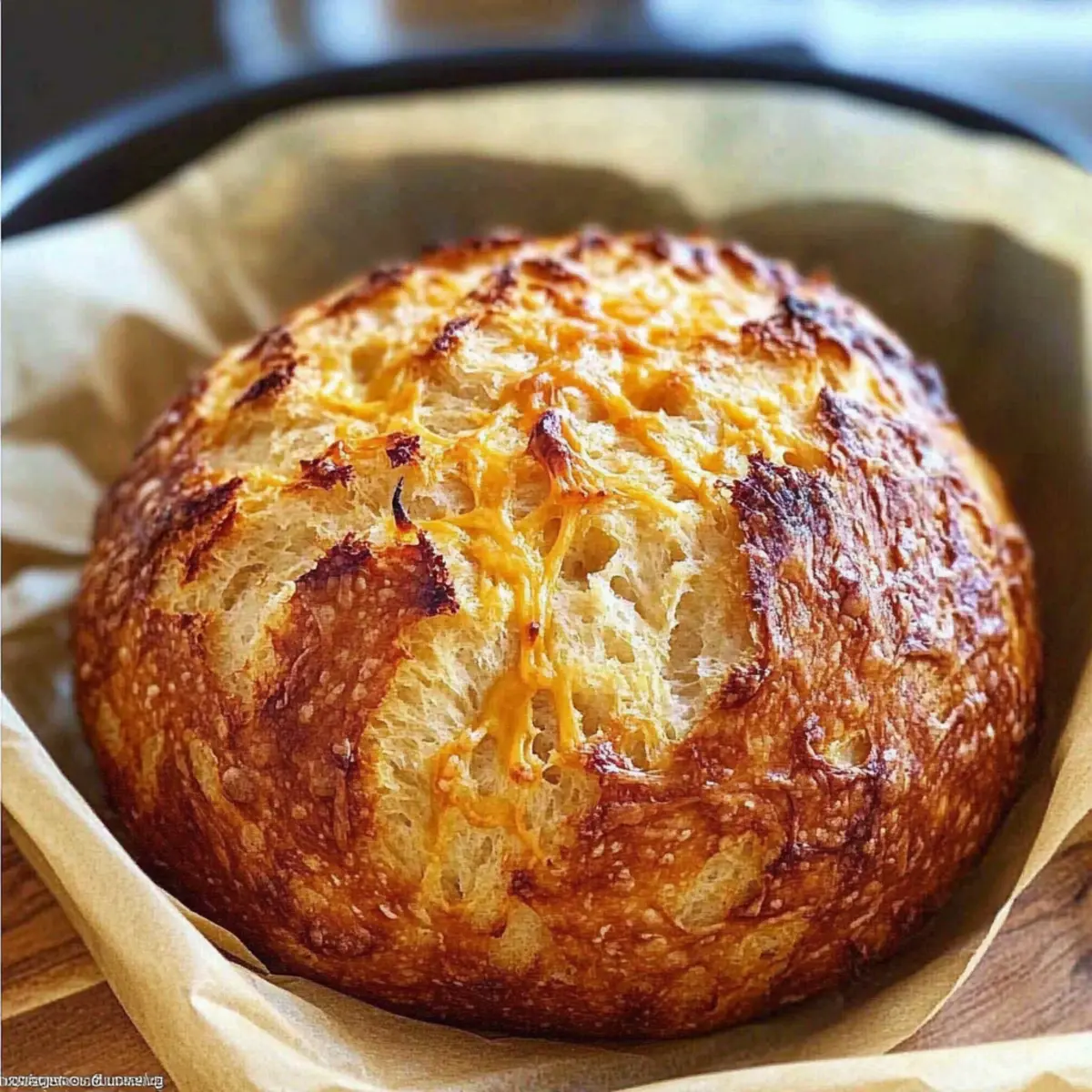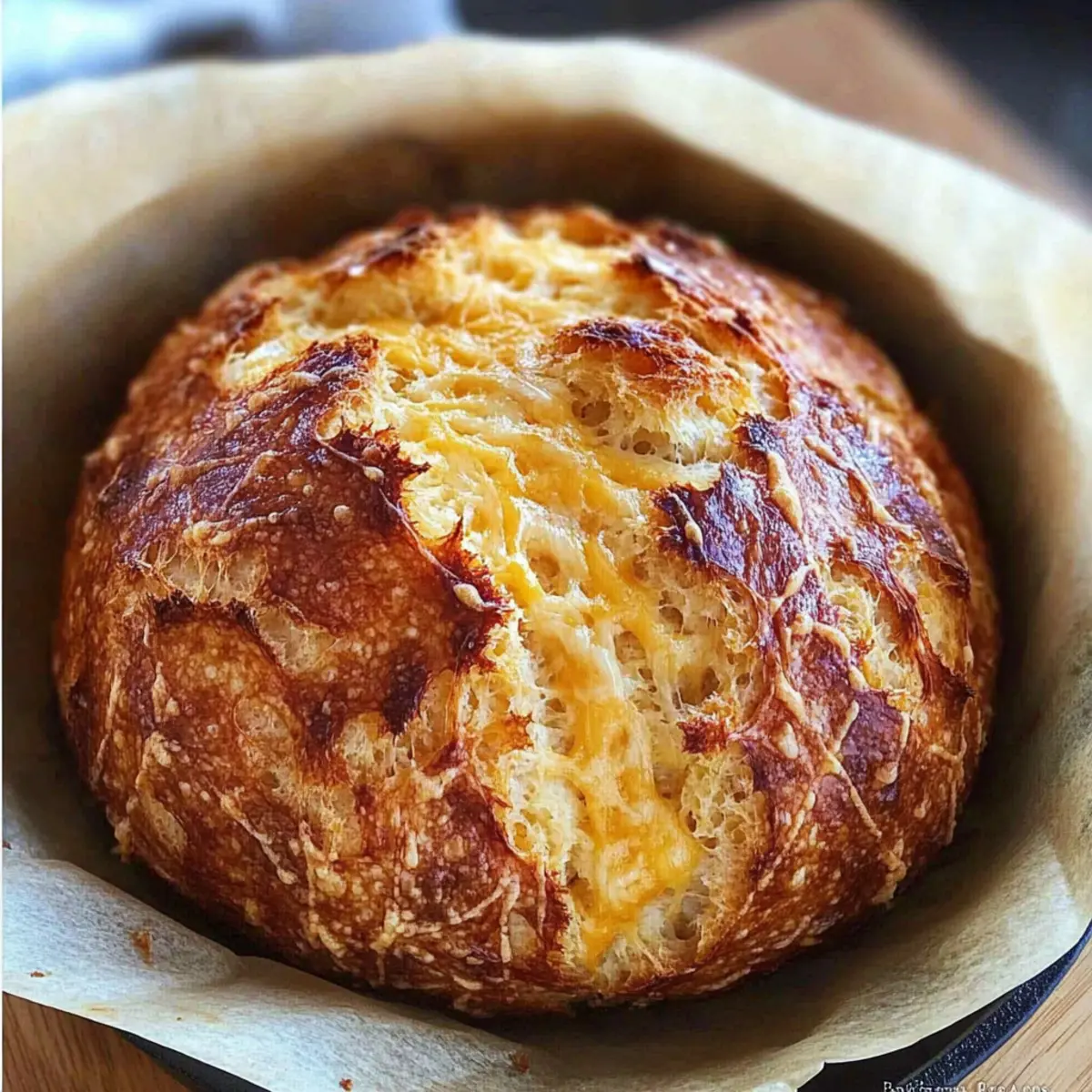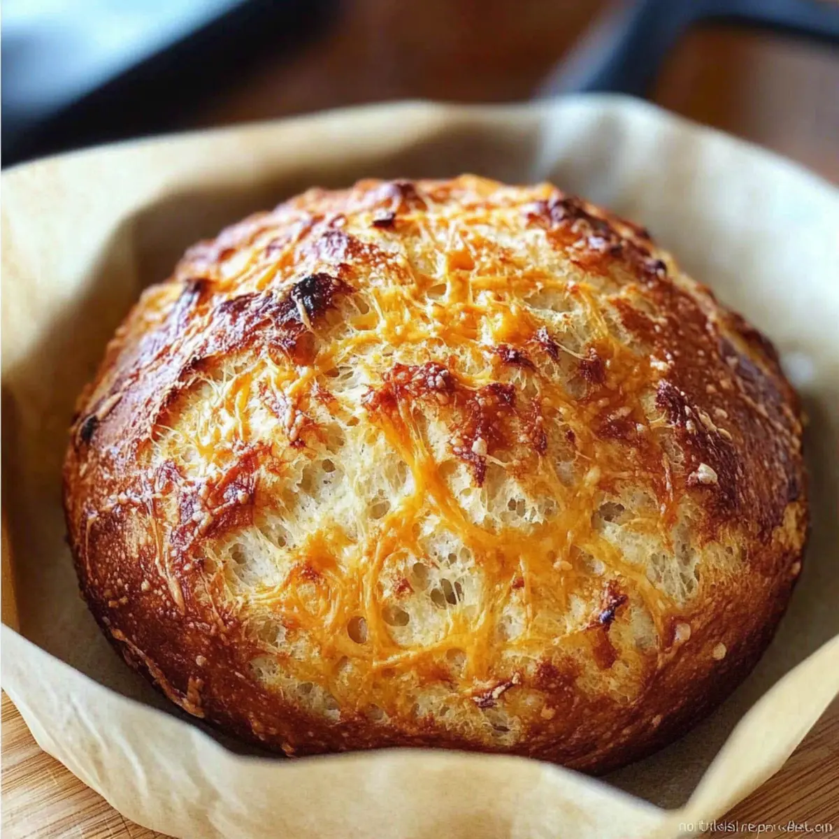 The moment the aroma of warm, cheesy bread wafts through your kitchen, it feels like a warm embrace. This No Knead Cheddar Bread is not just any bread; it’s a simple yet stunning artisan loaf that brings comfort and joy without demanding much from you in return. With just a few pantry staples and zero kneading required, this recipe offers a foolproof way to elevate your homemade bread game. The result? A beautifully crusty exterior that encases a soft, chewy inside, overflowing with chunks of melted cheddar cheese. Perfect for impressing dinner guests or cozy evenings with your loved ones, this bread will quickly become a staple in your home. Are you ready to transform your kitchen into a bakery? Let’s dive in! Why is No Knead Cheddar Bread a must-try? Simplicity at its finest: This recipe eliminates the need for kneading, making it perfect for busy bakers or beginners. Deliciously cheesy: The sharp cheddar cheese infuses every bite with a rich flavor that elevates the humble loaf to new heights. Artisan quality: With a beautifully crusty exterior and a chewy interior, this bread rivals what you’d find at a bakery, impressing all who taste it. Versatile variations: Whether you experiment with Gruyère or add herbs, each version offers a unique twist that keeps things exciting. Perfect pairing: Pair your bread with a comforting soup or enjoy it plain with butter for a simple yet indulgent treat. Time-saving: Minimal hands-on time means you can continue with your day, making it an effortless addition to your routine. Try your hand at creating this No Knead Cheddar Bread and explore more delightful options like Banana Bread Chocolate for your baking pleasure! No Knead Cheddar Bread Ingredients For the Bread • Flour – Essential for structure; all-purpose flour works best, but feel free to substitute with half whole wheat for added flavor. • Instant Yeast – This is what leavens the bread; ensure it’s fresh for the best rise and airy texture. • Salt – It enhances flavor and strengthens gluten; don’t skip it for that delightful taste! • Lukewarm Water – Activate the yeast with water that’s between 100°F and 110°F; too hot can kill it, while too cold will stall the process. • Sharp Cheddar Cheese – The star of the show! Adds savory richness; you could replace it with Gruyère or smoked Gouda for a different twist. For the Topping (Optional) • Coarse Sea Salt – Sprinkle on top before baking for an added savory crunch that perfectly complements the cheesy loaf. Discover the ease of making this No Knead Cheddar Bread and let its deliciously cheesy aroma fill your home! Step‑by‑Step Instructions for No Knead Cheddar Bread Step 1: Mix the Dry Ingredients In a large mixing bowl, whisk together 3 cups of all-purpose flour, 1 teaspoon of instant yeast, and 1 teaspoon of salt until well blended. This dry mixture creates the foundation for your No Knead Cheddar Bread, so make sure it’s evenly combined to ensure consistent flavor and texture. Step 2: Add Wet Ingredients Pour in 1.5 cups of lukewarm water (between 100°F and 110°F) into the flour mixture. Stir gently with a wooden spoon or spatula until a shaggy dough forms, ensuring that no dry flour remains. The dough will be sticky, but that’s okay—this is what gives the bread its lovely texture. Step 3: First Rise Cover the bowl tightly with plastic wrap and let it rest at room temperature for 12 to 18 hours. During this time, the dough will undergo a slow fermentation, doubling in size and developing bubbles on the surface. Look for a slightly domed appearance and a bubbly texture to signal readiness. Step 4: Incorporate the Cheese Once the dough has risen, sprinkle about 1 cup of grated sharp cheddar cheese over the surface. Gently fold the cheese into the dough using a spatula until evenly distributed. This step infuses your No Knead Cheddar Bread with delightful cheesy goodness, so take care to mix carefully without deflating the dough. Step 5: Chill the Dough Cover the bowl again and refrigerate the dough for 30 minutes. This brief chill not only makes the dough easier to handle for shaping, but it also improves the final texture and ease when transferring to the Dutch oven. Step 6: Shape the Dough After chilling, turn the dough out onto a floured surface and shape it into a round loaf. Place it seam-side down on a piece of parchment paper. Let it proof for another 30 minutes at room temperature; it should puff up slightly but not double. Step 7: Preheat the Dutch Oven While the dough is proofing, place your empty Dutch oven in a cold oven and preheat to 450°F. Allow it to heat for at least 30 minutes. The preheated pot is crucial for achieving that beautiful crust on your No Knead Cheddar Bread, so don’t skip this step! Step 8: Bake the Bread When ready, carefully transfer the dough (with the parchment paper) into the hot Dutch oven. Cover with the lid and bake for 30 minutes. This step traps steam, creating a moist environment that helps form a crusty exterior. Step 9: Brown the Crust After 30 minutes, remove the lid and continue baking for an additional 15 to 20 minutes. Keep an eye on your bread as it develops a golden-brown crust. You want the internal temperature to reach 200°F—this ensures it’s fully baked through and perfect for slicing. Step 10: Cool Before Slicing Once baked, carefully transfer the bread to a wire rack and let it cool for at least one hour. Cooling is essential; if you slice the bread too soon, the interior will be gummy. Once it’s completely cooled, you can enjoy your deliciously cheesy No Knead Cheddar Bread! Make Ahead Options These No Knead Cheddar Bread loaves are perfect for meal prep enthusiasts! You can prepare the dough up to 24 hours in advance, allowing it to ferment and develop flavor before baking. After mixing the ingredients, cover the bowl tightly and let it rest at room temperature overnight. When you are ready to finish, gently fold in the grated