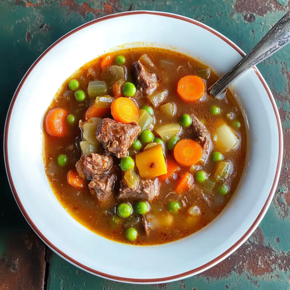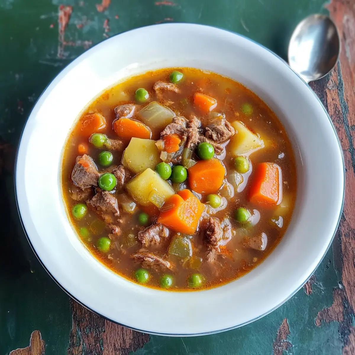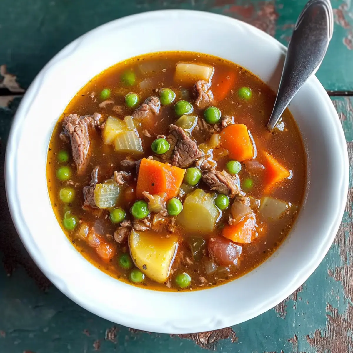 As the autumn leaves begin to fall and the air turns crisp, I can almost hear my mom’s voice calling us to the kitchen for a steaming bowl of her Old-Fashioned Vegetable Beef Soup. This hearty comfort food isn’t just a meal; it’s a warm embrace on chilly days, filled with tender chunks of beef, vibrant vegetables, and memories that linger long after the last spoonful. One of the best perks? It’s a slow cooker recipe, which means you can throw it together in the morning and return home to the delightful aroma of a family favorite. And if you’re planning for the busy days ahead, this soup freezes beautifully, making it a must-have in your meal prep arsenal. Ready to bring a taste of nostalgia to your table? Let’s dive in! Why is this soup a family favorite? Comforting and Hearty: This Old-Fashioned Vegetable Beef Soup provides a delightful warmth that transforms any meal into a memorable experience. Easy Preparation: With its slow cooker method, you can set it and forget it, perfect for busy days. Nutrient-Rich: Packed with vegetables, it’s a wholesome dish that your whole family will enjoy. Perfect for Meal Prep: The soup freezes well, making it an ideal option for those who want to enjoy home-cooked goodness any day of the week. Versatile Options: Feel free to experiment by adding your favorite vegetables or spices for a unique twist! For more delicious soup ideas, check out our Garlic Roasted Vegetables to complement your meal! Old-Fashioned Vegetable Beef Soup Ingredients • Here’s what you need to make this heartwarming soup: For the Soup Pot Roast (about 2 pounds) – The primary protein that gives this soup its rich flavor; feel free to use leftover beef for convenience. Russet Potatoes (2, chopped) – These add a hearty texture; Yukon gold or red potatoes also work great as a substitute. Frozen Seasoning Blend – Conveniently delivers a mix of flavors like onions and carrots; fresh herbs can be a lovely alternative if desired. Frozen Peas, Green Beans, and Corn – Introduces vibrant color and nutrition; fresh veggies are an option, but keep an eye on cooking times. Carrots (4 large, chopped) – Offers natural sweetness; baby carrots can replace, just adjust the quantity accordingly. Beef Broth (32 oz) – Acts as the flavorful base of the soup; using homemade broth will elevate your soup’s taste. Tomato Soup (2 cans, 10.75 oz each) – Adds a delightful tang; crushed tomatoes can be a tasty substitute for a different twist. Water (1 can) – Helps to achieve the desired consistency; you can use extra broth for a more intense flavor. Salt and Pepper – Essential seasonings to enhance the overall taste; feel free to adjust to your preference. Bring the warmth of this Old-Fashioned Vegetable Beef Soup to your kitchen and savor the comforting flavors! Step‑by‑Step Instructions for My Mom’s Old-Fashioned Vegetable Beef Soup Step 1: Prepare the Roast Begin by seasoning your pot roast generously with salt and pepper. Place the roast in your slow cooker, adding half a can of beef broth for extra moisture. Cover and set the cooker to LOW, letting it work its magic for about 10 hours, until the beef is tender. Once ready, use two forks to shred the beef into bite-sized pieces. Step 2: Sauté Vegetables In a large pot, heat 1 tablespoon of oil over medium heat. Add the chopped carrots and frozen seasoning blend to the pot. Sauté these colorful vegetables for about 5-7 minutes, stirring frequently, until they soften and release their fragrant aroma. This step adds depth and flavor to your Old-Fashioned Vegetable Beef Soup. Step 3: Combine Ingredients Now it’s time to unite the flavors! Add the shredded beef from the slow cooker into the pot, along with the chopped Russet potatoes, remaining frozen veggies, and the rest of the beef broth. Stir in the two cans of tomato soup and one can of water, mixing everything well. Don’t forget to season with extra salt and pepper to taste! Step 4: Cook the Soup Bring the mixture to a rolling boil over high heat. Once boiling, reduce the heat to low, cover the pot, and let it simmer gently for about 1 hour. Stir occasionally, keeping an eye on the consistency; if it appears too thick, feel free to add more water to reach your desired soup texture. Step 5: Serve and Savor Once the soup is bubbling and all the flavors have melded beautifully, it’s time to serve! Ladle your hearty Old-Fashioned Vegetable Beef Soup into warm bowls. Pair it with crusty homemade bread or a fresh salad for a delightful meal that brings comfort to your entire family. Enjoy the warmth and nostalgia! Expert Tips for Old-Fashioned Vegetable Beef Soup Perfect Meat Cut: Use a well-marbled pot roast for ultimate flavor and tenderness; lean cuts can result in a dry soup. Vegetable Varieties: Don’t hesitate to mix and match vegetables; bell peppers or spinach can add vibrant color and nutrition to your Old-Fashioned Vegetable Beef Soup. Flavor Boost: Enhance depth by sautéing garlic before adding vegetables; this aromatic step can elevate your soup’s flavor profile! Slow Cooker Wisdom: Avoid lifting the lid on the slow cooker too often; each opening releases heat, extending cooking time and affecting tenderness. Storage Solutions: For long-lasting freshness, use airtight containers to freeze your soup; it’s a family favorite that maintains taste when stored properly. Old-Fashioned Vegetable Beef Soup Variations Customize your Old-Fashioned Vegetable Beef Soup to suit your taste and dietary needs with these delightful twists! Lighter Option: Reduce the beef and increase the veggies. Your soup will become a colorful, nutritious delight that’s just as satisfying! Poultry Swap: Use shredded chicken instead of beef for a lighter, yet equally comforting, chicken vegetable soup. Use the same cooking method for great results. Herb Infusion: Introduce Italian herbs or a splash of Worcestershire sauce to deepen the flavor. It adds a lovely complexity tha