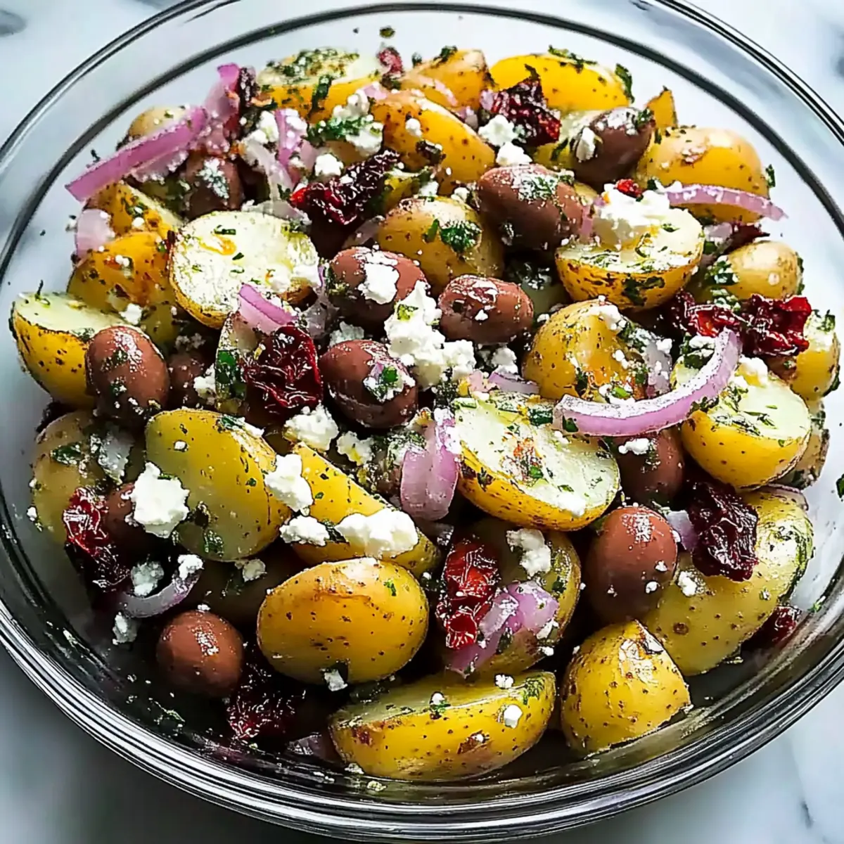 Embrace this Greek Potato Salad with Feta & Olives, and explore more delicious sides like Fresh Cucumber Caprese Salad for a complete meal!