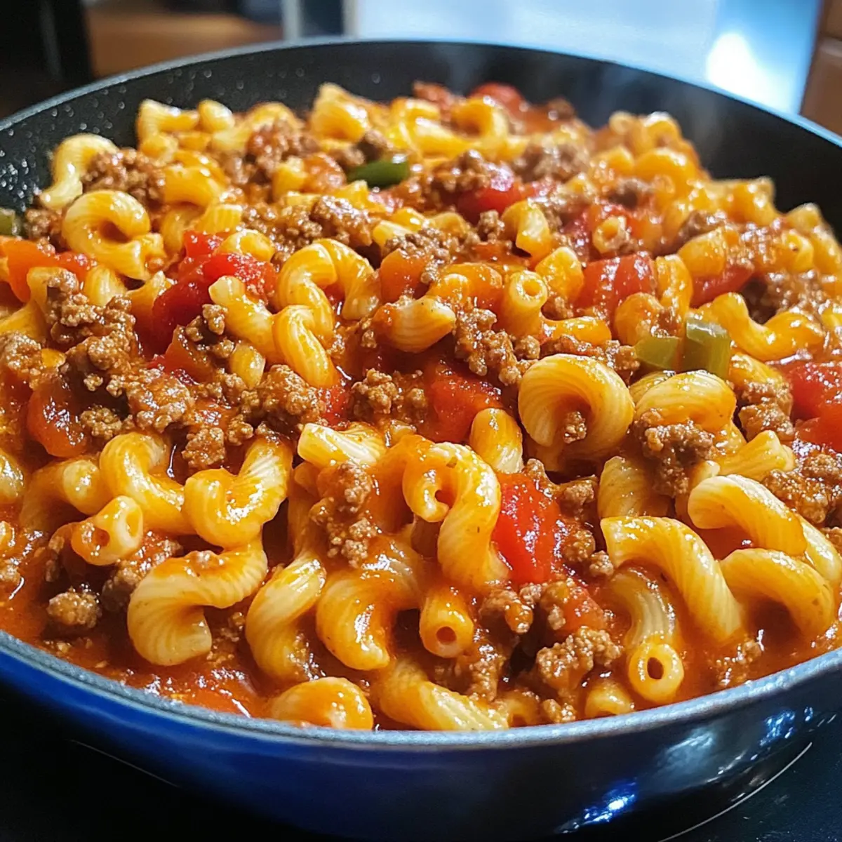 “What’s for dinner?” That familiar question hung in the air, and suddenly, I felt the pressure rising. With busy nights on the horizon, I craved something easy yet satisfying to keep everyone happy. Enter the One Pot American Goulash, my go-to solution for a comforting weeknight dinner. This hearty dish combines delicious ground beef, tender elbow pasta, and a zesty tomato sauce, all cooked in just one pot! Not only does it save time with a quick prep of only 5 minutes, but clean-up becomes a breeze, allowing for more family time after the meal. Topped with melty cheddar cheese, this dish is guaranteed to be a cozy hit at the dinner table. How can I resist? Are you ready to dive into the warmth of this delicious homemade classic? Let’s get cooking! Why Choose One Pot American Goulash? Hearty Comfort: This dish offers a satisfying flavorsome experience that feels like a warm hug after a long day. Time-Saving Delight: With a total cook time of just 30 minutes, it’s perfect for busy nights when you need to whip up something quick without sacrificing taste. Budget-Friendly: Made with affordable ingredients, this recipe can feed a crowd without breaking the bank. Versatile Ingredients: Customize it easily with whatever veggies you have on hand, or swap beef for ground turkey for a lighter option – making it ideal for family preferences! Minimal Cleanup: Cooking everything in one pot means less mess and more family time after dinner. Want to explore more one-pot wonders? Check out One Pot Shawarma or One Pot Cheeseburger Macaroni for additional quick meals! Crowd-Pleaser: Even the pickiest eaters will love this dish, especially when topped with gooey cheese! One Pot American Goulash Ingredients • Here’s everything you need for this hearty dish! For the Base Olive Oil – Adds moisture and flavor during cooking. Substitute with vegetable oil for a different flavor profile. Yellow Onion (½, diced) – Provides a foundation of flavor. Can substitute with shallots for a milder taste. Bell Pepper (1, diced) – Adds sweetness and color. Use any color bell pepper or substitute with zucchini for a lower-carb option. Ground Beef (1 pound) – Main source of protein. Substitute with ground turkey or plant-based meat for a lighter or vegetarian option. Minced Garlic (1 tablespoon) – Enhances overall flavor. Fresh garlic can replace store-bought minced for a bolder taste. For Seasoning Seasoned Salt (1 teaspoon) – Adds overall seasoning. Regular salt can be used along with additional herbs if preferred. Italian Seasoning (1 teaspoon) – Provides Italian flavor notes. Substitute with dried basil, oregano, or thyme. Onion Powder (1 teaspoon) – Intensifies onion flavor. Replace with fresh onion if desired, adjusting quantity accordingly. Garlic Powder (1 teaspoon) – Adds a hint of garlic without the sharpness. Fresh garlic can be used as an alternative. Worcestershire Sauce (1 teaspoon) – Adds umami depth. Soy sauce can substitute for a different, yet similar taste. For the Saucy Goodness Petite Diced Tomatoes (15 ounces, drained) – Contributes freshness and acidity to the sauce. Canned crushed tomatoes can be a suitable alternative. Pasta Sauce (24 ounces) – Forms the base of the sauce. Any marinara or other pasta sauce can work. Elbow Pasta (2 cups) – The main carbohydrate source. Substitute with gluten-free pasta to accommodate dietary restrictions. Beef Broth (3 cups) – Adds flavor and moisture during cooking. Vegetable broth works for a vegetarian version. For Topping Cheddar Cheese (1 cup, shredded) – Topping that adds creaminess and flavor. Any melty cheese (like mozzarella) can be used as a substitute. Embrace the flavors of the One Pot American Goulash, and let the aroma fill your kitchen as you prepare this easy, comforting meal! Step‑by‑Step Instructions for One Pot American Goulash Step 1: Sauté the Vegetables In a large pot, heat 2 tablespoons of olive oil over medium-high heat. Once the oil is shimmering, add ½ diced yellow onion and 1 diced bell pepper. Sauté the vegetables for 3-4 minutes until they are softened and fragrant, stirring occasionally to ensure even cooking. This flavorful base is essential for the One Pot American Goulash. Step 2: Brown the Ground Beef Next, add 1 pound of ground beef to the pot and cook it for about 5-7 minutes, breaking it apart with a spoon until browned and thoroughly cooked, with no pink remaining. Stir in 1 tablespoon of minced garlic and cook for an additional minute, allowing the garlic’s aroma to enhance the savory mixture. Drain any excess grease to keep your goulash balanced. Step 3: Season the Mixture Sprinkle in 1 teaspoon of seasoned salt, 1 teaspoon of onion powder, 1 teaspoon of garlic powder, and 1 teaspoon of Italian seasoning. Drizzle in 1 teaspoon of Worcestershire sauce to add depth. Stir everything together, ensuring the spices evenly coat the beef and vegetables. The mixture should now be fragrant and bursting with flavor, setting the stage for the One Pot American Goulash. Step 4: Add the Saucy Elements Pour in 15 ounces of drained petite diced tomatoes and 24 ounces of pasta sauce, mixing well to combine. Then, add 2 cups of elbow pasta and 3 cups of beef broth to the pot, stirring everything together. Bring the mixture to a gentle simmer over medium heat, keeping an eye on it as it begins to bubble, signaling that it’s time for the pasta to cook. Step 5: Cook and Stir Allow the One Pot American Goulash to cook for about 20 minutes, stirring occasionally to prevent sticking and ensure the pasta cooks evenly. You’ll know it’s ready when the pasta is tender and has absorbed some of the delicious sauce, creating a hearty consistency. Adjust heat as necessary to maintain a gentle simmer throughout this time. Step 6: Serve and Enjoy Once the goulash is cooked to perfection, remove the pot from the heat. Serve the One Pot American Goulash immediately, topped with 1 cup of shredded cheddar c