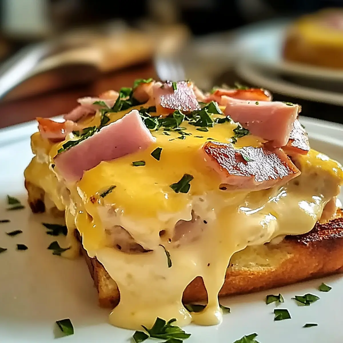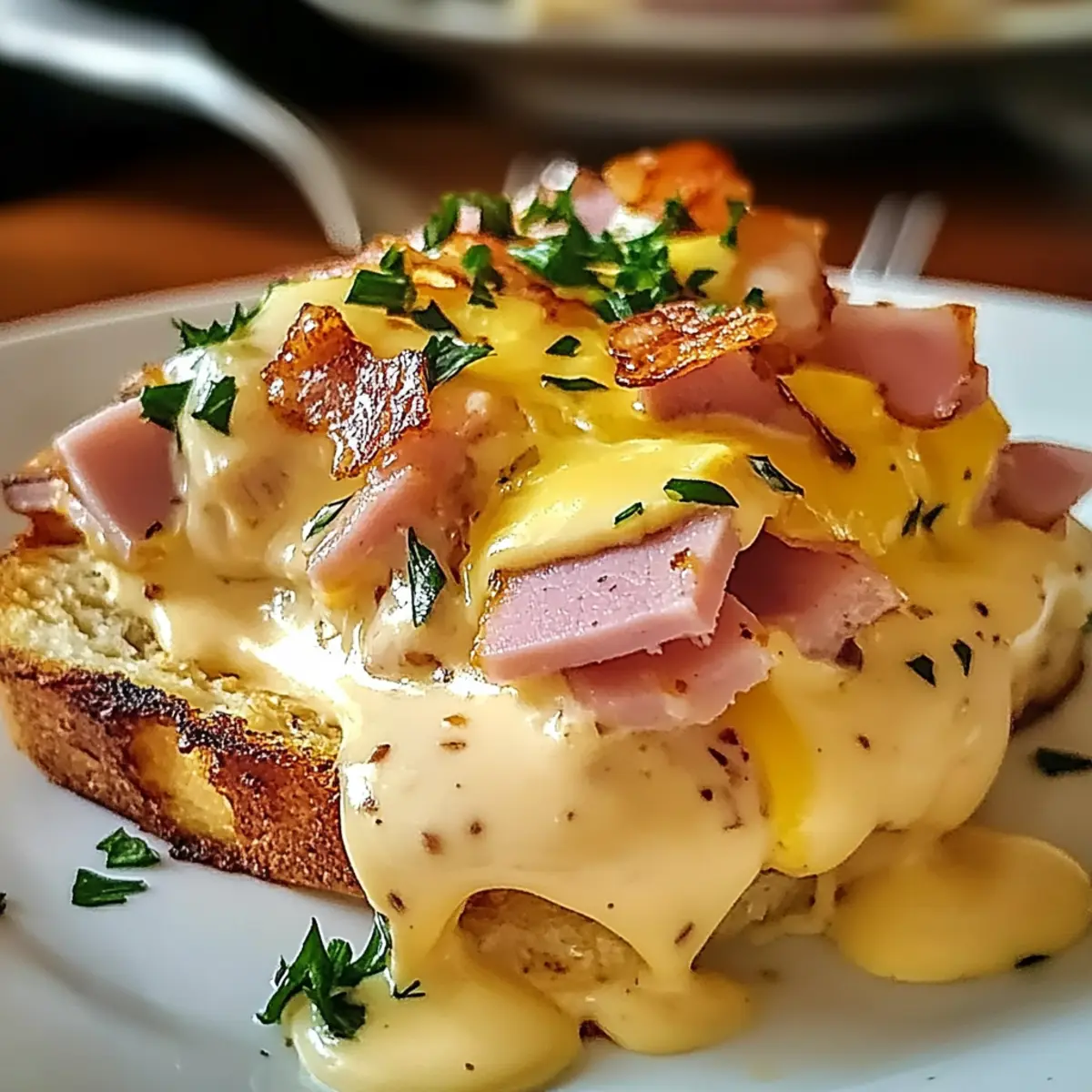 As the clock strikes 9 AM on a relaxed Sunday morning, the sweet aroma of freshly baked Breakfast Casserole gently beckons you from the kitchen. This Overnight Eggs Benedict Casserole is the perfect brunch solution to turn any busy day into a leisurely gathering with family and friends. With minimal effort the night before, you’ll wake up to a dreamy dish filled with hearty ham, fluffy eggs, and a rich Hollandaise sauce that truly feels indulgent. Plus, this make-ahead recipe is not just easy—it’s a crowd-pleaser that allows you to spend more time with your loved ones rather than chained to the stove. Are you ready to elevate your brunch game? Let’s dive into making this effortlessly delightful casserole together! Why Choose Overnight Eggs Benedict Casserole? Effortless Preparation: With most of the work done the night before, your morning can be relaxed and enjoyable. Savory Goodness: The combination of ham, eggs, and rich, creamy Hollandaise sauce creates a flavor explosion that everyone will love. Family-Friendly: This casserole is perfect for feeding a crowd, making it ideal for family gatherings or brunch with friends. Versatile Options: Feel free to swap out ham for sautéed veggies or use different toppings to suit your taste. For more breakfast inspirations, try the Hashbrown Breakfast Casserole or Cheesy Hamburger Casserole. Simple and Delicious: You’ll be amazed at how such a delightful dish can come from a straightforward recipe! Enjoy the scrumptious layers of flavor without the hassle! Overnight Eggs Benedict Casserole Ingredients For the Casserole • Eggs – Provides structure and protein; substitute with egg whites for a lighter option. • English Muffins – Serves as the base and absorbs the egg mixture; toast before use to prevent sogginess. • Diced Ham – Adds savory flavor; substitute with cooked bacon or sausage for variation. • Heavy Cream – Contributes richness and a luxurious texture; can be replaced with half-and-half or whole milk for a lighter version. • Green Onions – For fresh flavor; can be substituted with chives or finely diced shallots. For the Sauce • Hollandaise Sauce – Coats the casserole for creaminess; store-bought options save time. • Butter – Adds richness and flavor to the egg mixture; no direct substitution recommended. Step‑by‑Step Instructions for Overnight Eggs Benedict Casserole Step 1: Prepare English Muffins Begin by toasting your English muffins until golden brown, allowing them to achieve a crunchy texture that absorbs the egg mixture without becoming soggy. Once toasted, cut them into quarters and layer them in a greased 9×13 inch casserole dish, ensuring the pieces fit snugly together for an even base. Step 2: Add Diced Ham Next, sprinkle the diced ham evenly over the layered English muffins, creating a savory layer that enhances the flavor of your Overnight Eggs Benedict Casserole. This combination of textures and tastes will establish a robust foundation for the casserole, promising delicious bites in every serving. Step 3: Whisk Egg Mixture In a mixing bowl, whisk together your eggs, heavy cream, salt, and pepper until well combined and frothy. This mixture should feel luxurious as the cream enhances the richness. Pour the egg mixture evenly over the muffins and ham, ensuring every piece is coated and begins to soak up those wonderful flavors. Step 4: Refrigerate Overnight Cover the casserole with plastic wrap or foil, and transfer it to the refrigerator. Allow it to chill overnight, which lets the flavors meld beautifully while the English muffins absorb the egg mixture, making them tender and bursting with taste by the time breakfast rolls around. Step 5: Let Sit and Preheat the Oven On the morning of serving, preheat your oven to 350°F (175°C). Remove the casserole from the refrigerator and let it sit at room temperature for about 30 minutes. This step ensures even baking, allowing the dish to come to a slight warmth before sliding it into the oven. Step 6: Bake Until Golden Place your casserole in the preheated oven and bake for 45–50 minutes, or until the top is set and lightly golden brown. To test for doneness, insert a knife into the center—if it comes out clean, your Overnight Eggs Benedict Casserole is ready to impress. Step 7: Serve with Hollandaise Sauce Remove the casserole from the oven and allow it to cool for a few minutes. Drizzle warmed Hollandaise sauce generously over the top just before serving. This final touch elevates your dish, creating a creamy, dreamy finish that complements the savory layers beautifully. Expert Tips for Overnight Eggs Benedict Casserole Proper Toasting: Ensure English muffins are thoroughly toasted to avoid a soggy casserole. This crucial step will keep your casserole deliciously structured. Room Temperature Prep: Allow the casserole to sit at room temperature for about 30 minutes before baking. This helps achieve even cooking and a beautifully golden top. Watch for Doneness: Use a knife to test the center of the casserole; it should come out clean when fully baked. Don’t rush—proper cooking yields the best texture. Customize Wisely: If adding vegetables or substitutes, pre-cook them to ensure tenderness in the casserole. Add-ins can elevate flavor without sacrificing texture. Storage Tips: Refrigerate leftovers in an airtight container for up to 3 days. Reheat gently in the oven to maintain the casserole’s creamy texture—avoid the microwave if possible. Make Ahead Options These Overnight Eggs Benedict Casserole preparations are perfect for busy cooks looking to simplify brunch! You can assemble the entire casserole up to 24 hours in advance by following the instructions up to refrigeration. Simply layer the toasted English muffins and diced ham in your baking dish, whisk together the eggs and heavy cream, pour it over, and cover it tightly with plastic wrap. This allows the flavors to meld and ensures the muffins soak up the egg mixture o