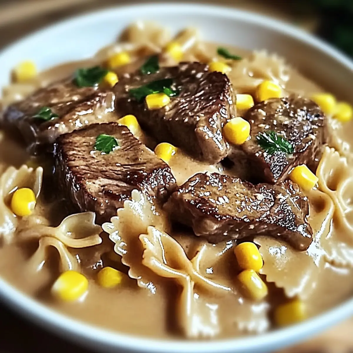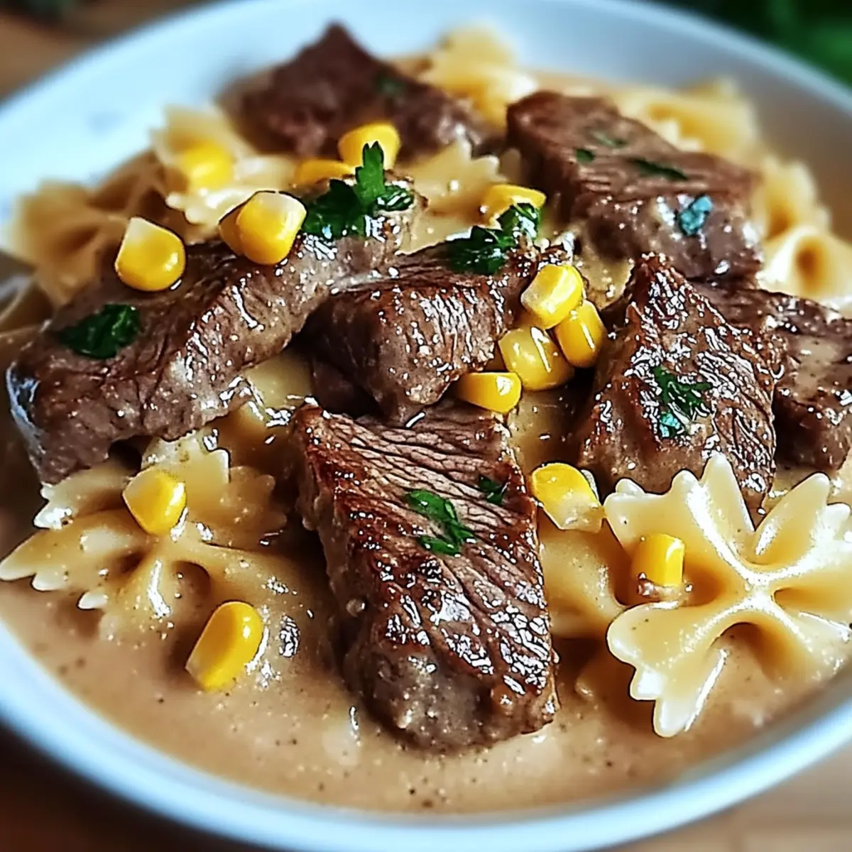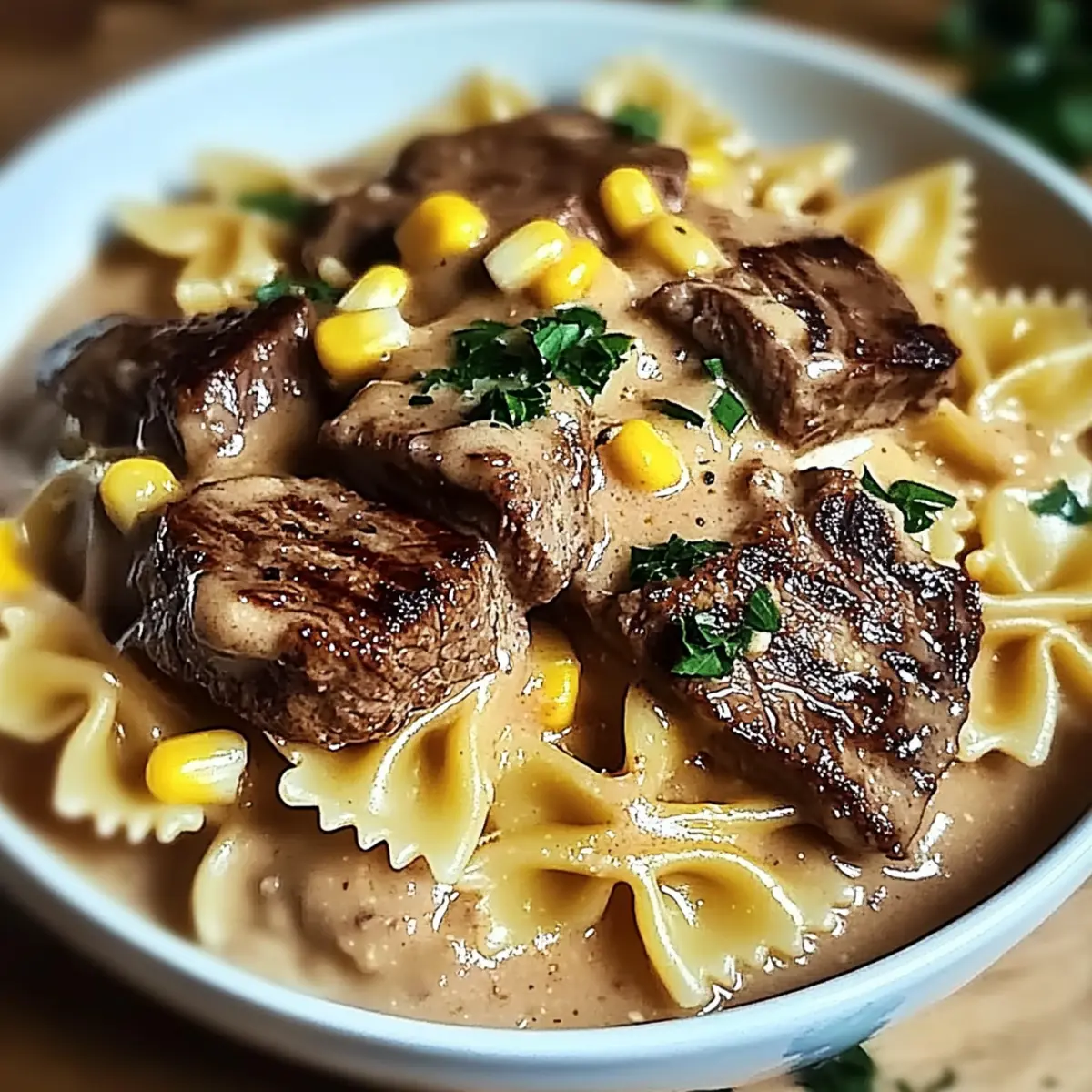 As I stood in my kitchen, the tantalizing aroma of garlic wafted through the air, mingling with the savory scent of seared steak. It made me realize how much I crave easy, comforting dishes like my Creamy Parmesan Steak & Sweet Corn Bowtie Pasta. In under 30 minutes, this recipe transforms simple ingredients into a delightful family-friendly meal that will leave everyone smiling. With the perfect balance of creamy indulgence and fresh sweetness from the corn, it’s an adaptable dish too—whether you prefer steak, chicken, or shrimp, you’re covered! Imagine gathering around the table, savoring every bite of this rich pasta while cherishing those little moments together. What’s your favorite twist on a classic dish? Why is this pasta dish a must-try? Quick & Easy: This Creamy Parmesan Steak & Sweet Corn Bowtie Pasta can be on your table in under 30 minutes, making it an ideal choice for hectic weeknights. Endless Variations: With options for steak, chicken, or shrimp, you can tailor this dish to fit your tastes or pantry. Crowd-Pleaser: Its rich, creamy sauce paired with sweet corn ensures that everyone at the table will be coming back for seconds! Comfort in Every Bite: The comforting flavors balance perfectly, evoking a warm, home-cooked vibe reminiscent of family dinners. Perfect Pairing: Serve it alongside some Garlic Butter Steak or a simple salad for a complete meal that’s sure to impress! Creamy Parmesan Steak & Sweet Corn Ingredients For the Pasta Bowtie Pasta – A fun shape that holds sauce well; feel free to swap for your favorite pasta type. For the Sauce Heavy Cream – Adds luscious creaminess; half-and-half can lighten it up without sacrificing flavor. Parmesan Cheese – Essential for a rich, cheesy taste; freshly grated melts beautifully for the best Creamy Parmesan Steak & Sweet Corn experience. Garlic – Minced for a fragrant kick that elevates the dish. For the Corn Sweet Corn – Introduces delightful sweetness; fresh is ideal, but frozen corn works just fine for convenience. For the Steak Steak (Sirloin, Flank, or Ribeye) – Choose based on your taste and budget for a hearty base. For Cooking Oil – High smoke point oils like canola or olive oil work best for searing the steak. Salt & Pepper – Basic seasoning must-haves; adjust according to your liking. Red Pepper Flakes – Optional heat addition; use according to your spice preference. For Garnish Fresh Parsley – Brightens the dish and adds a pop of color; chop finely before sprinkling. Step‑by‑Step Instructions for Creamy Parmesan Steak & Sweet Corn Step 1: Prepare the Steak Start by patting the steak dry with paper towels, ensuring a good sear. Season both sides generously with salt and pepper. Heat a skillet over medium-high heat and add a splash of oil. Sear the steak for about 4-5 minutes on each side or until it reaches a medium-rare doneness, indicated by an internal temperature of 130-135°F. Transfer it to a plate and let it rest while you prepare the other ingredients. Step 2: Sauté Sweet Corn In the same skillet, reduce the heat to medium and add the sweet corn. Sauté for 3-4 minutes until it starts to caramelize slightly. Then, add the minced garlic and cook for an additional minute, stirring constantly until fragrant. The sweet corn should be tender, glistening, and bright, ready to mix with the creamy sauce in the next step. Step 3: Cook Pasta Bring a large pot of salted water to a rolling boil. Add the bowtie pasta and cook according to package instructions, typically 8-10 minutes, until al dente. Reserve about ½ cup of the pasta water before draining. This starchy water will help create a silky sauce later. Drain the pasta and set it aside, allowing it to be ready for incorporation into the creamy mixture. Step 4: Create the Creamy Sauce In the skillet with the sweet corn, add the heavy cream and stir gently to combine. Bring the mixture to a gentle simmer, allowing it to thicken slightly as it heats through. Gradually stir in the freshly grated Parmesan cheese, ensuring it melts smoothly into the sauce. If the sauce is too thick, use the reserved pasta water to achieve your desired creaminess, stirring until fully incorporated. Step 5: Combine Pasta and Sauce Once the sauce is creamy and well-blended, add the drained bowtie pasta to the skillet. Toss everything gently to coat the pasta evenly in the luscious Creamy Parmesan Steak & Sweet Corn sauce. Heat the pasta through for about 2-3 minutes, allowing it to absorb the flavors, and check the seasoning, adjusting with salt and pepper as needed. Step 6: Slice and Serve Slice the rested steak against the grain into thin strips. Serve the creamy pasta in bowls, topped generously with the sliced steak. Garnish each plate with freshly chopped parsley and a sprinkle of extra Parmesan for added flavor. Enjoy your comforting meal, perfect for family dinners or quick weeknight indulgences! Variations & Substitutions for Parmesan Steak & Sweet Corn Feel free to tweak this recipe to fit your taste buds and dietary needs—let your creativity shine in the kitchen! Chicken Alternative: Swap steak for grilled chicken breast for a lighter option. The chicken absorbs the creamy sauce beautifully, making every bite just as indulgent. Seafood Twist: Use shrimp instead of steak, sautéing until tender. The subtle sweetness of the shrimp pairs perfectly with the creaminess of the dish. Veggie Medley: Add sautéed spinach and bell peppers for a colorful nutrient boost. This not only enhances flavor but adds a festive touch to your plate! Different Pastas: Use fusilli or penne for varied textures. Each shape will capture the creamy sauce differently, making each serving unique and delightful. Healthy Options: Consider whole wheat or gluten-free pasta to cater to different dietary needs. This small change can make a big difference while keeping the comfort intact. Dairy-Free Delight: Replace heavy cream and Parmesan with coconut cream and nutritional