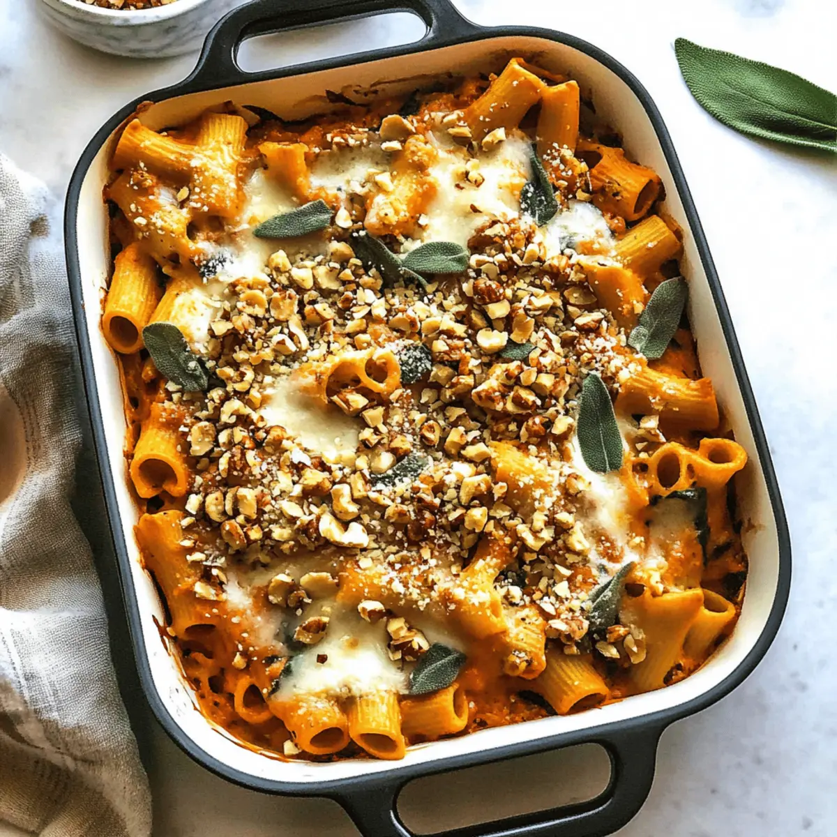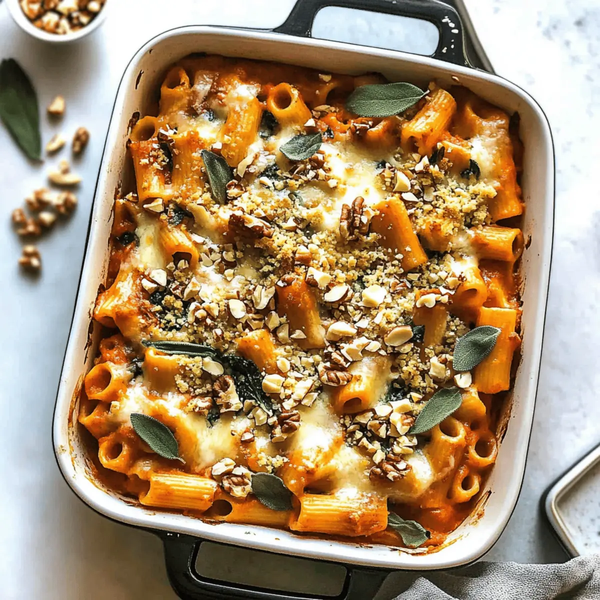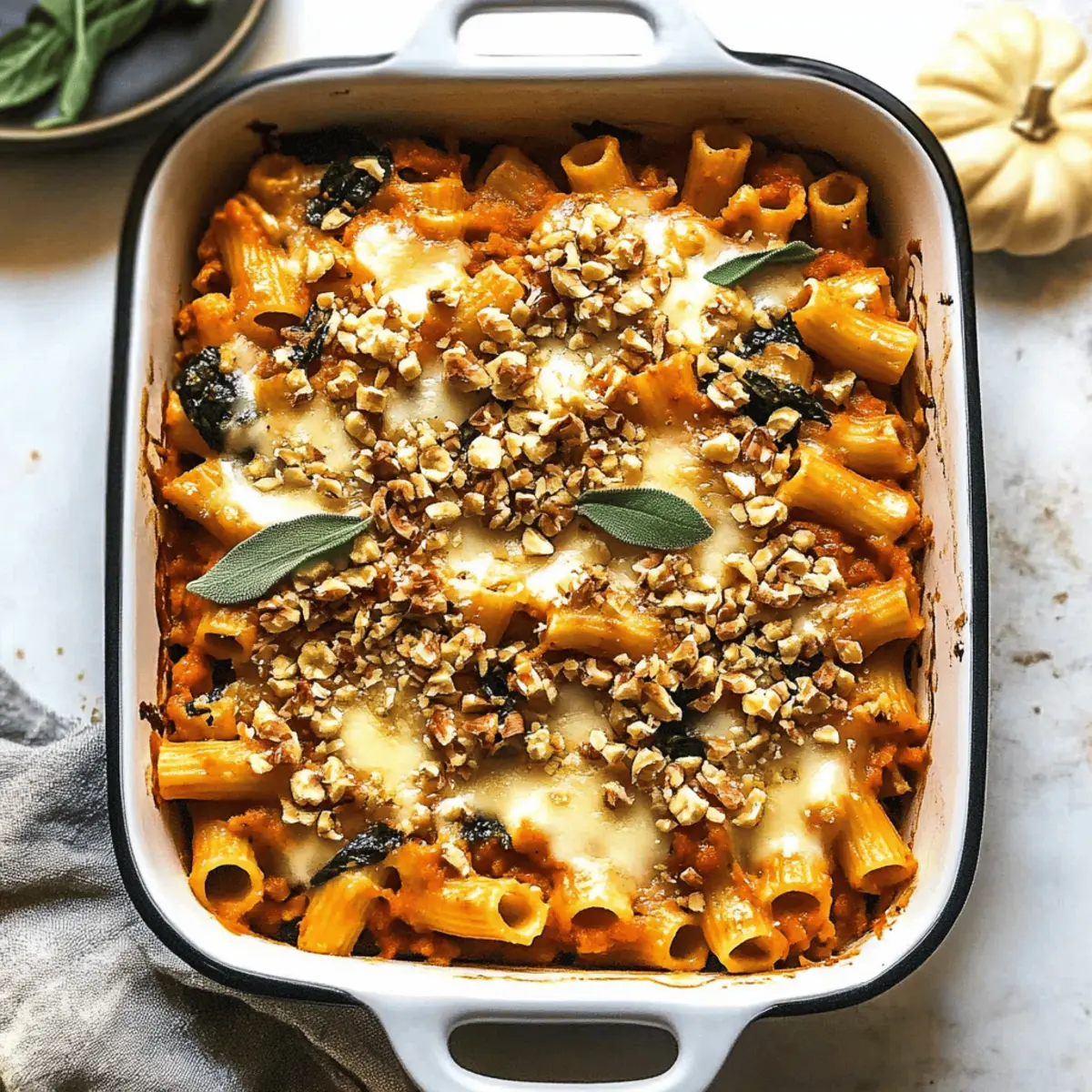 As the leaves transform into vibrant shades of orange and gold, I’m reminded of the heartwarming meals that make fall feel like home. Enter my Cheesy Pumpkin Pasta Bake with Mushrooms and Spinach, a dish that wraps you in cozy flavors and nourishing goodness. This recipe combines a creamy pumpkin tomato sauce with earthy mushrooms and fresh spinach, creating a delightful vegetarian comfort food perfect for family gatherings or a delicious night in. Packed with nutrients yet indulgently delicious, this pasta bake is not only a feast for the senses, but also a quick, satisfying solution to your weeknight dinner dilemma. Ready to dive into this autumn treasure? Let’s explore how simple ingredients come together to create a dish that will have everyone asking for seconds! Why is This Pasta Bake Amazing? Comforting warmth: This Cheesy Pumpkin Pasta Bake is the embodiment of fall, bringing a cozy hug of flavors to your dinner table. Nutrient-packed: Sneaking in nutritious veggies like spinach and mushrooms, this dish proves that comfort can indeed be healthy. Versatile ingredients: Feel free to substitute walnuts with pecans or try gluten-free pasta, adapting it to your preferences without losing the essence of taste. Quick and easy: Perfect for busy weeknights, this recipe assembles quickly but delivers a gourmet experience—everyone will savor the rich pumpkin tomato sauce! Crowd-pleaser: Great for family gatherings or cozy dinners, it’s hearty enough to satisfy, ensuring there are no leftovers to worry about! Pair this delightful dish with a fresh salad or a side of Cajun Chicken Pasta for a complete meal experience! Pasta Bake with Pumpkin Tomato Sauce Ingredients For the Pasta • Dry Pasta – 1 lb, any preferred shape will create a delightful base for your pasta bake. For the Flavor Base • Unsalted Butter – 2 Tbsp, adds richness and depth to the dish. • Olive Oil – 2 Tbsp, use extra-virgin for superior flavor, or substitute with avocado oil. • Yellow Onion – 1, finely chopped, serving as the aromatic foundation for your sauce. • Garlic – 4 cloves, minced, infusing the dish with a warm, inviting aroma. For the Vegetables • Cremini Mushrooms – 8 oz, sliced, bringing earthy flavors and a satisfying umami depth. • Fresh Spinach – 3 to 4 handfuls, a nutritional boost and vibrant color. For the Sauce • Pumpkin Purée – 1 (15-oz) can, the star of the dish, contributing creaminess and seasonal flavor. • Tomato Paste – 1/4 cup, enriching the sauce and adding complexity. • Vegetable Broth – 3 cups, forms the base of the sauce; substitute with chicken broth for added flavor. For the Seasoning • Crushed Red Pepper Flakes – 1/2 tsp, introducing a mild heat contrast; omit if you prefer a non-spicy version. • Dried Oregano – 1 tsp, enhancing the overall flavor depth of your bake. • Ground Nutmeg – 1/4 tsp, providing warm spice that complements the pumpkin beautifully. • Kosher Salt – 1 tsp, essential for elevating all the flavors. • Black Pepper – 1/2 tsp, a simple seasoning for that perfect aroma. For the Cheesy Topping • Parmesan Cheese – 1/2 cup, grated, for a nutty flavor and creamy texture. • Fontina Cheese – 1 1/2 cups, grated, lends a delightful meltiness to the dish. For the Crunch • Walnuts – 1/2 cup, finely chopped, adding pleasing crunch and nuttiness; substitute with pecans or almonds for a twist. This Pasta Bake with Pumpkin Tomato Sauce is not only easy to prepare but also a wonderful way to harness the flavors of fall! Step‑by‑Step Instructions for Cheesy Pumpkin Pasta Bake with Mushrooms and Spinach Step 1: Preheat and Cook Pasta Begin by preheating your oven to 375ºF (190ºC). In a large pot, bring salted water to a boil, then add 1 lb of dry pasta. Cook until the pasta is 2 minutes shy of al dente, which should take about 8-10 minutes. Drain the pasta and set it aside, allowing it to cool slightly while you prepare the sauce. Step 2: Toast Walnuts and Sage In a large skillet, melt 2 tablespoons of unsalted butter over medium heat. Once the butter is bubbly, add 1/2 cup of finely chopped walnuts and 1 tablespoon of chopped sage. Toast them for about 5 minutes until fragrant and lightly golden. Transfer this mixture to a bowl and set it aside; the toasted walnuts add a delightful crunch to your Cheesy Pumpkin Pasta Bake. Step 3: Sauté Vegetables Using the same skillet, heat 2 tablespoons of extra-virgin olive oil over medium heat. Add 8 oz of sliced cremini mushrooms and 1 finely chopped yellow onion. Sauté the vegetables for about 8 minutes or until they become soft and caramelized, stirring occasionally. The earthy aroma will fill your kitchen, setting the stage for a delicious pasta bake. Step 4: Build the Flavor Base Stir in 1/4 cup of tomato paste, 4 minced garlic cloves, and 1/2 teaspoon of crushed red pepper flakes. Cook the mixture for 3-4 minutes, allowing the paste to caramelize slightly. This step enhances the depth of flavor in your pasta bake, giving it a rich base that complements the pumpkin sauce beautifully. Step 5: Add Greens and Seasoning Gradually mix in 3 to 4 handfuls of fresh baby spinach, stirring until wilted. Then, season with 1 teaspoon of dried oregano, 1 teaspoon of kosher salt, 1/2 teaspoon of black pepper, and 1/4 teaspoon of ground nutmeg. These spices elevate the taste profile of your Cheesy Pumpkin Pasta Bake, bringing out the warmth of the fall ingredients. Step 6: Make the Pumpkin Sauce Deglaze the skillet with 3 cups of vegetable broth, scraping up any browned bits from the bottom. Once the broth is heated through, stir in the entire can (15 oz) of pumpkin purée, 1/2 cup of grated Parmesan cheese, and 1/2 cup of grated Fontina cheese. Cook until the cheeses are melted and the sauce is creamy, creating a smooth mixture ready to coat the pasta. Step 7: Combine Pasta with Sauce Gently fold the cooked pasta into the pumpkin sauce, ensuring every piece is well-coated. The 