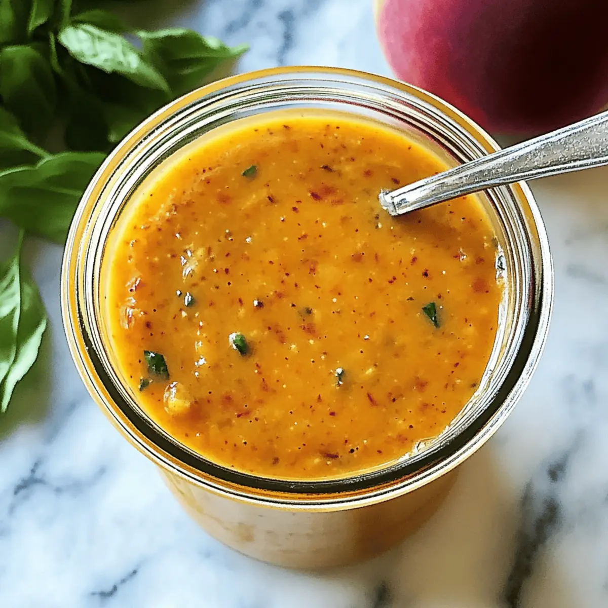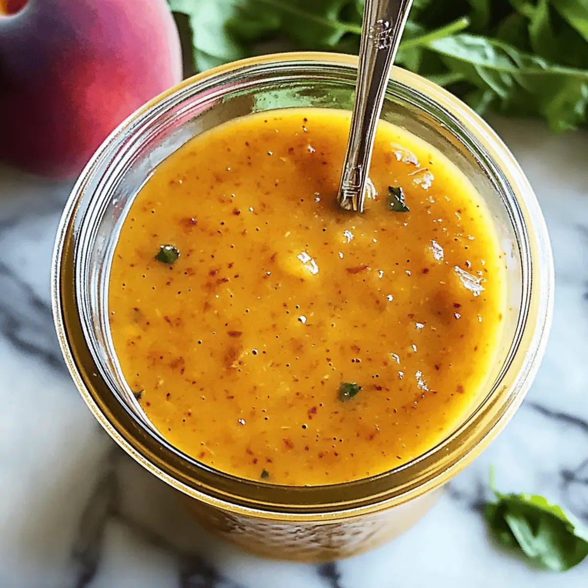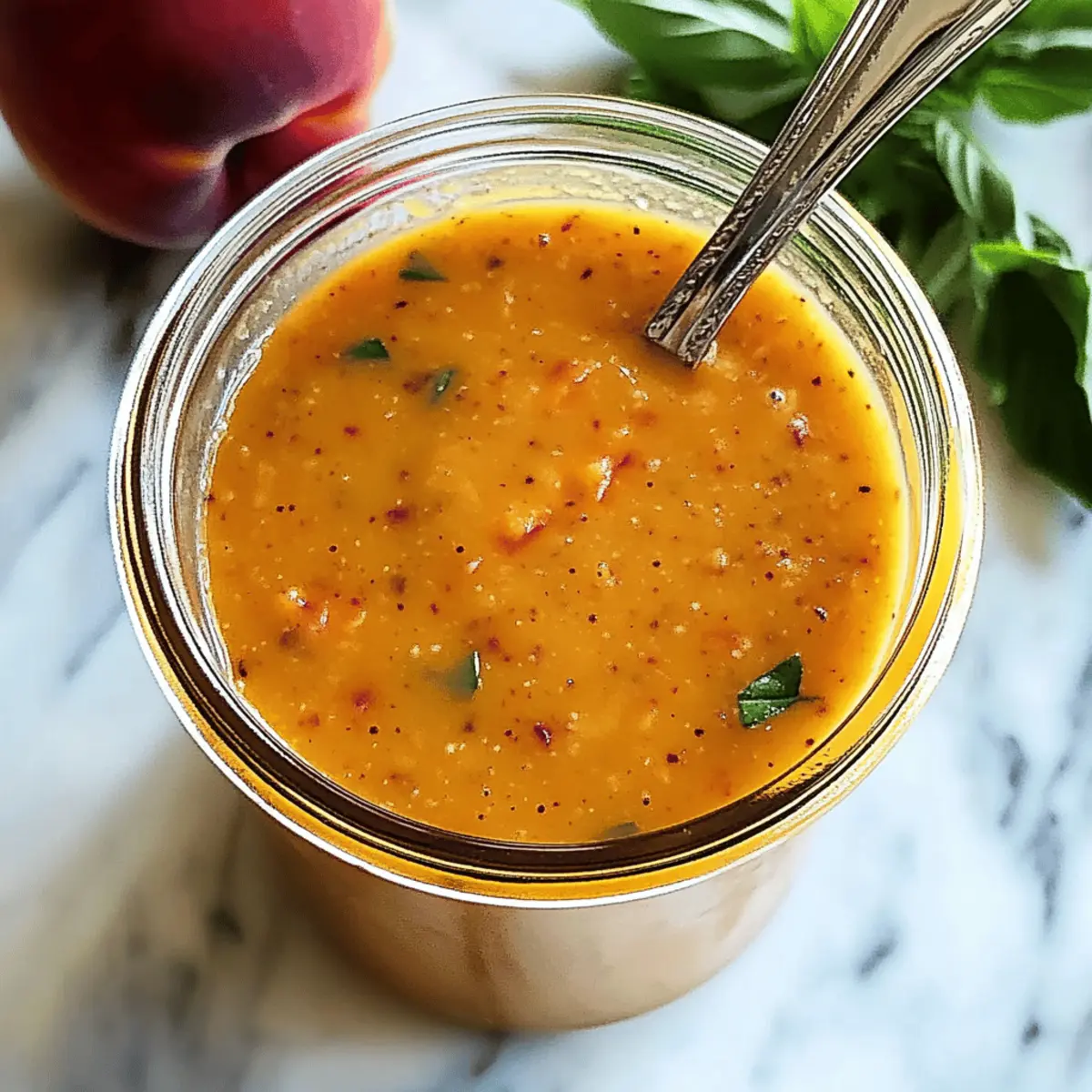 As summer rolls in, the vibrant colors and aromas of fresh produce fill the air, and I find myself gravitating towards lighter, zesty flavors. One of my absolute favorites is this Peach Honey Dijon Balsamic Vinaigrette, a delightful concoction that harmonizes the sweetness of juicy peaches with the tangy zing of Dijon mustard. With simple preparation, this dressing elevates your salads or grilled dishes to new heights, making meal prep a breeze while ensuring you savor each bite. Whether you’re looking for a quick weeknight side or a crowd-pleasing complement for a summer gathering, this vinaigrette fits the bill perfectly. Plus, it’s adaptable to fit vegan and keto diets, making it a versatile addition to your culinary repertoire. Curious to learn how to whip up this fresh dressing and bring a taste of summer to your table? Why is this vinaigrette a must-try? Quick Preparation: This Peach Honey Dijon Balsamic Vinaigrette comes together in just minutes, allowing you to spend less time in the kitchen and more time enjoying your meals. Vibrant Flavor: The luscious peach sweetness combined with zesty Dijon creates a punchy dressing that will brighten any salad or grilled dish. Versatile Enjoyment: Perfect for everything from a light summer salad to a marinade for grilled chicken or fish—this vinaigrette shines in any application. Diet-Friendly Options: Easily customizable with vegan substitutes like maple syrup, this recipe accommodates various dietary preferences. Check out my Sheet Pan Honey for more versatile meal ideas! Crowd-Pleaser: Whether hosting a BBQ or enjoying a quiet dinner at home, this dressing is sure to impress guests and family alike with its deliciously fresh taste! Peach Honey Dijon Balsamic Vinaigrette Ingredients For the Vinaigrette • Peaches – Use ripe, organic peaches for optimal sweetness and flavor. • Honey – Adds sweetness; substitute with maple syrup or agave for a vegan option. • Dijon Mustard – Provides tanginess, balancing the sweetness from peaches. • Balsamic Vinegar – Offers rich acidity; white balsamic can be milder and lighter. • Olive Oil – Adds a rich base; opt for extra virgin for the best flavor. Optional Enhancements • Fresh Herbs – Consider adding cilantro or thyme for added layers of flavor. • Fruit Variations – Substitute peaches with mangoes or blueberries to switch up the taste profile. Step‑by‑Step Instructions for Peach Honey Dijon Balsamic Vinaigrette Step 1: Prepare Peaches Begin by washing two ripe, organic peaches. Carefully peel and pit them, ensuring to remove all the skin and the stone. Once prepped, chop the peaches into smaller pieces, about 1-inch cubes, to make blending easier. The goal is to have a vibrant and juicy base for your Peach Honey Dijon Balsamic Vinaigrette. Step 2: Blend Ingredients In a blender or food processor, combine the chopped peaches, a generous drizzle of honey, Dijon mustard, balsamic vinegar, and extra virgin olive oil. Blend on high for about 30–45 seconds, or until the mixture is smooth and well combined. This step releases the fresh flavors of the peaches, creating a luscious dressing. Step 3: Adjust Texture If you prefer a chunkier texture, simply pulse the mixture a few times until it reaches your desired consistency. For a smoother vinaigrette, continue to blend until fully emulsified. Take a moment to appreciate the glossy appearance of your Peach Honey Dijon Balsamic Vinaigrette, as it will add a delightful look to your salads. Step 4: Taste and Adjust Now is the perfect time to taste your vinaigrette! Sample the dressing and decide if it needs a little more sweetness or tanginess. If you desire added sweetness, incorporate a bit more honey; for extra acidity, splash in a tad more balsamic vinegar. Blend briefly to mix any additions thoroughly. Step 5: Store for Later Use Transfer your flavorful vinaigrette into a clean glass jar with a tight-fitting lid. Refrigerate it for at least 30 minutes to allow the flavors to meld beautifully. When ready to use, give it a good shake or whisk to restore the creamy texture of your Peach Honey Dijon Balsamic Vinaigrette before drizzling over your favorite salads or grilled dishes. Make Ahead Options Preparing your Peach Honey Dijon Balsamic Vinaigrette ahead of time is a game-changer for busy home cooks! You can make the vinaigrette up to 3 days in advance by blending together the peaches, honey, Dijon mustard, balsamic vinegar, and olive oil, then storing it in a clean glass jar in the refrigerator. To maintain its vibrant flavor and texture, give it a good shake before serving, as it may thicken slightly when chilled. This convenient make-ahead option saves you precious time during busy weeknights, allowing you to enjoy the zesty, fresh flavors of this dressing, ready to elevate your salads or grilled dishes at a moment’s notice! What to Serve with Peach Honey Dijon Balsamic Vinaigrette Elevate your dining experience by pairing this vibrant dressing with complementary dishes that enhance its sweet and tangy profile. Mixed Green Salad: A fresh mix of greens and veggies will allow the vinaigrette to shine, adding brightness to every bite. Grilled Chicken: The vinaigrette works beautifully as a marinade, bringing a sweet tang that elevates simple grilled chicken to gourmet levels. Roasted Vegetables: Drizzling it over roasted seasonal vegetables adds layers of flavor while the warm veggies enhance the vinaigrette’s sweetness. Quinoa Salad: Tossing this vinaigrette with quinoa and fresh herbs creates a zesty, hearty salad perfect for summer picnics or lunches. Fruit Platter: A fruit salad of berries and citrus offers a refreshing contrast, highlighting the peaches’ flavors in the vinaigrette. Crusty Bread: Serve as an accompaniment for dipping; the vinaigrette adds an aromatic twist to fresh bread, inviting bites of flavor. Sparkling Water: Pairing with a glass of sparkling water brightened with lemon or lime complement