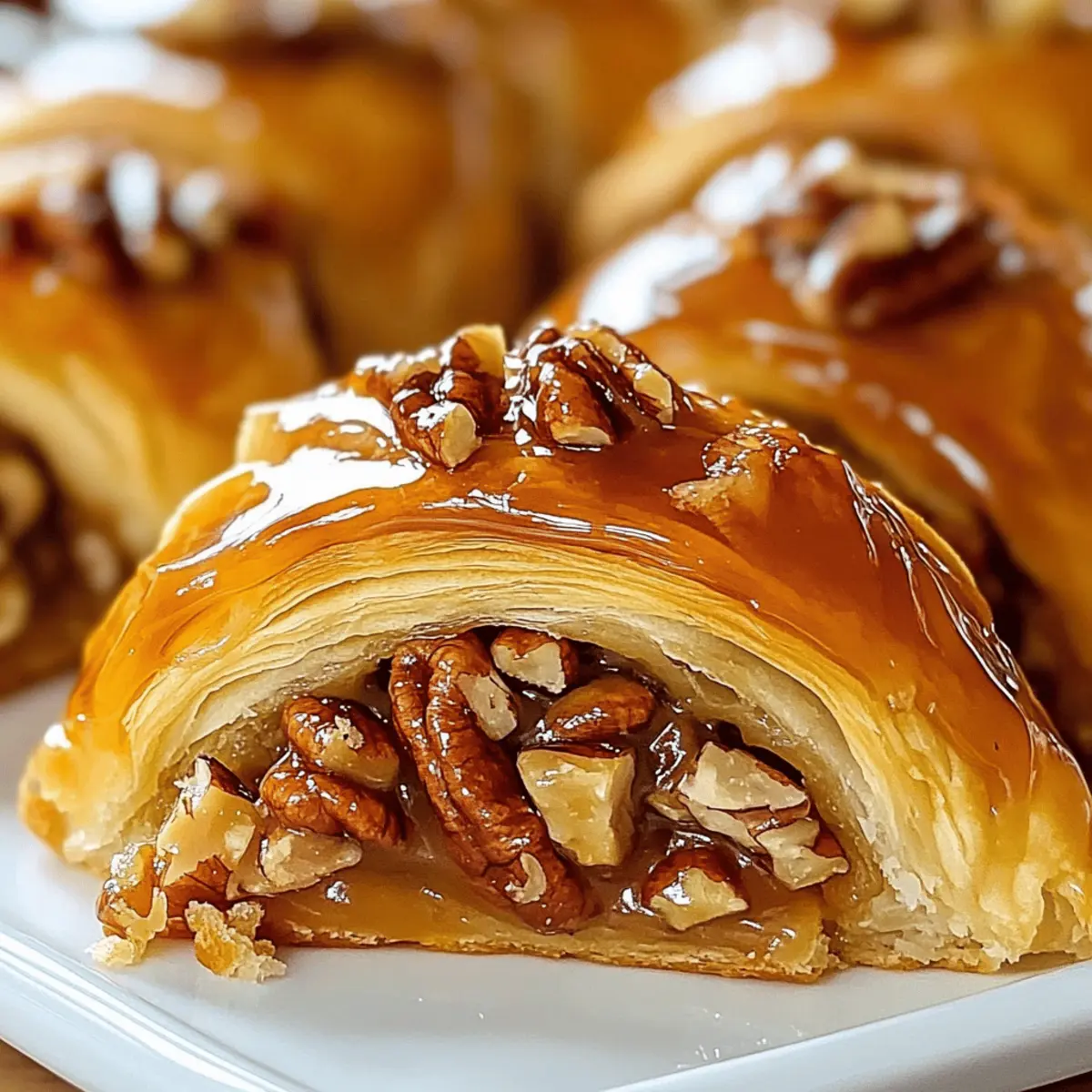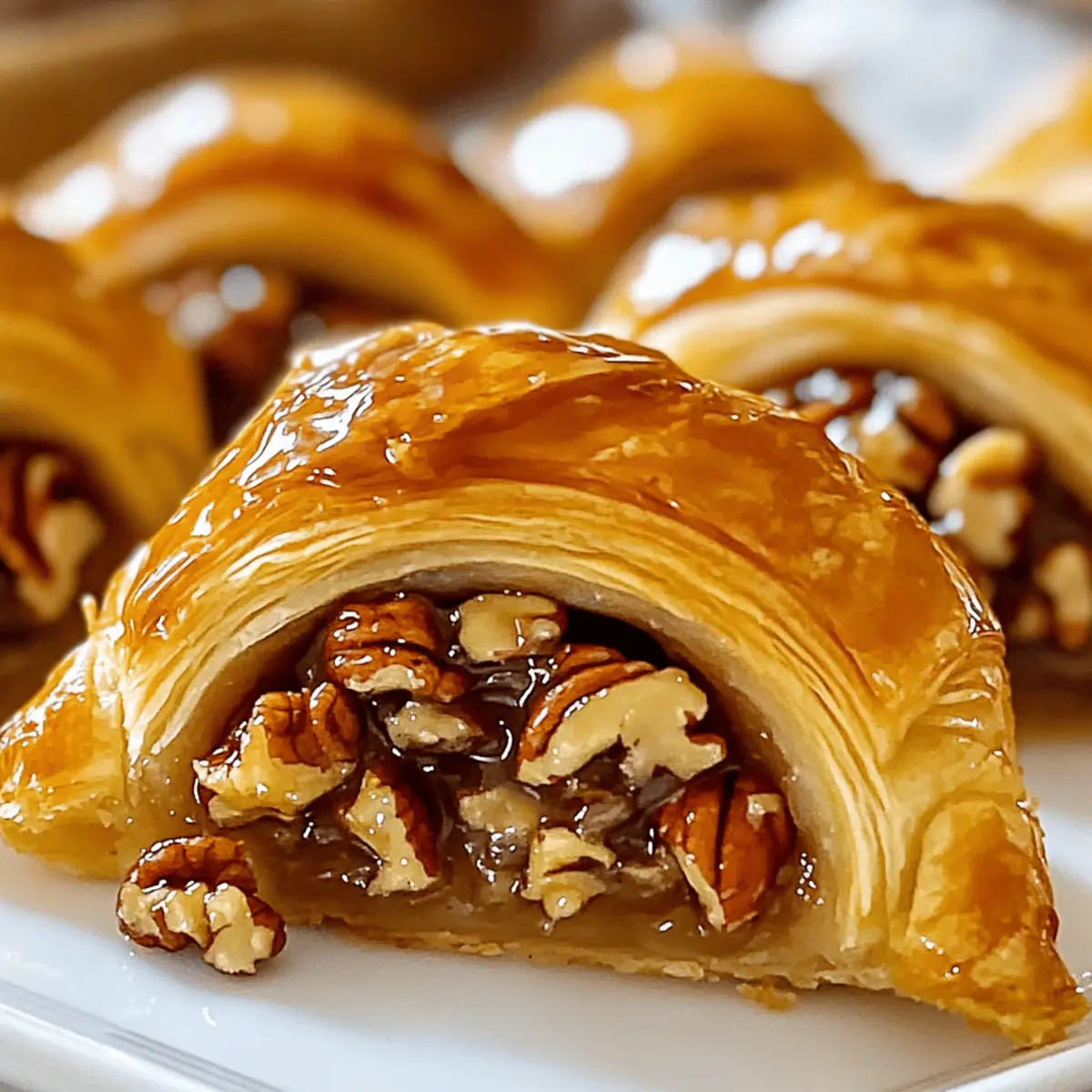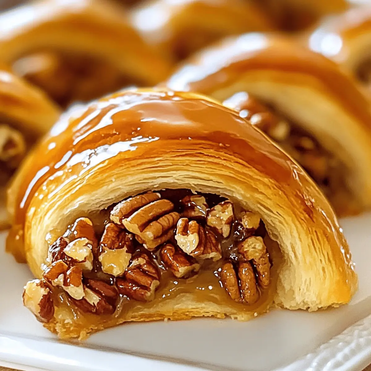 As I watched the holiday festivities unfold, the air was alive with laughter and the delightful scent of rich desserts wafting through the room. Among the traditional offerings, I found myself drawn to a new creation: Pecan Pie Crescent Rolls. This festive twist on a Southern classic seamlessly wraps the beloved flavors of pecan pie in a soft, flaky crescent embrace. What I love about this easy recipe is how it transforms a classic dessert into a portable treat that’s perfect for sharing at gatherings—or indulging on quiet evenings at home. Plus, these crescent rolls are vegetarian and a radiant addition to your holiday table. Are you ready to get your hands deliciously sticky with this mouthwatering recipe? Let’s dive in! Why Love Pecan Pie Crescent Rolls? Absolutely irresistible: The warm, gooey pecan filling wrapped in flaky crescent dough makes each bite a heavenly experience. Festive and fun: Perfect for holiday gatherings, these rolls infuse classic pecan pie flavors into a crowd-pleasing treat. Quick and easy: With just a few simple ingredients and minimal prep time, you can pull these together effortlessly. Versatile variations: Feel free to experiment by adding chocolate chips or substituting nuts for a personalized twist—endless delicious possibilities await! Perfect pairings: Serve them warm with vanilla ice cream or spiced tea, and watch your guests smile as they indulge. Elevate your dessert game this season with these delightful Cinnamon Roll Rolls for a sweet surprise! Pecan Pie Crescent Roll Ingredients This delightful recipe uses simple ingredients to create a festive treat! For the Dough Pillsbury Crescent Rolls – Easily available and creates a flaky texture. For the Pecan Filling Chopped Pecans – Adds flavor and crunch; can substitute with walnuts or almonds for a similar effect. Granulated Sugar – Essential for caramelizing the filling and balancing sweetness. Light Corn Syrup – Provides sweetness and moisture; avoid high fructose corn syrup for a cleaner taste. Unsalted Butter (melted) – Adds richness and moisture; can use salted butter if adjusting additional salt elsewhere. Pure Vanilla Extract – Imparts warmth without a direct substitution recommended. Large Egg – Binds ingredients and helps with browning; omit for an egg-free version or replace with a flax meal substitute. Let the delightful adventure begin as you gather these ingredients for your Pecan Pie Crescent Rolls! Happy baking! Step‑by‑Step Instructions for Pecan Pie Crescent Rolls Step 1: Preheat and Prepare Begin by preheating your oven to 350°F (175°C). While it warms, line a rimmed baking sheet with parchment paper to prevent sticking and promote even baking. This step ensures that your Pecan Pie Crescent Rolls emerge golden and beautifully crisp, ready to delight your family and friends. Step 2: Mix the Filling In a large mixing bowl, combine granulated sugar, light corn syrup, melted unsalted butter, pure vanilla extract, and 1 large egg, whisking until well integrated. Reserve 2 tablespoons of this rich mixture for brushing later. This sticky, sweet filling will coat your chopped pecans and transform these crescent rolls into a mouthwatering treat. Step 3: Incorporate Pecans Next, stir in the chopped pecans, ensuring they are fully coated in the sweet mixture. This will create a luscious filling that’s reminiscent of a classic pecan pie. Allow your delightful pecan mixture to rest for a few moments while you get your crescent dough ready. Step 4: Prepare the Crescent Dough Unroll the Pillsbury Crescent Rolls and lay the individual triangles flat on the prepared baking sheet. Position them so the widest end is facing you, ready to be filled. This arrangement will make it easy for you to wrap the gooey pecan filling snugly in each piece of dough. Step 5: Fill and Roll Spoon a generous amount of the pecan filling onto the widest end of each crescent triangle. Carefully roll the dough towards the tip, enclosing the filling as you go. Arrange the rolled crescent rolls on the baking sheet, leaving space between each to allow for expansion during baking and to make serving a breeze. Step 6: Bake the Rolls Place the assembled rolls in the preheated oven and bake for 8 minutes, monitoring closely until they are set and puffed up. After this initial time, brush the rolls with the reserved sugar mixture for added sweetness and shine, then return them to the oven for an additional 5 minutes. Look for a beautiful golden brown color as the perfect sign they’re done. Step 7: Cool and Serve Once the Pecan Pie Crescent Rolls are out of the oven, let them cool for a few minutes on the baking sheet. This cooling period allows the filling to set slightly, making the rolls easier to handle. Optionally, sprinkle some additional chopped pecans on top for a delightful crunch before serving. Enjoy these festive treats warm, and watch your loved ones indulge! Storage Tips for Pecan Pie Crescent Rolls Room Temperature: Store leftover Pecan Pie Crescent Rolls in an airtight container at room temperature for up to 2 days for the best texture. Fridge: If you prefer to extend their freshness, keep them in the fridge for up to 3 days; however, this may affect their flaky texture. Freezer: For longer storage, freeze the rolls in an airtight container for up to 3 months. Thaw in the fridge overnight before reheating. Reheating: To restore freshness, reheat frozen Pecan Pie Crescent Rolls in a preheated oven at 350°F (175°C) for about 10 minutes. Enjoy them warm! Make Ahead Options These Pecan Pie Crescent Rolls are perfect for busy home cooks looking to save time during the holiday rush! You can prepare the pecan filling up to 24 hours in advance—simply mix all the filling ingredients and keep it covered in the refrigerator. Additionally, you can assemble the crescent rolls, place them on the baking sheet, and refrigerate them for up to 3 days before baking. Just ensure to let them sit at room t