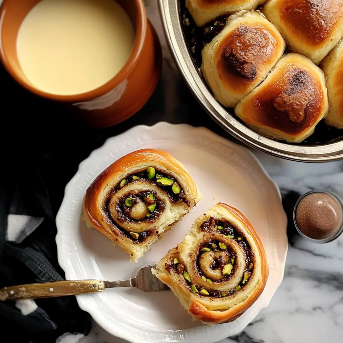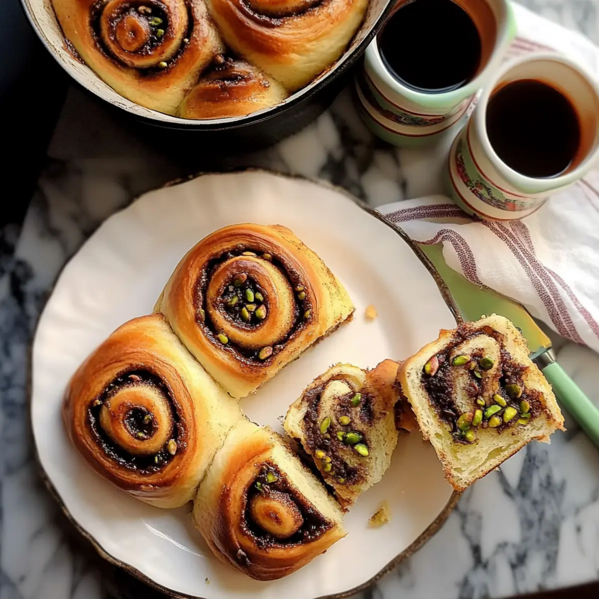 As I sift through my pantry one lazy Sunday morning, the vibrant hues of orange and the whisper of spices spark a wave of inspiration. These Bonkers Awesome Pistachio, Orange, and Dark Chocolate Cinnamon Rolls are my answer to the call for a comforting yet indulgent breakfast treat. With the delightful crunch of golden pistachios paired with zesty orange notes and rich dark chocolate, they elevate a classic cinnamon roll into a show-stopping centerpiece. What’s more, they’re surprisingly easy to whip up, making them perfect for a festive brunch or a cozy weekend gathering. By preparing them in advance, you can focus on savoring the moment rather than scrambling in the kitchen. Curious about how to create this delectable twist on a breakfast favorite? Let’s dive in! Why are these cinnamon rolls a must-try? Irresistible Flavors: The eye-catching blend of fresh orange zest, crunchy pistachios, and rich dark chocolate creates an explosion of taste. Easier Than You Think: This recipe is simple to follow, making it perfect even for novice bakers who want to impress. Versatile Variations: While the stars are pistachios and dark chocolate, feel free to experiment with walnuts or dried fruit added for a unique twist. Perfect for Any Occasion: Whether it’s a cozy brunch or a festive celebration, these rolls steal the show and delight your guests. Make-Ahead Convenience: Assemble the rolls a day in advance and simply bake when ready; you can have warm cinnamon rolls without the rush! Pair these mouthwatering treats with a steaming cup of coffee or perhaps indulge in some Cinnamon Roll Rolls for more sweet inspiration! Pistachio, Orange, and Dark Chocolate Cinnamon Rolls Ingredients For the Dough • Whole Milk – Provides moisture and richness to the dough; use almond milk as a non-dairy alternative. • Vegetable or Canola Oil – Adds fat for a tender roll; olive oil can be used for a different flavor. • Granulated Sugar – Sweetens the dough and filling; brown sugar can substitute for a deeper flavor. • Active Dry Yeast – Essential for dough rising; ensure it is fresh for best results. • All-Purpose Flour – Forms the structure of the rolls; for gluten-free, a 1:1 gluten-free flour blend works. • Baking Powder & Baking Soda – Provide extra lift; they help ensure the dough rises nicely. • Salt – Enhances flavor; use kosher or sea salt for the best results. For the Filling • Unsalted Butter – Creates a rich filling; coconut oil can be used for a vegan version. • Ground Cinnamon – A classic warm spice for the filling; adjust to taste. • Orange Zest – Adds a fresh citrus aroma and flavor to the rolls; fresh lemon zest can be substituted. • Salted Pistachios – Provide a savory crunch and nutty flavor; any nut can be used if you prefer. • Dark Chocolate – Enhances decadence; finely chop for even distribution. For the Glaze • Powdered Sugar – For glaze sweetness; using cornstarch-free powdered sugar enhances texture. • Milk or Water – Combines with powdered sugar for a smooth glaze; adjust the amount to reach desired consistency. Indulge in the delightful tastes of these Pistachio, Orange, and Dark Chocolate Cinnamon Rolls—a delicious treat worth sharing at your next gathering! Step‑by‑Step Instructions for Pistachio, Orange, and Dark Chocolate Cinnamon Rolls Step 1: Prepare the Dough Begin by gently heating 1 cup of whole milk, 1/4 cup vegetable oil, and 1/4 cup granulated sugar in a saucepan until warm, but not boiling (around 105°F). Remove from heat and let it cool slightly before sprinkling in 2 1/4 teaspoons of active dry yeast. Allow the mixture to sit for about 1 minute until bubbles form; this indicates the yeast is active. Step 2: Mix Dry Ingredients In a large mixing bowl, combine 4 cups of all-purpose flour and 1 teaspoon of salt. Gradually add the warm yeast mixture into the flour, stirring until just combined. Once mixed, cover the bowl with a damp cloth and set it in a warm place to rise for approximately 1 hour, or until the dough has doubled in size. Step 3: Incorporate Leavening Agents Once the dough has risen, gently fold in 1 teaspoon of baking powder and 1/2 teaspoon of baking soda. These ingredients will help ensure your Pistachio, Orange, and Dark Chocolate Cinnamon Rolls are light and fluffy. Knead the dough lightly for 1-2 minutes on a floured surface until all ingredients are thoroughly combined. Step 4: Shape the Rolls Roll the dough out on a well-floured surface into a large rectangle, approximately 16×24 inches. Brush the surface with 1/4 cup of melted unsalted butter. Next, sprinkle evenly with a mixture of 1/2 cup granulated sugar, 2 tablespoons of ground cinnamon, the zest of one orange, 1/2 cup chopped salted pistachios, and 1/2 cup finely chopped dark chocolate. Roll the dough up tightly starting from one of the long edges. Step 5: Cut & Arrange Using a sharp knife or a dental floss, slice the rolled dough into 12 even pieces. Place the slices in a greased baking dish, spacing them apart to allow for expansion. Cover the pan with a cloth and let them rest in a warm area for about 15 minutes, allowing them to puff up slightly. Step 6: Bake Preheat your oven to 375°F (190°C). Once heated, place the baking dish in the oven and bake the cinnamon rolls for 20-22 minutes, or until they are golden brown and the edges are bubbly. Keep an eye on them to ensure they don’t overbake; a light golden-brown color is what you’re aiming for. Step 7: Glaze & Serve While the cinnamon rolls are baking, prepare the glaze by whisking together 1 cup of powdered sugar with 2-3 tablespoons of milk or water, adjusting until you reach a smooth consistency. Once the rolls are out of the oven, let them cool for about 5 minutes before drizzling the glaze generously over the warm rolls. Serve your Pistachio, Orange, and Dark Chocolate Cinnamon Rolls immediately for the best experience! What to Serve with Bonkers Awesome Pistachio, 