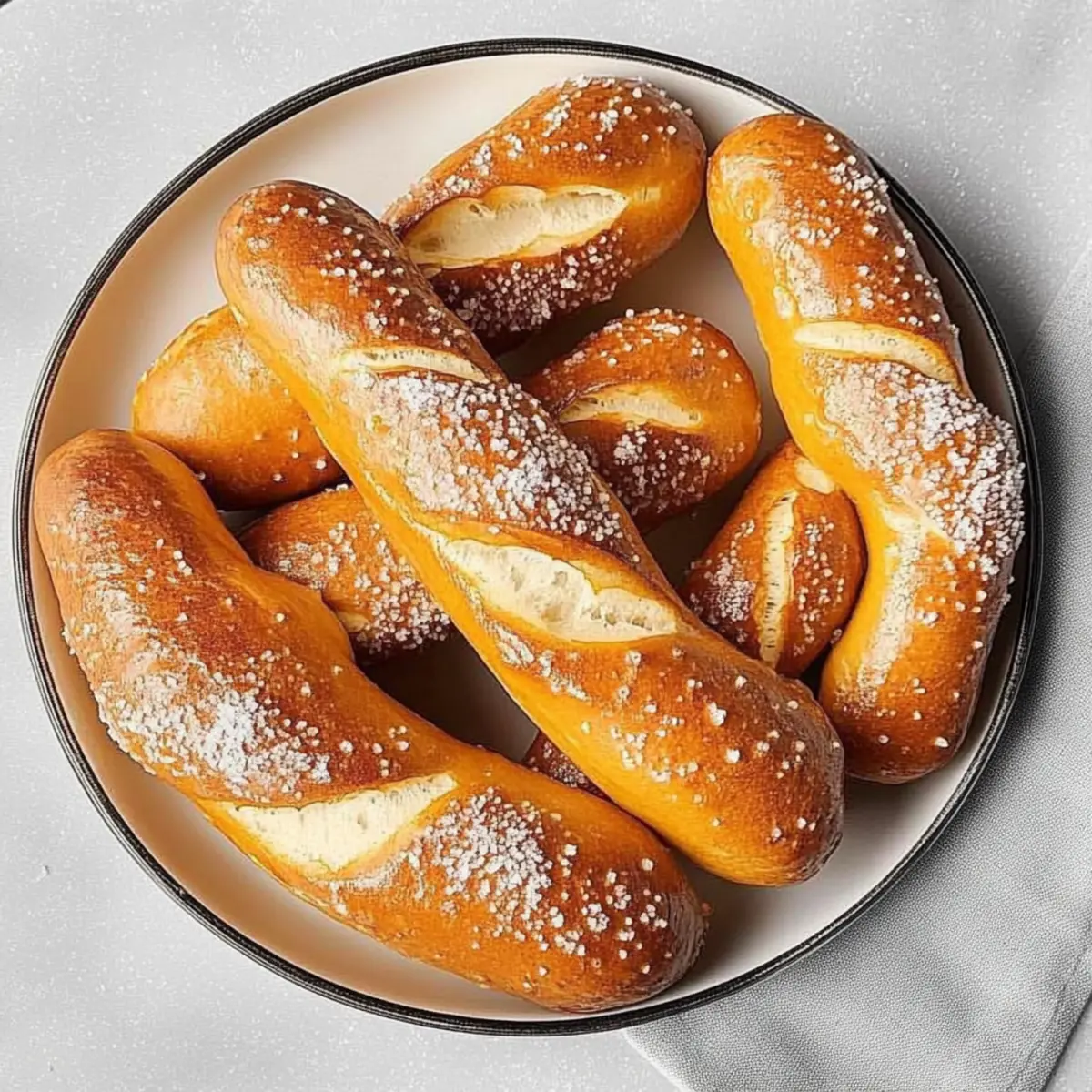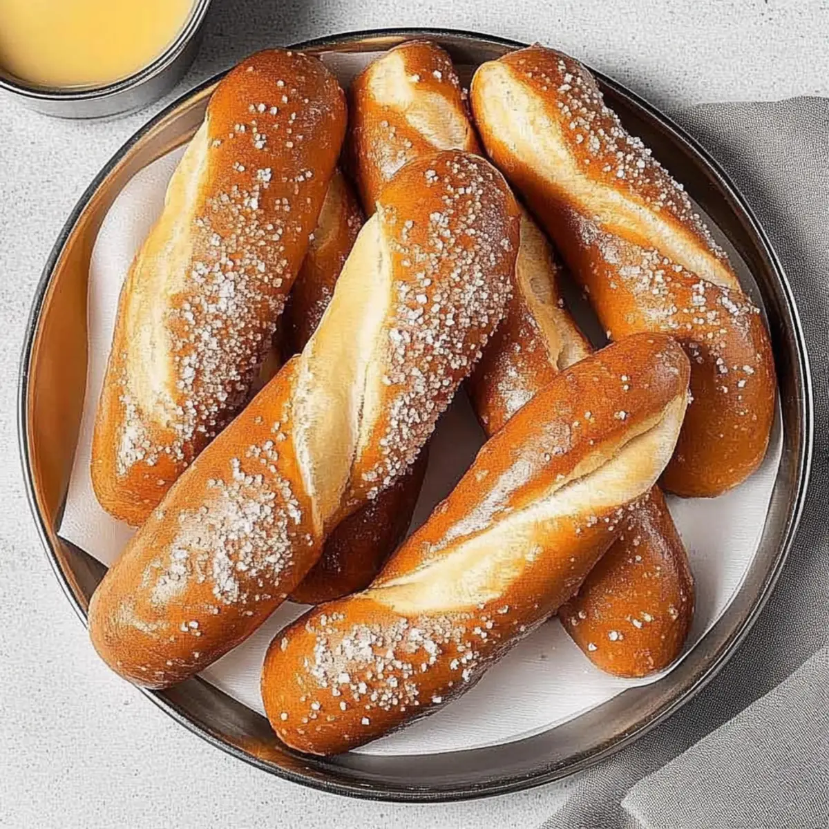 The aroma of freshly baked bread wafts through the air, creating an irresistible pull toward the kitchen. There’s something undeniably comforting about warming up the oven and whipping up a batch of these homemade soft pretzel sticks. With their wonderfully chewy texture and a golden-brown crust that’s simply inviting, these treats make for the perfect snack at any time of day. Whether you’re sharing them at a game day gathering or enjoying a cozy afternoon at home, they’re a delightful crowd-pleaser that require just a handful of pantry staples. Easy to prepare and fully customizable, you can enjoy them simply sprinkled with coarse salt or dip them into melted cheese for that extra touch of indulgence. Are you ready to roll up your sleeves and discover just how fun and satisfying making pretzel sticks can be? Why Are Homemade Pretzel Sticks Irresistible? Irresistible Aroma: The heavenly smell of freshly baked pretzel sticks fills your home with a warmth that’s simply comforting. Chewy Texture: Each bite offers a delightful chewiness that sets these pretzels apart from store-bought versions. Versatile Options: Shape them into logs, nuggets, or even braid them for a fun twist! Customize your toppings with everything from garlic to cheese. Easy to Make: Using simple ingredients from your pantry and an easy-to-follow method, you can whip these up in no time. Perfect for Sharing: Ideal for game days or family gatherings, they’re sure to be a hit with everyone—especially when paired with a warm cheese dip! Consider trying them alongside our Baked Parmesan Zucchini for a complete snack spread. Pretzel Sticks Ingredients For the Dough • Active Dry Yeast – Activates fermentation for that classic soft texture. Ensure it’s fresh for the best rise. • Warm Water (110° to 115°F) – Proper temperature is key for yeast activation; use a thermometer for accuracy. • Sugar – Sweetens the dough and feeds the yeast; can substitute with brown sugar for added flavor. • Butter (melted) – Adds richness and tenderness; swap with olive oil for a dairy-free alternative. • Salt – Balances flavors perfectly; you can opt for kosher salt or sea salt. • All-Purpose Flour (4 to 4.5 cups) – Essential for structure; whole wheat flour is a great healthier substitute. For the Baking Soda Bath • Baking Soda – Creates the signature pretzel taste and dark brown color; don’t skip this crucial step! For the Egg Wash • Egg Yolk & Cold Water – Gives a beautiful golden sheen; melted butter works as an egg-free alternative. With these simple ingredients, you’re just a few steps away from enjoying those delectable pretzel sticks, sure to impress family and friends! Step‑by‑Step Instructions for Homemade Soft Pretzel Sticks Step 1: Activate the Yeast In a large bowl, combine 1 packet of active dry yeast with 1 ½ cups of warm water (110° to 115°F). Stir in a tablespoon of sugar and let it sit for about 5 minutes until it becomes frothy. This step ensures your yeast is alive and ready to help your dough rise, forming the perfect base for your pretzel sticks. Step 2: Mix the Dough Once the yeast is frothy, add in 4 tablespoons of melted butter and 1 teaspoon of salt. Gradually mix in 2 cups of all-purpose flour, beating the mixture until smooth. As you blend, the dough will start to come together, forming a soft, slightly sticky consistency that’s essential for the chewy texture of your pretzel sticks. Step 3: Knead the Dough Turn the dough out onto a well-floured surface and knead it for 6 to 8 minutes. You’ll know it’s ready when it’s smooth and elastic, with a slight tackiness. Once kneaded, shape it into a ball and place it in a greased bowl. Cover it with a kitchen towel and let it rise in a warm spot for about 1 hour, or until it has doubled in size. Step 4: Prepare the Baking Soda Bath While the dough rises, fill a large saucepan with 8 cups of water and add ½ cup of baking soda. Bring this mixture to a rolling boil over medium-high heat. The baking soda bath is crucial for giving your homemade soft pretzel sticks their distinctive flavor and deep brown color. Step 5: Shape the Dough After the dough has risen, punch it down gently to release air. Divide it into 32 equal portions. Roll each portion into a 5-inch log, using your palms. This shaping step gives your pretzel sticks their classic form, making them ready for boiling and baking. Step 6: Boil the Pretzel Sticks Carefully place each log into the boiling baking soda bath for 30 seconds, turning them halfway through for even cooking. Remove with a slotted spoon and let them drain on paper towels. This boiling process is what sets homemade soft pretzel sticks apart, contributing to their delightful chewiness. Step 7: Prepare for Baking Preheat your oven to 425°F and line two baking sheets with parchment paper. Arrange the boiled pretzel sticks on the sheets, making sure to leave space between them. Brush each stick with a mixture of beaten egg yolk and cold water for a beautiful golden finish, then sprinkle with coarse salt for that iconic pretzel flavor. Step 8: Bake to Perfection Place the baking sheets in the preheated oven and bake for 9 to 11 minutes, or until the pretzel sticks are a rich golden brown. Keep an eye on them as they bake, as this is when they transform into the soft, chewy snacks you’ve been dreaming of. Step 9: Cool and Serve Once baked, remove the soft pretzel sticks from the oven and let them cool on a wire rack for a few minutes. This slight cooling time helps them firm up a bit while keeping that warm, soft interior intact. Serve them while warm, perhaps with a side of cheese dip or mustard to elevate your snacking experience. What to Serve with Homemade Soft Pretzel Sticks? Delight in pairing your soft pretzel sticks with complementary flavors that elevate your snack experience to new heights. Cheese Dip: A warm, gooey cheese dip perfectly enhances the chewy texture of pretzel sti