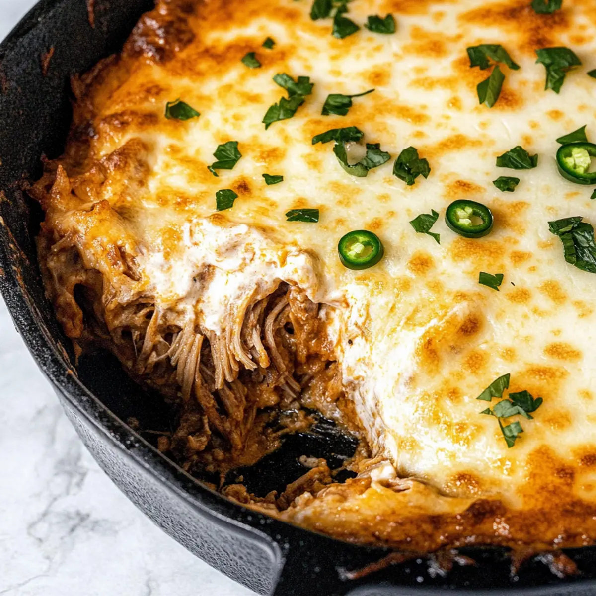 As I reached for that last bit of pulled pork, a thought struck me: what if I transformed this delicious leftover into something extraordinary? Enter my Cheesy Pulled Pork Dip, a gourmet twist on a classic comfort food that brings everyone together. This dip not only offers indulgent cheesiness but also celebrates the smoky richness of pulled pork and a fun kick from jalapeños. The beauty of this recipe lies in its effortless prep—it’s an ideal make-ahead appetizer for any gathering, especially game day! With every gooey bite, you’re diving into a whirlwind of flavors that feels both cozy and festive. So, what’s your favorite way to enjoy dips at parties? Let’s dive into the details! What makes this dip a must-try? Crowd-Pleasing Flavor: The blend of pulled pork and creamy cheeses creates a delicious fusion that no one can resist—it’s guaranteed to be a hit at your next gathering. Effortless Prep: Just mix, bake, and serve—this recipe is incredibly simple, making it perfect for busy chefs or anyone who wants a quick, great-tasting option. Make-Ahead Magic: Prepare it in advance and pop it in the oven when your guests arrive, allowing you to enjoy your time without feeling rushed. Versatile Variations: Feel free to swap out cheeses or adjust the heat with jalapeños to cater to different palates; this dip can be easily tailored to your taste! If you’re looking for more options, check out these creative ideas for game day snacks. Pulled Pork Dip Ingredients Get ready to craft the ultimate crowd-pleaser! For the Dip • Pulled Pork – This provides the main protein and smoky flavor; feel free to substitute with any leftover cooked meat. • Cream Cheese – Adds creaminess and structure to the dip; for a lighter version, use low-fat cream cheese. • Shredded Cheddar Cheese – Enhances the cheesy flavor; consider swapping with smoked cheddar for an extra depth of flavor. • Sour Cream – Brings tanginess and moisture; if you prefer, Greek yogurt can be used as a healthier alternative. • BBQ Sauce – Infuses sweetness and flavor; choose your favorite BBQ sauce to easily tailor the taste of your pulled pork dip. • Garlic – Provides aromatic depth; garlic powder is a good substitute if you don’t have fresh garlic on hand. • Shredded Mozzarella – Offers additional creaminess and stretch; can be replaced with provolone or Monterey Jack for variety. • Jalapeño – Adds heat and complexity; feel free to omit it or replace with milder peppers if preferred. For Serving • Tortilla Chips – Perfect for scooping up the delicious dip! • Crackers – A crunchy complement that balances the creamy dip. • Sliced Veggies – Fresh, crunchy veggies make for a lighter dipping option. With these ingredients, you’re just a few easy steps away from enjoying a delightful Pulled Pork Dip that’s sure to impress everyone at your next gathering! Step‑by‑Step Instructions for Pulled Pork Dip Step 1: Preheat the Oven Begin by preheating your oven to 350°F (175°C). This essential first step ensures that your Pulled Pork Dip bakes evenly and reaches the perfect temperature. While the oven heats, you can gather and prepare your ingredients. Step 2: Combine the Ingredients In a stand mixer or large bowl, combine the pulled pork, softened cream cheese, sour cream, BBQ sauce, minced garlic, and shredded cheddar cheese. Mix the ingredients at medium speed until thoroughly blended, ensuring a creamy texture without chunks of pork. This should take about 2-3 minutes. Step 3: Transfer to Baking Dish Spoon the creamy mixture into a 10″ cast iron skillet or a 9″x9″ baking dish, spreading it out evenly. Use a spatula to smooth the top, ensuring every bit of the Pulled Pork Dip is accessible for your guests. Step 4: Add Toppings Sprinkle the shredded mozzarella evenly over the mixture, followed by the minced jalapeño, if using. This not only adds flavor but also creates a melty, bubbly top that will be irresistible once baked. Step 5: Bake the Dip Carefully place the dish in the preheated oven and bake for 25-30 minutes. You’ll know it’s done when the edges are golden brown and the center is hot and bubbly. This is the moment the flavors meld beautifully. Step 6: Broil for Extra Crispiness If you’d like a tantalizingly crispy top, switch on your broiler, setting it to 450°F (232°C). Broil the dip for an additional 2-3 minutes, watching closely to prevent burning. The goal is a golden, bubbling surface that emphasizes the cheesiness. Step 7: Serve and Enjoy Once removed from the oven, let your Pulled Pork Dip cool for a couple of minutes. Serve it warm with tortilla chips, crunchy crackers, or fresh veggie sticks for dipping. This comforting dish is perfect for sharing at your next gathering! Make Ahead Options These Cheesy Pulled Pork Dips are perfect for meal prep enthusiasts! You can prepare the entire dip up to 3 days in advance by mixing all the ingredients and transferring them into your baking dish. Simply cover it tightly with plastic wrap or foil and refrigerate to maintain freshness and prevent drying out. When you’re ready to serve, just pop it in the oven, adding about 10 minutes to the baking time. This allows the flavors to meld beautifully without sacrificing quality, ensuring your dip will be just as delicious as when you first made it. Enjoy the convenience of a ready-to-bake appetizer that saves you time on game day! How to Store and Freeze Pulled Pork Dip Fridge: Store your Pulled Pork Dip in an airtight container for up to 3-4 days after preparation. Simply reheat individual portions in the microwave or oven for a quick snack. Freezer: For longer storage, freeze the dip in a freezer-safe container for up to 2-3 months. Thaw it overnight in the fridge before baking, and increase the baking time by 10-15 minutes. Reheating: For the best texture, reheat your Pulled Pork Dip in the oven at 350°F (175°C) until bubbly. This ensures the cheese gets