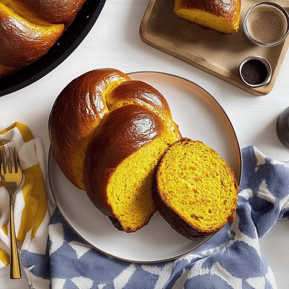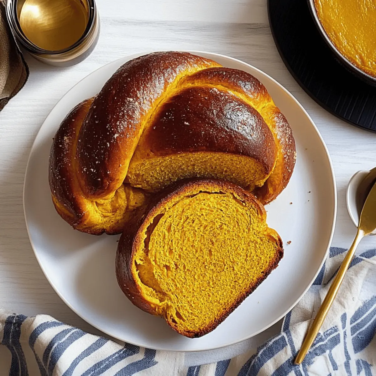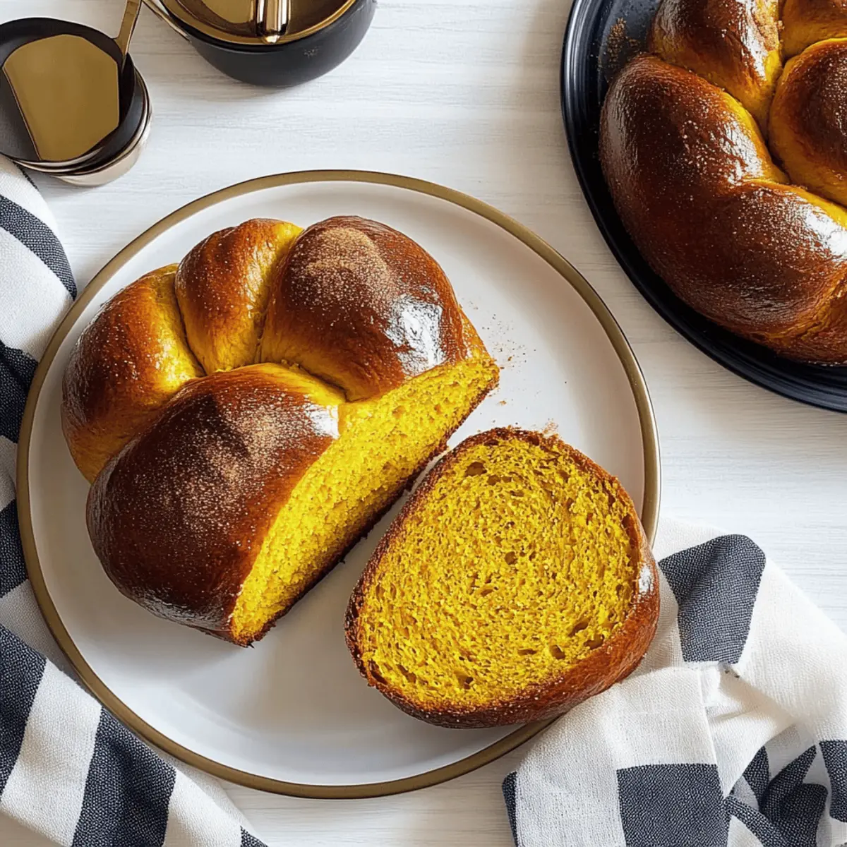 As I stood in my kitchen, the unmistakable warmth of cinnamon wafted through the air, instantly taking me to crisp autumn days filled with golden leaves and cozy sweaters. This season is the perfect time to enjoy a slice of homemade Pumpkin Challah. This enriched bread is not only visually stunning with its bright golden hue from pumpkin purée, but it also offers a slightly sweet flavor that brings an inviting comfort to any table. Whether you’re celebrating a special occasion or simply seeking a delicious homemade bread, this recipe is quick to whip up and transforms into tasty French toast or bread pudding the next day—bonus! Who can resist the idea of a warm slice paired with butter or cream cheese? Are you ready to embrace the flavors of fall? Let’s dive into this delightful baking adventure! Why is Pumpkin Challah a Must-Bake? Simplicity at its Finest: This recipe is easy, even for beginners, with just a few steps to create a gorgeous loaf. Warm, Cozy Flavors: The blend of pumpkin and cinnamon brings the essence of fall right to your table. Versatile Delight: Not only perfect for special occasions, but it’s also a fantastic base for French toast or decadent bread pudding. Pair it with a Pumpkin Spice Smoothie for a cozy brunch! Impressive Presentation: That golden crust and fluffy texture make it a stunning centerpiece that impresses guests. Nutritional Boost: Pumpkin adds vitamins and a dash of healthiness to your sweet treat, making it a feel-good option! This Pumpkin Challah is sure to become a favorite in your fall baking repertoire! Pumpkin Challah Ingredients For the Bread King Arthur Unbleached All-Purpose Flour – Provides structure and body to the bread; substitute with bread flour for a chewier texture. Granulated Sugar – Adds sweetness and aids in browning; you can opt for coconut sugar for a less refined option. Instant Yeast – Leavens the dough quickly without the need for proofing; active dry yeast can work as a substitute with slight adjustments in hydration time. Table Salt – Enhances flavor and regulates yeast activity; feel free to use kosher salt as an alternative. Cinnamon – Adds warmth and depth of flavor; consider nutmeg or pumpkin pie spice for a different twist. Lukewarm Water – Hydrates the dough and activates the yeast; milk can be used for a richer flavor. Pumpkin Purée – Provides moisture, flavor, and color; fresh, roasted pumpkin works beautifully for a robust flavor. Vegetable Oil – Contributes moisture and tenderness; substitute with coconut oil or melted butter if you prefer. Large Egg – Aids in enrichment and adds color to the bread; for a vegan option, use a flax egg (1 tbsp ground flaxseed + 2.5 tbsp water). For the Egg Wash Egg Wash (1 large egg beaten with 1 tablespoon water) – Creates a shiny, golden crust; you can replace it with milk or dairy-free milk for a vegan wash option. This Pumpkin Challah is the perfect centerpiece for your fall gatherings, embodying the warm, inviting flavors of the season! Step‑by‑Step Instructions for Pumpkin Challah Step 1: Combine Dry Ingredients In a large mixing bowl, sift together 4 cups of all-purpose flour, 1/4 cup of granulated sugar, 2 teaspoons of instant yeast, 1 teaspoon of table salt, and 1 teaspoon of cinnamon. Mix thoroughly to ensure that the yeast and spices are evenly distributed throughout the flour. This foundational step is crucial for the perfect rise and flavor of your Pumpkin Challah. Step 2: Whisk Wet Ingredients In a separate bowl, whisk together 1 cup of lukewarm water, 1/2 cup of pumpkin purée, 1/4 cup of vegetable oil, and 1 large egg until smooth. The mixture should feel slightly warm, making the yeast happy to activate. This will create a rich, flavorful dough that comes together beautifully, ready to elevate your Pumpkin Challah. Step 3: Combine Mixtures Pour the wet ingredients into the bowl with the dry mixtures, stirring with a wooden spoon or spatula until a shaggy dough forms. At this point, the dough will be somewhat sticky, but don’t worry; that’s what makes it fluffy! Take your time to ensure no dry bits remain, which will contribute to the final texture of your Pumpkin Challah. Step 4: Knead the Dough Turn the shaggy dough onto a lightly floured surface and knead for about 6-10 minutes. The dough should become smooth and slightly tacky to the touch. If it feels too sticky, gradually add the remaining flour until the desired consistency is reached. This kneading process is vital for developing gluten, giving your Pumpkin Challah its wonderful structure. Step 5: First Rise Place the kneaded dough into a greased bowl, cover it with a clean kitchen towel, and let it rise in a warm area for about 2 hours. The dough should double in size, indicating that the yeast is actively working and infusing the Pumpkin Challah with air and flavor. Be patient—this is where the magic happens! Step 6: Shape the Dough Once the dough has risen, gently punch it down to release the air. Divide it into two equal pieces and shape each piece into a rectangle. This shaping step helps to create a uniform texture in your Pumpkin Challah, ensuring each slice has that delightful, soft crumb we all love. Step 7: Prepare for Final Rise Roll each rectangle into a long rope, then coil each rope loosely on a lined baking sheet. Cover the shaped dough with a towel and let it rise for another hour. This final rise will make your Pumpkin Challah airy and light, ready to puff up beautifully in the oven. Step 8: Preheat the Oven While the dough is rising, preheat your oven to 350°F (175°C). Make sure the oven is fully heated before placing the Pumpkin Challah inside, as this will help achieve that perfect golden-brown crust. The aroma of cinnamon and pumpkin will soon fill your kitchen! Step 9: Add Egg Wash and Bake After the final rise, gently brush the top of each coiled loaf with an egg wash (1 egg beaten with 1 tablespoon water). This step will give your Pumpkin Challah 