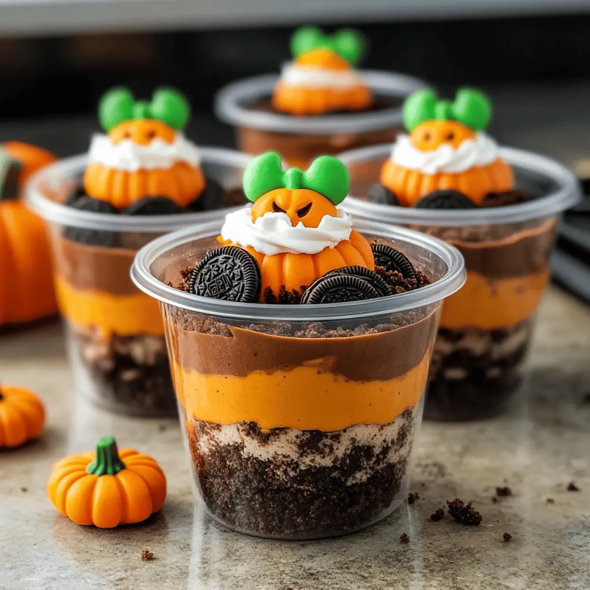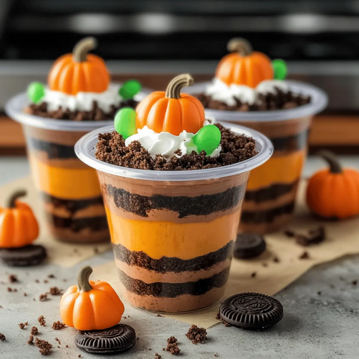 As I rummaged through my pantry, I stumbled upon a stash of leftover Halloween candy, which sparked a delightful idea: Pumpkin Patch Dirt Cups! These charming no-bake desserts are the perfect way to bring some whimsy into your kitchen this fall. Combining creamy chocolate pudding with crunchy crushed Oreos and topped with adorable candy pumpkins, they’re not just visually appealing but also incredibly simple to whip up. Perfect for gatherings, they are a guaranteed crowd-pleaser that can easily be adapted for gluten-free or dairy-free diets. Who wouldn’t love a fun, festive treat that brings the spirit of Halloween right into your home? Ready to dig into this sweet adventure? Let’s dive into how to create these delicious Pumpkin Patch Dirt Cups! Why are Pumpkin Patch Dirt Cups a must-try? Whimsical presentation: These delightful cups bring a playful touch to any Halloween gathering, making them a visual treat. Easy to make: With minimal effort and no baking required, even novice chefs can whip these up in no time! Customizable options: Whether gluten-free or dairy-free, this recipe easily adapts to fit your dietary needs—perfect for everyone at your table. Crowd-favorite flavors: Rich chocolate pudding paired with crunchy Oreos creates a flavor explosion that will satisfy any sweet tooth! Perfect for sharing: These adorable treats are not only fun to make but also perfect for serving at parties. Pair them with Spiced Pumpkin Pancakes for a festive feast! Embrace the fall spirit with these delectable Pumpkin Patch Dirt Cups, a treat that’s sure to impress. Pumpkin Patch Dirt Cups Ingredients For the Pudding • Chocolate Pudding Mix – This forms the base of the dessert, providing rich flavor and creamy texture. Substitute with dairy-free pudding for a vegan version. • Milk – Combines with pudding mix to achieve the right consistency. You can use almond or oat milk for a dairy-free option. • Whipped Cream – Adds lightness and creaminess to the pudding. Opt for dairy-free whipped cream for a vegan alternative. For the Texture • Oreo Cookies – Crushed to create the “dirt” layer, bringing both texture and flavor. Gluten-free cookies can work just as well if needed. For Decoration • Candy Pumpkins – These adorable treats not only enhance the presentation but also add a fun, festive touch. You can include gummy worms for an extra spooky element! Step‑by‑Step Instructions for Pumpkin Patch Dirt Cups Step 1: Prepare Pudding In a mixing bowl, whisk together the chocolate pudding mix and 2 cups of milk until fully combined. Continue whisking for about 2 minutes until the mixture thickens and becomes smooth. Let it sit for an additional 5 minutes to ensure it reaches the desired consistency, resembling creamy pudding. Step 2: Add Whipped Cream Once the pudding has thickened, gently fold in 1 cup of whipped cream using a spatula. Carefully mix until the pudding and whipped cream are fully integrated, creating a light and airy texture. This step gives the Pumpkin Patch Dirt Cups their delightful creaminess, ensuring an indulgent treat. Step 3: Layer Cups Prepare clear plastic cups or dessert glasses for assembly. Spoon a generous layer of the chocolate pudding mixture into each cup, followed by a layer of crushed Oreos. Repeat the layering process, finishing with a top layer of crushed Oreos to create a “dirt” appearance, enticing everyone to dig into these adorable cups. Step 4: Decorate To elevate your Pumpkin Patch Dirt Cups, add a dollop of whipped cream on top of the final Oreo layer. Then, artfully place candy pumpkins on each cup for a festive touch. You can also include gummy worms for an extra surprise, enhancing the whimsical Halloween theme of your delightful dessert. Step 5: Chill Refrigerate the assembled Pumpkin Patch Dirt Cups for at least 30 minutes before serving. This chilling time allows the flavors to meld beautifully, creating a refreshing treat. When ready to serve, ensure the cups remain chilled, so each bite is as delightful as the last. Pumpkin Patch Dirt Cups Variations Invite your creativity to flourish as you customize these scrumptious treats for everyone to enjoy this Halloween! Dairy-Free: Swap regular pudding mix for dairy-free pudding to create a vegan-friendly version. The delightful flavors and textures will remain intact! Gluten-Free: Use gluten-free cookies instead of Oreos. Don’t let dietary restrictions hold you back; everyone can join in on the fun with their own safe version. Pumpkin Twist: Try pumpkin-flavored pudding mix for an extra seasonal layer. The added depth of flavor will transport your taste buds directly to a cozy autumn day. Choco Chunk: Incorporate chocolate chips or mini chocolate candies into the layers for a decadent surprise. This adds both texture and a rich chocolatey taste that’s hard to resist. Nutty Addition: Sprinkle in some crushed nuts or granola for an added crunch. This caramelizes the creamy mouthfeel, creating a delightful contrast that enhances your Pumpkin Patch Dirt Cups. Gummy Surprise: Replace candy pumpkins with gummy worms or mix in both for a spooky, playful twist. Kids and adults alike will get a kick out of this fun surprise! Mason Jar Magic: Serve in mason jars for a charming rustic presentation. Not only does it look adorable, but they’re also easy to transport for gatherings or parties. Whipped Cream Variations: Use flavored whipped cream, such as cinnamon or vanilla, instead of plain. This small detail can elevate the overall experience, creating a charming twist on every bite. Bring these variations together with festive drinks like Spiced Pumpkin Pancakes or sip on a warm cup of apple cider for the ultimate cozy celebration! The possibilities are endless when it comes to your Pumpkin Patch Dirt Cups! Expert Tips for Pumpkin Patch Dirt Cups Thicken It Right: Ensure pudding has sufficient time to thicken; rushing this step can lead to a watery dessert that lacks structure.