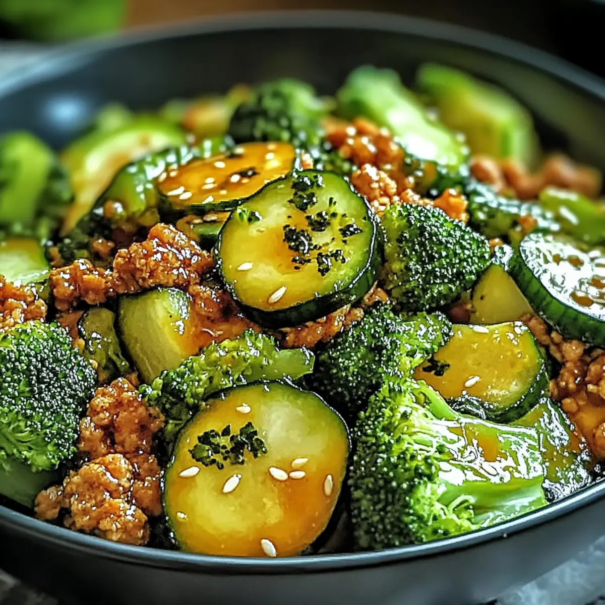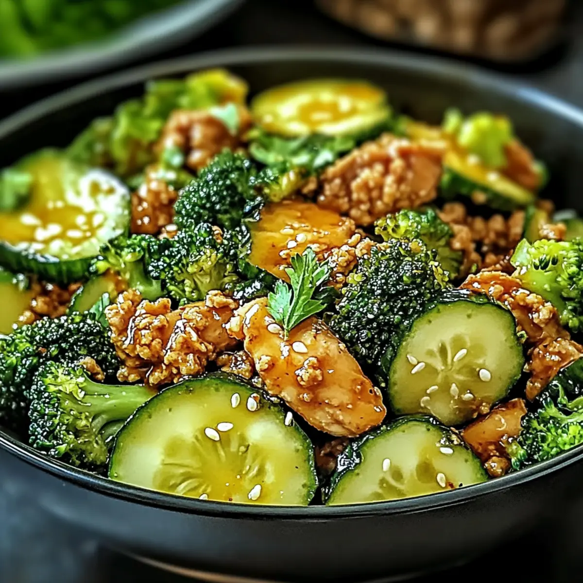As the enticing aroma of honey and sriracha fills the kitchen, I can’t help but feel a rush of excitement—it’s time for one of my all-time favorite weeknight meals: Quick Honey Sriracha Ground Chicken and Broccoli! This dish strikes a perfect balance between sweet and spicy, and it’s ready in just 20 minutes, making it the ultimate solution for those busy evenings when you want something homemade without the hassle. Not only is it gluten-free, but it’s also loaded with protein and fiber, ensuring you and your loved ones are nourished and satisfied. And let’s not forget—what better way to elevate your dinner game than with the vibrant crunch of fresh broccoli? Are you ready to bring some zing to your table? Let’s dive into the recipe! Why is this recipe a game-changer? Quick and Easy: In just 20 minutes, you can whip up a satisfying meal that’s perfect for those hectic weeknights. Balanced Flavors: The sweet and spicy combo of honey and sriracha creates a mouth-watering sensation that everyone will love. Nutritionally Packed: Not only is it gluten-free, but also packed with protein and fiber from chicken and broccoli, making it a healthful choice. Versatile Options: Easily customize with different proteins or veggies. Thinking of something lighter? Try adding my refreshing Honey Lime Cucumber Salad on the side for an extra burst of flavor! Crowd-Pleaser: This dish appeals to family and friends alike, ensuring happy faces around the table, whether you’re enjoying dinner or prepping for lunch with leftovers. Honey Lime Cucumber Salad Ingredients For the Salad Cucumbers – Refreshing and hydrating, they serve as the base of this salad. Honey – Adds a touch of sweetness that perfectly complements the tart lime. Lime Juice – Provides zesty acidity; freshly squeezed makes a big difference! Salt – Enhances flavor; adjust to your preference. Fresh Cilantro – Brings herbaceous notes; can be swapped with parsley for a different flavor. Red Onion – Adds a mild crunch; soak in cold water to reduce sharpness if preferred. For the Optional Toppings Avocado – Creamy texture; makes the salad even more satisfying. Cherry Tomatoes – For a pop of color and sweetness; easily replace with diced bell peppers. Crushed Peanuts – Provides crunch and nuttiness; consider sesame seeds for a different twist. This Honey Lime Cucumber Salad is the perfect complement to your Quick Honey Sriracha Ground Chicken and Broccoli, bringing a refreshing vibe to your dinner table! Step‑by‑Step Instructions for Quick Honey Sriracha Ground Chicken and Broccoli Step 1: Prepare the Sauce In a small bowl, whisk together honey, sriracha, soy sauce, rice vinegar, and sesame oil until smooth. The mixture should have a glossy appearance, indicating it’s well-blended. Set this delicious sauce aside while you move on to the next steps. This flavorful sauce will become the heart of your Quick Honey Sriracha Ground Chicken and Broccoli. Step 2: Sauté Broccoli Heat 1 tablespoon of olive oil in a large skillet over medium heat. Add the broccoli florets and sauté for 3-4 minutes until they turn vibrant green and are tender-crisp. Keep an eye on them as they should maintain a slight crunch, adding freshness to your dish. Once done, transfer the broccoli to a plate and set it aside. Step 3: Cook Chicken In the same skillet, add another tablespoon of olive oil and turn the heat to medium-high. Introduce the ground chicken, seasoning it lightly with salt and pepper. Cook for about 5-6 minutes, stirring frequently, until the chicken is browned and no longer pink. The fragrance of the chicken browning will fill your kitchen, making it hard to wait! Step 4: Add Garlic Once the chicken is perfectly cooked, add minced garlic to the skillet. Sauté for an additional 30 seconds, stirring continuously until the garlic is fragrant and slightly golden. This step will infuse your Quick Honey Sriracha Ground Chicken and Broccoli with an irresistible aroma that perfectly complements the other flavors. Step 5: Combine Sauce and Chicken Pour the prepared honey sriracha sauce over the cooked ground chicken in the skillet. Stir well to coat the chicken evenly in the sauce. Allow it to simmer for 2-3 minutes; you’ll notice the sauce thickening slightly as it envelops the chicken, creating a shiny glaze that looks scrumptious. Step 6: Finish the Dish Return the sautéed broccoli to the skillet and gently mix everything together to combine. Heat through for about 1-2 minutes, ensuring the broccoli warms without becoming mushy. The vibrant colors and enticing aromas will beckon you as you prepare to serve this delightful Quick Honey Sriracha Ground Chicken and Broccoli! Step 7: Garnish and Serve Once everything is well-mixed and heated, take the skillet off the heat. Garnish your dish with sesame seeds and finely sliced green onions for a fresh touch. Serve immediately over jasmine rice or cauliflower rice, letting the sweet and spicy flavors shine through this wholesome meal. What to Serve with Quick Honey Sriracha Ground Chicken and Broccoli Elevate your weeknight dinner with vibrant sides that enhance the sweet and spicy flavors of this dish. Jasmine Rice: A fragrant bed for your sticky chicken, soaking up all the delicious sauce with each bite. Cauliflower Rice: A lighter, gluten-free alternative! It mimics the rice texture while adding a refreshing crunch that’s hard to resist. Honey Lime Cucumber Salad: This refreshing salad adds a zesty contrast, perfectly balancing the dish’s heat with a crisp, sweet crunch. Steamed Asparagus: Tender stalks with a subtle earthiness, they complement the robust flavors of your main dish wonderfully. Garlic Noodles: Buttery and garlicky, these noodles serve as a delicious vehicle for the honey sriracha sauce and add a comforting element. Crispy Egg Rolls: A crunchy side filled with fresh veggies; the texture contrast brings excitement to your meal, making every bite enjoyable. Col