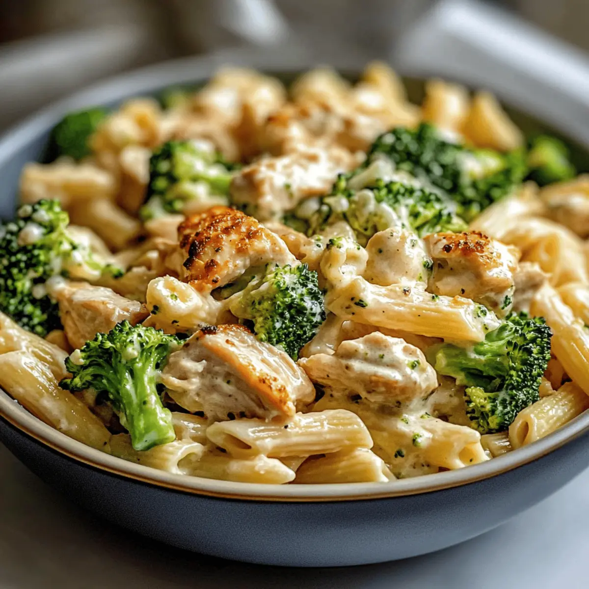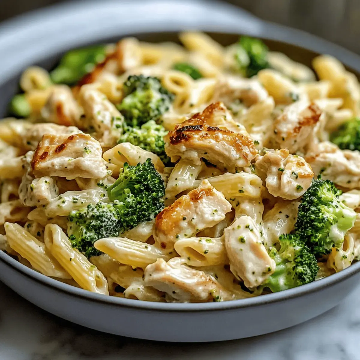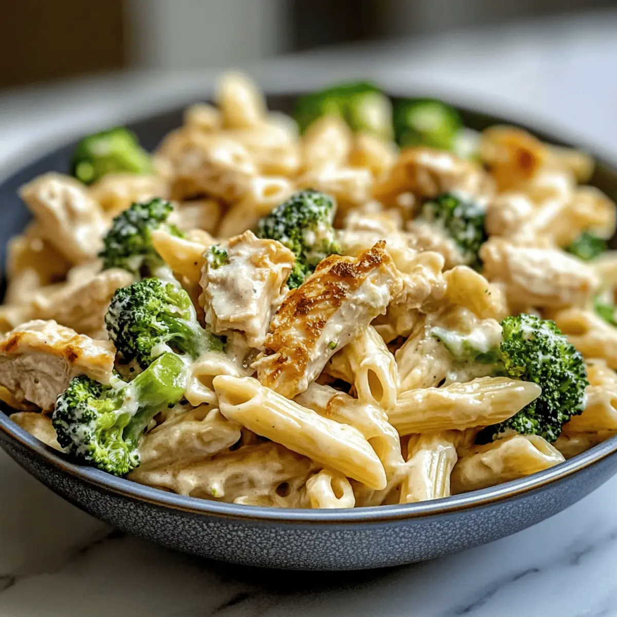 As I stood in my kitchen, the alluring scent of sautéing garlic and onions danced through the air, instantly lifting my spirits. I was about to create something special: Quick and Creamy High-Protein Rotisserie Chicken Broccoli Pasta! This one-pot wonder not only combines tender penne, flavorful shredded rotisserie chicken, and vibrant broccoli, but it also packs over 28 grams of protein per serving. In under 35 minutes, you can transform your weeknight dinner from routine to extraordinary—perfect for anyone seeking comfort without the hassle. Imagine a hearty meal that satisfies even the pickiest eaters while also being incredibly easy to whip up. With just a few essential ingredients, you’ll have a creamy, dreamy dish that makes homemade food feel special. Ready to dive into this culinary delight? Let’s explore how to bring this comforting pasta to your table! Why is this pasta a family favorite? Simplicity makes this dish a breeze to prepare—easy cooking means you can skip takeout! Rich, savory flavors from the rotisserie chicken and creamy sauce create an indulgent taste the whole family will love. Versatility shines through; customize with your favorite veggies or cheeses for a personal touch. In just 35 minutes, you’ll have a nourishing meal ready to impress your loved ones. Pair it with a refreshing Caesar salad for a balanced dinner that everyone will rave about! Rotisserie Chicken Broccoli Pasta Ingredients • These essential items will make your cooking experience a delight! For the Pasta Penne Pasta – The perfect base carbohydrate; feel free to use other pasta shapes if you’re in the mood for a change. Broccoli Florets – Adds a pop of color and nutrition; both fresh and frozen work wonderfully. For the Sauce Rotisserie Chicken – Provides rich flavor and protein; substitute with leftover cooked chicken for convenience. Olive Oil – A beloved cooking fat that enhances flavor; other oils can work too if you prefer. Garlic (minced) – This aromatic brings depth; fresh garlic elevates the dish, but powdered works in a pinch. Yellow Onion (diced) – Offers sweetness and umami; shallots can be a lovely substitute if you have them on hand. Butter – Adds a creamy richness to the sauce; feel free to swap with more olive oil for a dairy-free option. Heavy Cream – Creates a luxuriously creamy sauce; consider half-and-half or dairy-free cream for a lighter version. Chicken Broth (low-sodium) – Enhances flavor; homemade broth or vegetable stock is a great alternative. For the Cheesy Goodness Parmesan Cheese (freshly grated) – Adds flavor and creaminess; nutritional yeast can replace this for a dairy-free version. Mozzarella Cheese (shredded) – Perfect for that gooey texture; explore fontina or gouda if you want to experiment. For Seasoning Italian Seasoning – A beautiful blend of herbs; individual herbs like basil, oregano, and thyme also shine if needed. Garlic Powder – A bonus for garlic lovers; skip it if you’re going heavy on the fresh garlic. Red Pepper Flakes (optional) – For those wanting a bit of heat; use black pepper as a milder alternative if desired. Feel free to personalize this Rotisserie Chicken Broccoli Pasta recipe to suit your family’s preferences! Step‑by‑Step Instructions for Quick and Creamy High-Protein Rotisserie Chicken Broccoli Pasta Step 1: Boil the Pasta and Broccoli Start by bringing a large pot of salted water to a rolling boil over high heat. Once boiling, add the penne pasta and cook according to package instructions until al dente, typically about 10-12 minutes. After 7 minutes, gently toss in the vibrant broccoli florets to blanch them alongside the pasta. Step 2: Drain and Reserve Liquid Once the pasta and broccoli are perfectly tender, reserve about 1 cup of the pasta water for later use, then drain the mixture together in a colander. Allow the pasta and broccoli to sit briefly while you prepare the creamy sauce; the heat will keep them warm until combined. Step 3: Sauté the Aromatics In a large skillet, heat 2 tablespoons of olive oil and 2 tablespoons of butter over medium-low heat. Once the butter is melted and bubbling, add the diced yellow onion and sauté for about 4-5 minutes, stirring frequently until the onion is soft and translucent. Add the minced garlic during the last 30 seconds to infuse the pan with its aromatic goodness without burning it. Step 4: Create the Creamy Sauce Pour in 1 cup of heavy cream and 1 cup of low-sodium chicken broth into the skillet with the sautéed onion and garlic. Stir to combine, then let the mixture simmer gently for about 2-3 minutes over low heat. Avoid boiling to maintain a creamy consistency; you’ll want it to thicken slightly and coat the back of a spoon. Step 5: Add Cheese and Seasoning Remove the skillet from the heat and whisk in ½ cup of grated Parmesan cheese and 1 cup of shredded mozzarella until melted and the sauce is smooth. Season the cheese sauce with Italian seasoning, garlic powder, salt, pepper, and optional red pepper flakes to taste. This creamy foundation perfectly embraces the essence of your Rotisserie Chicken Broccoli Pasta. Step 6: Combine Pasta, Broccoli, and Chicken Gently fold the drained penne pasta and broccoli into the creamy cheese sauce in the skillet. Next, add in 1-2 cups of shredded rotisserie chicken, incorporating everything until evenly coated in the rich sauce. As needed, gradually add some reserved pasta water to reach your desired sauce consistency. Step 7: Finish and Serve For a silky finish, stir in a small knob of cold butter just before serving, enhancing the creaminess of your already delightful dish. Serve the creamy Rotisserie Chicken Broccoli Pasta hot, garnished with extra cheese or fresh herbs if desired. Enjoy the comforting flavors you’ve created in just 35 minutes! Expert Tips for Rotisserie Chicken Broccoli Pasta Perfectly Cook Pasta: Ensure you cook the penne until al dente for the best texture; overcooke