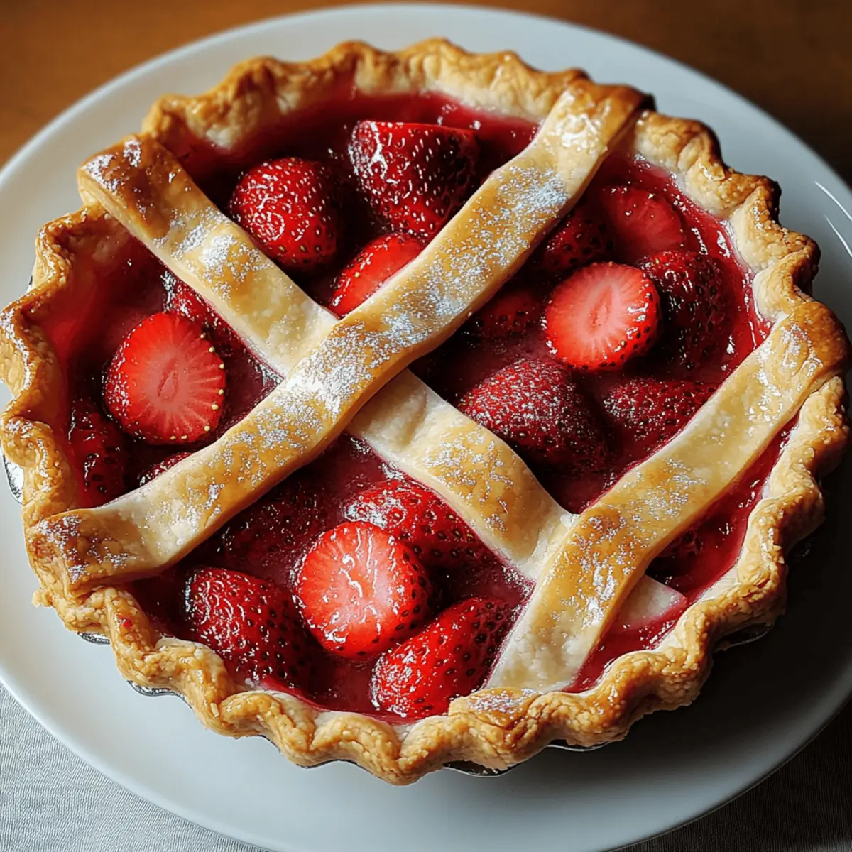 There’s something wonderfully nostalgic about the aroma of a freshly baked pie wafting through the kitchen. This Rustic Sweet Baked Strawberry Pie is not just dessert; it’s a celebration of summer’s juiciest berries, lovingly cradled in a golden, flaky crust. Combining the natural sweetness of ripe strawberries with a touch of zesty lemon, this pie is perfect for warm evenings spent with loved ones, creating memories over shared slices. Not only is it easy to prepare, but it also impresses without the fuss—a delightful balance of simplicity and elegance. Trust me, each slice will have everyone reaching for seconds. Ready to dive into a slice of summer bliss? Why is this strawberry pie unforgettable? Simplicity is key—this Rustic Sweet Baked Strawberry Pie requires just a handful of ingredients and basic skills, making it perfect for bakers of all levels. Flavorful strawberries shine topped with a hint of lemon, creating a sweet-tart explosion in every bite. Versatile enough for summer gatherings, it pairs beautifully with a scoop of homemade vanilla ice cream. Want to explore a savory option? Try my Baked Cauliflower New for a delightful contrast. This pie is sure to be the centerpiece of your dessert table, leaving guests in awe and reaching for seconds! Rustic Sweet Baked Strawberry Pie Ingredients For the Pie Crust All-purpose flour – Provides structure for flaky layers. Granulated sugar – Adds sweetness to the crust, enhancing the flavor. Salt – Elevates the flavors, balancing the sweetness. Unsalted butter – Chilled and cubed for a tender, flaky texture. Ice water – Keeps the dough cool for a crisp crust. For the Strawberry Filling Fresh strawberries – The star of the show, delivering juicy flavor bursts. Granulated sugar (for filling) – Sweetens strawberries and creates a syrupy consistency. Cornstarch – Thickens juices to avoid a runny filling, keeping slices intact. Lemon juice – Adds zesty brightness, balancing the sweetness of the strawberries. Vanilla extract – Infuses aromatic warmth to the filling. Unsalted butter (for filling) – Adds richness and depth of flavor. For Finishing Touches Egg (for egg wash) – Gives the crust a beautiful, glossy finish. Turbinado sugar (optional) – Sprinkled on top for a decorative and crunchy texture. Step‑by‑Step Instructions for Rustic Sweet Baked Strawberry Pie Step 1: Prepare Dough In a mixing bowl, combine all-purpose flour, granulated sugar, and salt, stirring until evenly mixed. Cut chilled, cubed unsalted butter into the dry ingredients using a pastry cutter or your fingertips until coarse crumbs form, resembling a sandy texture. Gradually drizzle in ice water, mixing until the dough holds together but is not sticky. Step 2: Chill Dough Divide the dough into two equal discs and wrap each in plastic wrap. Refrigerate for at least 1 hour to firm up, ensuring a flaky crust for your Rustic Sweet Baked Strawberry Pie. This step is crucial, as it allows the butter to solidify, creating that light and crispy texture you’ll love in each bite. Step 3: Prepare Filling While the dough chills, prepare the filling by hulling and halving fresh strawberries in a large bowl. Sprinkle in granulated sugar, cornstarch, lemon juice, and vanilla extract, tossing gently to coat the berries. Allow the mixture to sit for about 10 minutes, letting the juices release and meld together into a sweet syrupy goodness. Step 4: Roll Dough Once chilled, take one disc of pie dough and place it on a floured surface. Roll it out into a circle about 12 inches in diameter, ensuring it’s about an 1/8-inch thick. Carefully transfer the rolled-out dough into a 9-inch pie pan, gently pressing it into the bottom and sides. This will serve as the base for your delicious filling. Step 5: Add Filling Pour the coated strawberry mixture into the prepared crust, ensuring the berries are evenly distributed. Dot the filling with small pieces of unsalted butter to enhance richness and flavor throughout the Rustic Sweet Baked Strawberry Pie. This careful layering helps support the juiciness of the strawberries during baking. Step 6: Top Crust Take the second disc of dough and roll it out to match the size of the first. Carefully place this on top of the filling. Trim any excess dough and crimp the edges to seal the pie, ensuring no filling spills out. Create a few slits on top for steam to escape, giving your pie a rustic yet beautiful finish. Step 7: Finish Brush the crust with a beaten egg to achieve a glossy, golden surface while baking. If desired, sprinkle turbinado sugar over the top for added crunch and texture. This finishing touch not only adds flavor but also enhances the visual appeal of your Rustic Sweet Baked Strawberry Pie. Step 8: Bake Place the pie on a baking sheet to catch any drips, and bake in a preheated oven at 375°F (190°C) for 45-55 minutes. Keep an eye on it—the pie is done when the crust is golden brown and the filling is bubbling, filling your kitchen with delightful aromas that promise a perfect dessert experience. Step 9: Cool Once baked to perfection, remove your Rustic Sweet Baked Strawberry Pie from the oven and let it cool on a wire rack for at least 30 minutes. This cooling period helps the filling set, making slicing easier and preventing any mess when you serve this delightful pie to your loved ones. Rustic Sweet Baked Strawberry Pie Customizations Feel free to personalize your Rustic Sweet Baked Strawberry Pie with these delightful variations, making each slice uniquely yours! Frozen Strawberries: Substitute fresh strawberries with frozen, but increase cornstarch to avoid a runny filling. This method can be a huge time-saver, especially when strawberries aren’t in season. Honey or Maple Syrup: Replace granulated sugar with honey or maple syrup for a natural sweetness. This adds an enticing flavor twist that pairs beautifully with ripe berries. Whole Wheat Flour: Use whole wheat flour instead of all-purp