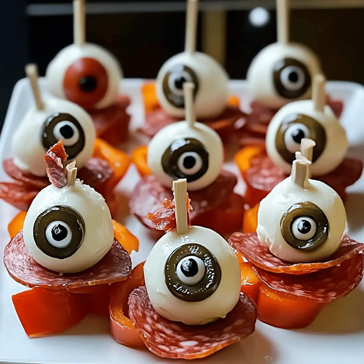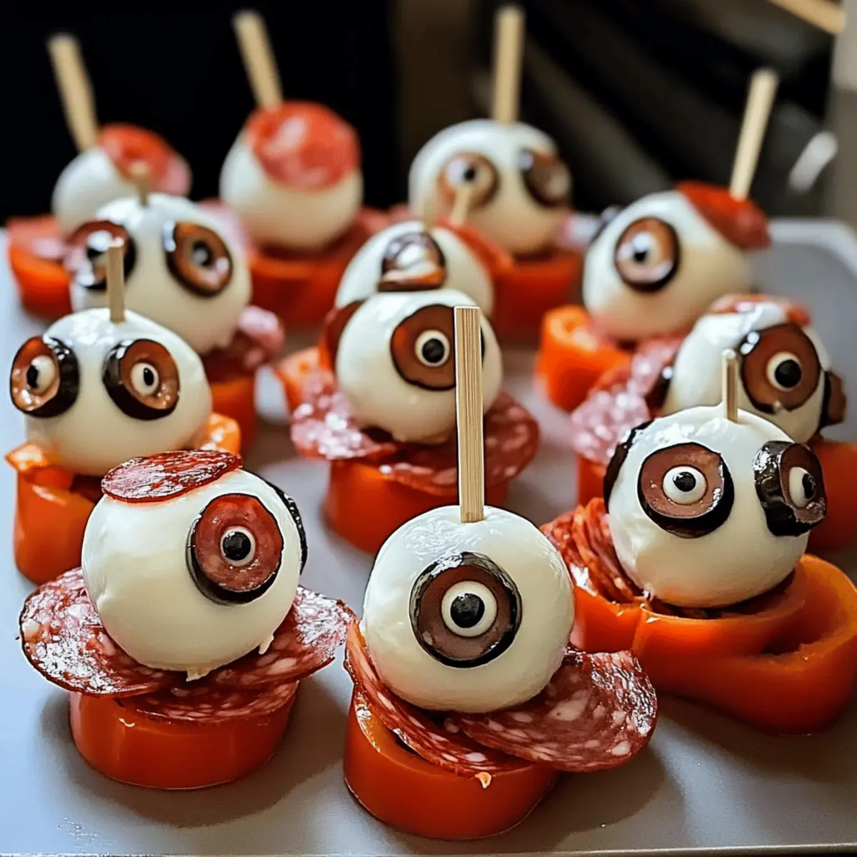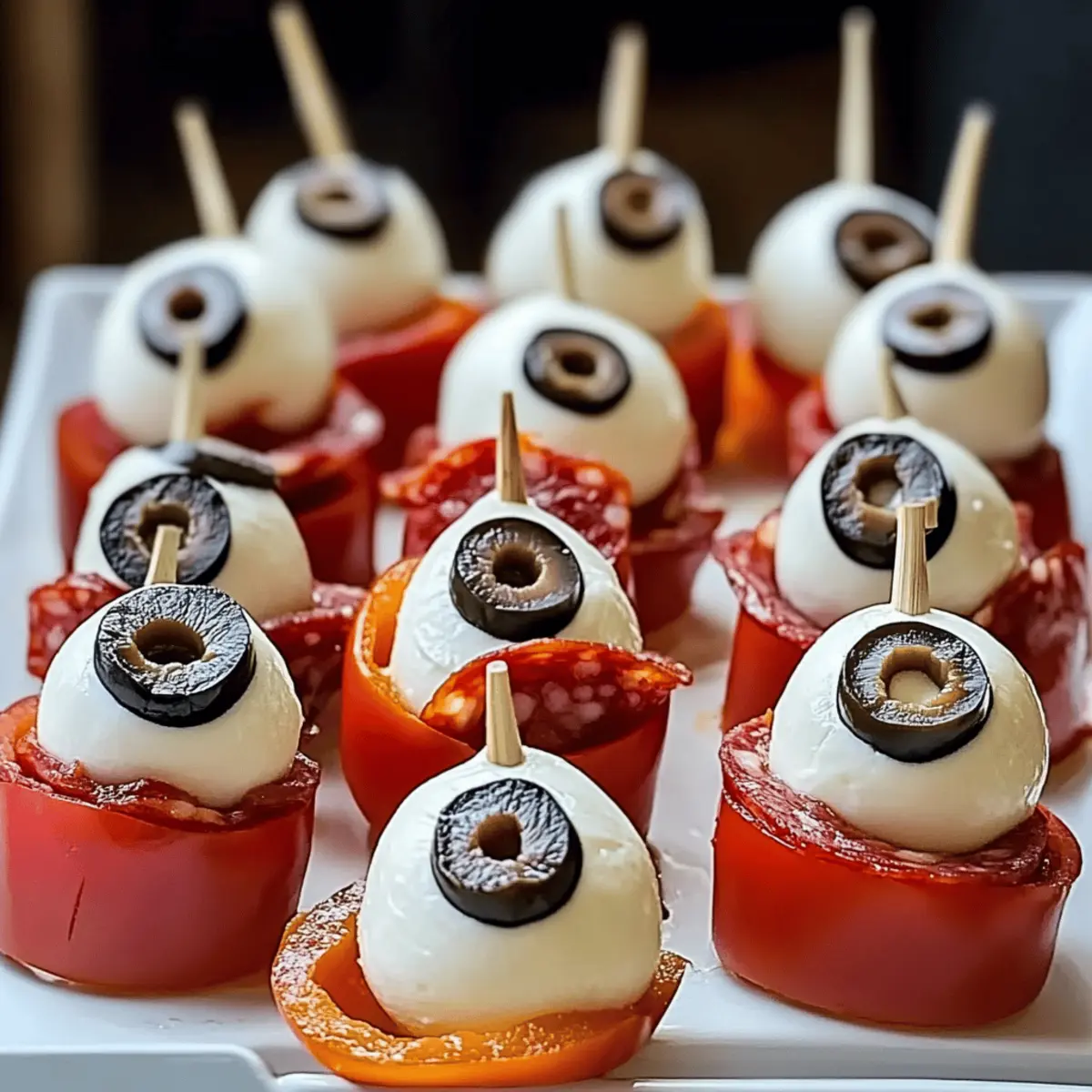 As the clock ticks down to Halloween, I often find myself in a mini crisis—how can I whip up spooky snacks that wow my guests without spending all day in the kitchen? Enter my Salami Mozzarella Eyeballs, the perfect no-cook appetizer that pairs playfulness with culinary savvy. Picture creamy mozzarella balls transformed into ghoulish eyeballs, crafted with savory pepperoni and briny olives. These quirky bites not only deliver maximum impact but also allow me to enjoy the party without being stuck at the stove. Plus, they can easily cater to different diets with a few fun twists. Curious how to conjure up this frightfully delightful treat? Let’s dive into the recipe that will have everyone talking (and chuckling) at your Halloween gathering! Why Are These Eyeballs a Halloween Hit? Fun and Playful: These Salami Mozzarella Eyeballs are a whimsical take on classic party food, perfect for igniting laughter and sparking conversations. Zero-Cook Convenience: With no cooking required, you’ll save valuable time while still impressing guests with a clever and intricate presentation. Flavorful Bite: The creamy mozzarella, zesty pepperoni, and salty olives create a delightful blend of flavors that appeal to everyone, making them an instant favorite. Versatile Variations: Easily adapt the recipe for different dietary needs with swapping suggestions like prosciutto or vegan cheese, ensuring everyone can join in on the fun! Crowd-Pleasing Appeal: Their striking appearance not only captures attention but also delivers delicious flavors. Pair them with a spooky punch or festive Halloween desserts for a complete festive spread! Salami Mozzarella Eyeballs Ingredients For the Eyeball Base Fresh Mozzarella Balls – The key ingredient that gives the “eyeball” effect; opt for firm, fresh mozzarella for the best texture. Kalamata Olives – Chopped finely to create the creepy pupil—if unavailable, black olives can work just as well. For the Spooky Touch Pepperoni Stick – Adds spiciness and visual variety; avoid pre-sliced for fresher flavor. Substitution: Try chorizo or salami for a twist; prosciutto with fresh basil elevates it further. Red Bell Pepper – Used for vibrant color and a “blood” accent to enhance the look; no substitutes suggested, but it dramatically adds to the spooky vibe. These Salami Mozzarella Eyeballs come together effortlessly and will certainly be the star of your Halloween table! Step‑by‑Step Instructions for Salami Mozzarella Eyeballs Step 1: Prepare the Mozzarella Begin by taking your fresh mozzarella balls and using a small knife to cut shallow indentations about 1/4 inch deep into the top of each ball. These indentations will form the eye sockets for your Salami Mozzarella Eyeballs. Ensure that you gently handle the mozzarella to maintain its shape while creating these spooky bases. Step 2: Create the Pupils Next, finely chop the kalamata olives to create tiny pupil pieces. Press these olive bits firmly into the indentations on each mozzarella ball, ensuring they stay in place. The briny flavor of the olives will perfectly complement the creamy mozzarella, bringing your creepy eyeballs to life with a ghoulish touch. Step 3: Cut Pepperoni for Blood Effect Take your pepperoni stick and slice it into varying sizes—some pieces should be around 3/4 inch chunks, while others can be cut into thin, circular slices. This will create an engaging texture and visual contrast which enhances the dramatic presentation of your Salami Mozzarella Eyeballs, perfect for a Halloween gathering. Step 4: Slice the Red Bell Pepper Now, grab your red bell pepper and cut it into small wedge-shaped pieces. These vibrant pepper wedges will serve as the “blood” accent for your dish, infusing both color and a hint of sweetness. Set these aside; they’ll add a fun element to the final assembly of the spooky appetizer. Step 5: Assemble the Eyeballs It’s time to assemble your Salami Mozzarella Eyeballs! Start with a red bell pepper wedge at the base of a skewer, followed by a chunk of pepperoni. Slide on a mozzarella ball with the pupil facing outwards, then add additional pepperoni slices on top, and top it off with another mozzarella ball for stability. Each skewer should be a delightfully spooky masterpiece! Step 6: Chill Before Serving Once your skewers are assembled, place them in the refrigerator to chill for about 30 minutes. This ensures that your Salami Mozzarella Eyeballs have the perfect texture and visual appeal when served. Refrigerate them covered to maintain their freshness and flavor before presenting them to your eager guests. Salami Mozzarella Eyeballs Variations Feel free to get creative with these spooky treats—each twist brings a unique flavor and presentations to your Halloween table! Italian Halloween Twist: Swap out the pepperoni for prosciutto and add fresh basil for a sophisticated flair. The combination gives a deliciously savory kick perfect for adult gatherings. Southwestern Spooky: Use pepper jack cheese to exchange the mozzarella and top with thin slices of jalapeño for that extra bit of heat. This variation brings a zesty surprise that spicy food lovers will adore! Holiday Adaptation: For a festive spin, substitute sharp white cheddar and add dried cranberries. Your guests will be delighted by the holiday charm in these eyeball treats! Vegan Option: Try this recipe with vegan cheese and replace the pepperoni with marinated tofu or tempeh. It ensures that all your guests, regardless of diet, can enjoy these eerie delights! Mediterranean Magic: Use feta cheese instead of mozzarella and introduce roasted red pepper for added sweetness. This refreshing take will have your guests raving about the unique flavors! Crunchy Surprise: Add crushed tortilla chips in between layers for a satisfying crunch in every bite. The extra texture delivers a delightful contrast to the creamy mozzarella and briny olives! Herb Infusion: Mix in finely chopped fresh herbs like