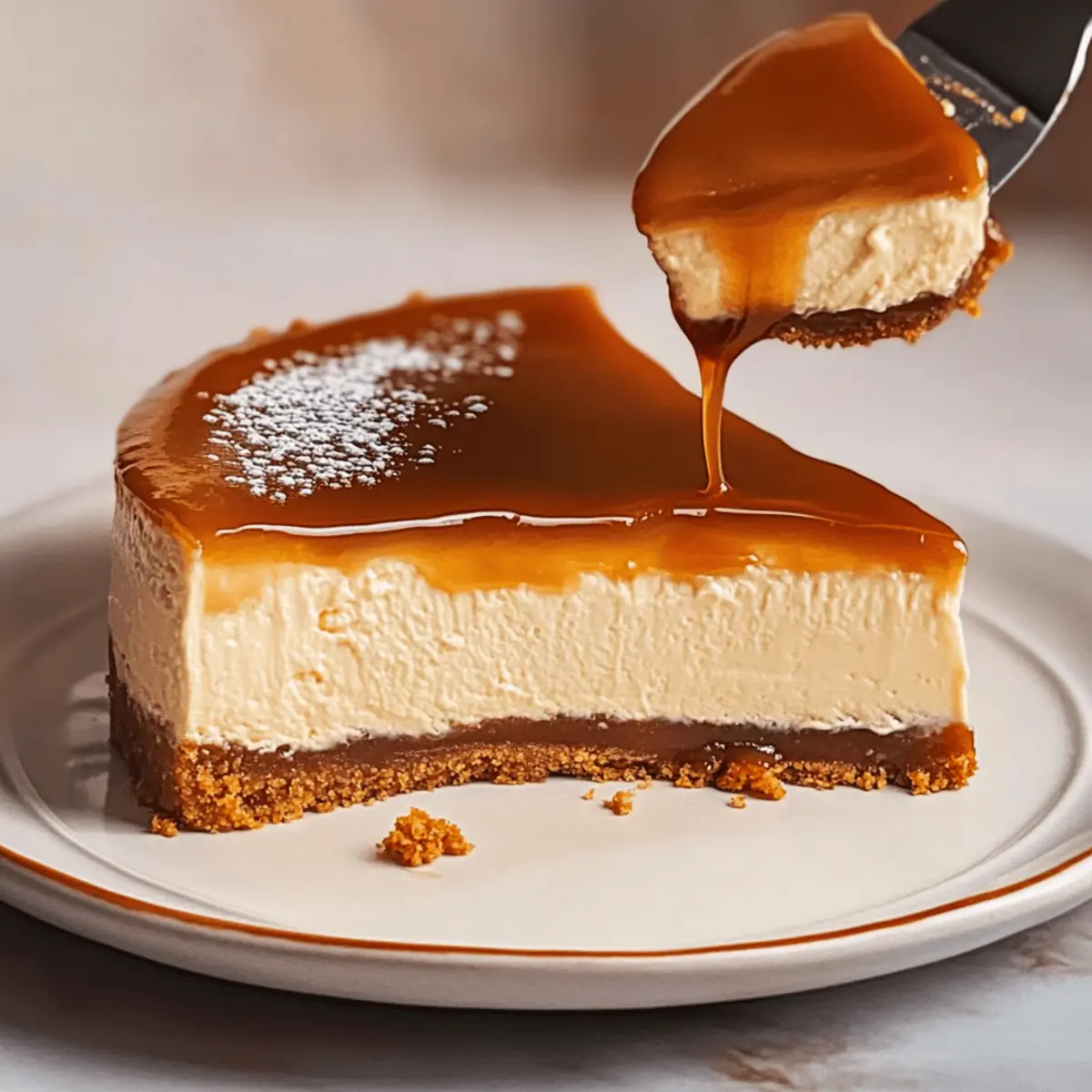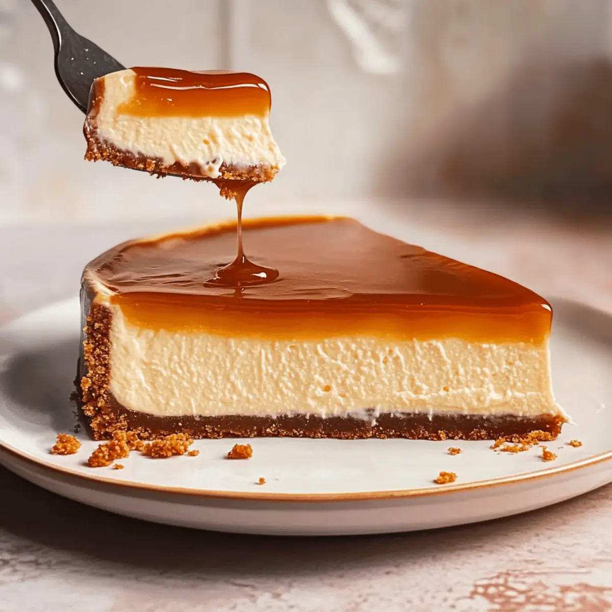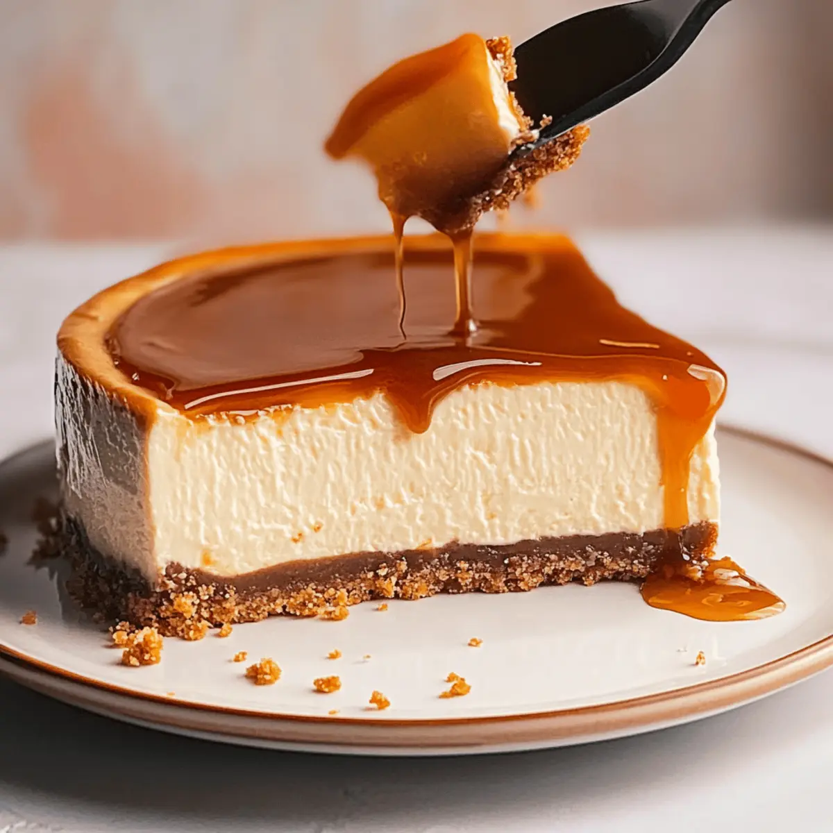 As the sun begins to dip below the horizon, the kitchen fills with the rich aroma of melting sugar, reminiscent of a cozy bakery on a bustling street. Today, I’m thrilled to share my recipe for Salted Caramel Cheesecake with a delightful Biscoff cookie crust. This creamy dessert not only offers a luxurious way to satisfy your sweet tooth, but the no-bake aspect means you can whip it up swiftly without heating the oven. Plus, the perfect balance of sweet and salty flavors is bound to impress your friends and family at your next gathering. Are you ready to elevate your dessert game and create this showstopper? Let’s dive in! Why is this cheesecake so irresistible? Decadent Flavor: The combination of rich salted caramel and a spiced Biscoff cookie crust creates an unforgettable taste sensation that will leave everyone craving more. No-Bake Convenience: Forget about complicated baking techniques! This simple recipe creates a creamy cheesecake without the fuss of the oven, making it perfect for any occasion. Crowd-Pleasing Delight: Ideal for gatherings, this cheesecake is sure to impress guests, making it a new favorite at parties or family dinners. Melt-in-Your-Mouth Texture: The velvety filling coupled with a crunchy crust delivers a delightful interplay of textures, inviting everyone to take another slice. Versatile Foundation: Feel free to adapt the flavors by experimenting with cookie swaps or adding a chocolate ganache layer — endless possibilities await! Check out our other delicious desserts like the Salted Caramel Banana or Blackberry Lemon Cheesecake for more inspiration. Salted Caramel Cheesecake Ingredients For the Caramel Sauce Granulated Sugar – Creates sweetness and melts into caramel; avoid stirring for even melting. Sliced Butter – Adds richness to the caramel; opt for unsalted for better control over saltiness. Heavy Cream – Ensures a creamy texture in the caramel; warm it before adding to prevent clumping. Vanilla Extract – Enhances the overall flavor; use pure vanilla for the best results. Salt – Balances the sweetness; adjust to taste, remembering it’s a salted caramel. For the Biscoff Crust Biscoff Cookies – Provides a spiced flavor base for the crust; you can substitute with graham crackers if needed. Melted Butter – Binds the cookie crumbs together; mix until all crumbs are evenly coated. For the Cheesecake Filling Cream Cheese – The star of the filling, delivering creaminess; ensure it’s at room temperature for easy mixing. Granulated Sugar (for filling) – Adds sweetness; adjust according to your personal preference. Eggs – Provides structure to the cheesecake; be sure they are at room temperature for even mixing. Heavy Cream (for filling) – Contributes to a smooth texture; full-fat is the best choice for this cheesecake. Sour Cream – Adds a touch of tanginess; Greek yogurt can be used as a substitute for a similar texture. Cornstarch – Stabilizes the filling; don’t skip this to avoid cracks in your cheesecake. Indulging in this Salted Caramel Cheesecake promises not just a treat for your taste buds but also a delightful experience with every bite! Step‑by‑Step Instructions for SALTED CARAMEL CHEESECAKE Step 1: Make the Salted Caramel Sauce In a medium saucepan, heat granulated sugar over medium heat without stirring until it melts into a deep amber color—a process that takes about 10 minutes. Carefully add sliced butter and stir until combined. Gradually pour in warmed heavy cream while continuing to stir until the mixture is smooth. Finally, mix in vanilla extract and salt. Let the caramel cool to room temperature before using. Step 2: Prepare the Oven Preheat your oven to 350°F (175°C). This step is crucial for baking the perfect cheesecake and ensuring a creamy texture. While the oven preheats, you can focus on preparing the Biscoff crust. Step 3: Make the Biscoff Crust Crush the Biscoff cookies in a large mixing bowl until they resemble fine crumbs. Combine them with melted butter, mixing thoroughly until every crumb is coated. Press this mixture firmly into the bottom of a 9-inch springform pan to create an even layer. Bake the crust for 10 minutes, then remove it from the oven and allow it to cool completely. Step 4: Prepare the Cheesecake Filling In a large mixing bowl, use an electric mixer to beat the cream cheese until it’s smooth and creamy. Gradually add granulated sugar and vanilla extract, continuing to mix until well incorporated. Add the room-temperature eggs one at a time, mixing slowly to maintain a light texture. Step 5: Incorporate Remaining Ingredients Gently fold in heavy cream, sour cream, and cornstarch into the cream cheese mixture, being careful not to overmix. This step is vital to keep your salted caramel cheesecake creamy and prevent cracks. Once combined, carefully fold in about two-thirds of the cooled salted caramel sauce until evenly distributed. Step 6: Bake the Cheesecake Pour the cheesecake filling into the cooled Biscoff crust, spreading it evenly. Bake in the preheated oven for 60-70 minutes, until the edges are set but the center still jiggles slightly. Keep an eye on the cheesecake to prevent overbaking, as it should remain creamy. Step 7: Cool Gradually After baking, turn off the oven and leave the cheesecake inside with the door slightly ajar for about an hour. This gradual cooling process helps prevent cracks on the surface, allowing the cheesecake to set properly. Step 8: Chill in the Refrigerator Once cooled, transfer the cheesecake to the refrigerator and chill for at least 4 hours or overnight if possible. This helps solidify the filling and enhances the flavors of your salted caramel cheesecake. Step 9: Add Finishing Touches Before serving, drizzle the remaining salted caramel sauce over the chilled cheesecake and sprinkle with flaky sea salt for an extra touch of flavor. This final detail elevates your dessert, making it truly irresistible. How to Store and Freeze Salted 