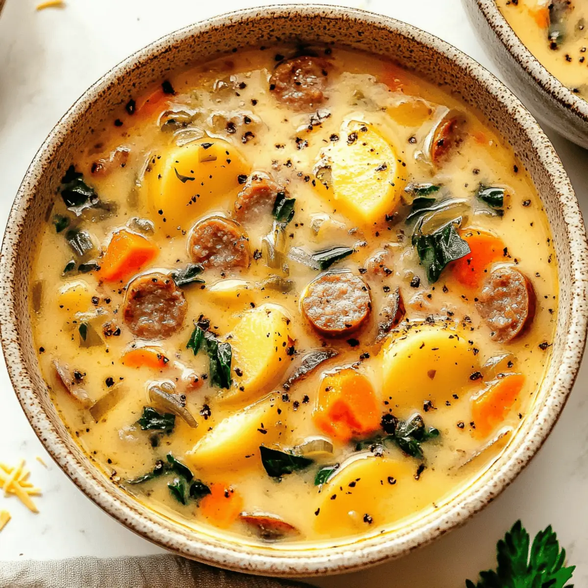 A warm and comforting Sausage Potato Soup perfect for chilly evenings and customizable to taste.