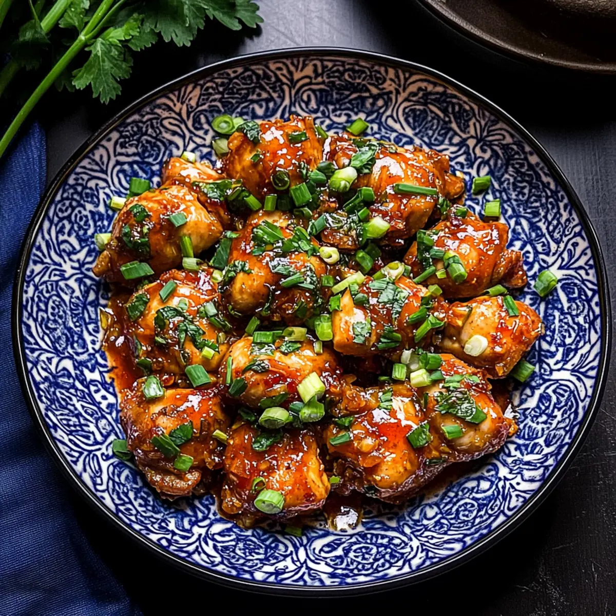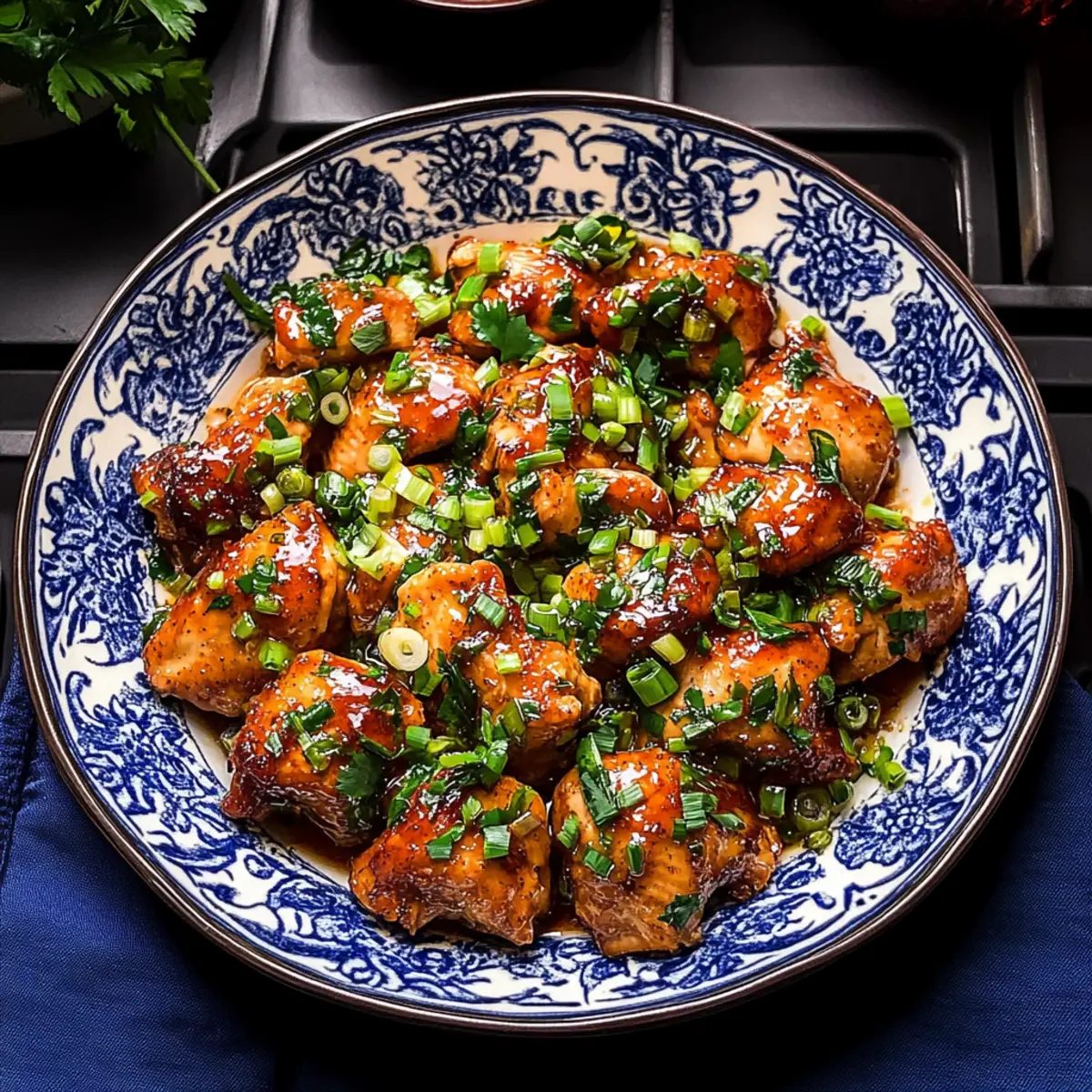 Amidst the whirlwind of life’s busy moments, I stumbled upon a dish that transforms an ordinary weeknight into a culinary adventure—Quick and Flavorful Scallion Chicken. This recipe exemplifies the magic of Asian cuisine, delivering tender chicken thighs drenched in a savory sauce and brightened by fresh scallions. Not only can you whip it up in under 20 minutes, but it’s also budget-friendly, making it the perfect solution for anyone weary of fast food. Picture it served over a fluffy bed of rice or a tangle of noodles, creating a satisfying plate that’s as nutritious as it is delicious. Ready to take your taste buds on a delightful journey? Let’s dive into this quick kitchen triumph! Why is Scallion Chicken a Weeknight Essential? Quick Preparation: Just 20 minutes to make this delightful dish, perfect for those hectic evenings. Flavor Explosion: The balance of savory sauces and fresh scallions creates a mouthwatering experience in every bite. Budget-Friendly: An affordable recipe that uses simple, accessible ingredients without compromising taste. Versatility: Enjoy it over rice, noodles, or even mix in your favorite veggies for a personalized twist! If you’re a fan of Garlic Butter Chicken or Cheesy Garlic Chicken, this dish will surely be a hit too. Crowd-Pleaser: Easy to make for family dinners or gatherings, satisfying even the pickiest eaters. Healthy Option: Low-calorie and diabetic-friendly, it caters to various dietary needs while being genuinely delicious. Scallion Chicken Ingredients • For the Chicken Chicken thighs – Provides juicy and tender protein; chicken breast can also be used, but may dry out easily. Cornstarch – Helps thicken the sauce and creates a velvety texture that clings beautifully to the chicken. • For the Sauces Soy sauce – Adds saltiness and umami depth; for gluten-free, use tamari as a substitute. Dark soy sauce – Lends a rich color and a hint of sweetness; can be omitted for a lighter flavor. Oyster sauce – Enhances the dish with a touch of sweetness; substitute with mushroom sauce for a vegetarian option. • For Cooking Oil – Essential for frying the chicken, contributing moisture and flavor; any neutral oil works well. Black pepper powder – Adds a zesty kick; adjust to your taste preferences. • For Freshness Scallions – Provide mild onion flavor and freshness; use both the white and green parts for a vibrant finish. Embrace the flavor-packed goodness of Scallion Chicken, and don’t hesitate to experiment with your favorite veggies or protein alternatives for a meal that fits your style! Step‑by‑Step Instructions for Scallion Chicken Step 1: Marinate Chicken Begin by combining the chicken thighs with soy sauce, dark soy sauce, oyster sauce, black pepper, and cornstarch in a bowl. Ensure the chicken is well-coated in the marinade, then let it rest for about 10 minutes. This step not only adds flavor to the scallion chicken but also helps tenderize the meat, making it juicy and delicious. Step 2: Prepare Scallions While the chicken is marinating, take this time to chop the scallions. Slice the white parts finely and set them aside, then chop the green parts roughly. This separation is key, as the white parts will be cooked first to enhance their flavor, while the greens will provide a fresh finish to your scallion chicken. Step 3: Cook Chicken Heat a non-stick pan over medium heat and add a tablespoon of oil. Once the oil is shimmering, add the marinated chicken thighs. Cook for around 6-8 minutes on each side until they are golden brown and cooked through, with no pink remaining in the center. For thicker pieces, covering the pan will help them cook evenly. Step 4: Add Scallions Once the chicken is nearly done, stir in the chopped white parts of the scallions. Cook for another 2-3 minutes until they are softened and fragrant. Then, add the green parts and sauté for just 10-20 seconds, allowing the brightness of the scallions to enhance the scallion chicken just before serving. Step 5: Serve Finally, plate your beautifully cooked scallion chicken alongside steaming rice or noodles. For an attractive garnish, sprinkle extra scallions or a touch of black pepper on top. The vibrant colors and appealing aroma will make this dish a delightful centerpiece for your meal, ready to be enjoyed! Scallion Chicken Variations & Substitutions Feel free to play around with this recipe and give it your personal touch—let your creativity run wild! Pork Alternative: Swap chicken for pork chops to enjoy a different, succulent flavor. Vegetable Boost: Add colorful veggies like broccoli or bell peppers for a nutritious twist that adds vibrancy to the dish. Sweeten the Sauce: For a touch of sweetness, mix in a tablespoon of sugar or honey for a delightful contrast to the savory flavors. Flavor Enhancer: Incorporate minced ginger or garlic to amplify the depth of flavor in your scallion chicken for a fragrant note. Chili Heat: Craving some spice? Drizzle in chili oil or sprinkle crushed red pepper flakes to bring some heat to your plate. Gluten-Free: Use tamari instead of soy sauce for a gluten-free version while still enjoying the rich umami flavor. Creamy Addition: Stir in a small amount of coconut milk or cream for a creamier sauce that pairs wonderfully with the scallions. Noodle Delight: Serve it over zoodles (zucchini noodles) or shirataki noodles for a low-carb alternative, adding a healthy dose of veggies. Let’s not forget that if you love the flavors here, you might enjoy dishes like Garlic Butter Chicken or Savory Chicken Piccata too! How to Store and Freeze Scallion Chicken Fridge: Store leftovers in an airtight container for up to 3 days to maintain freshness and flavor. Freezer: For longer storage, freeze scallion chicken in an airtight, freezer-safe container for up to 3 months. Thaw in the fridge overnight before reheating. Reheating: Reheat thoroughly in a microwave or on the stove over low heat, adding a splash of wate