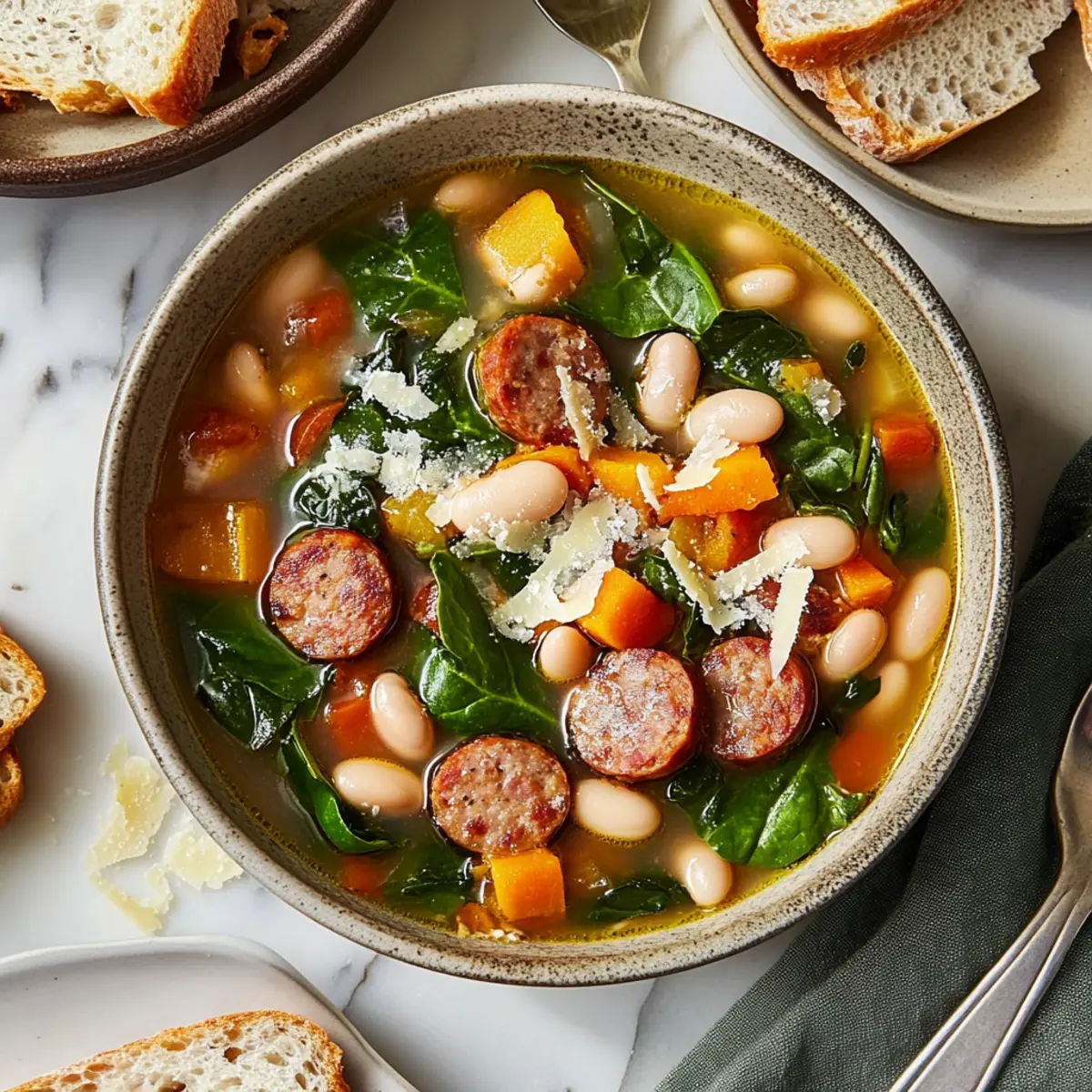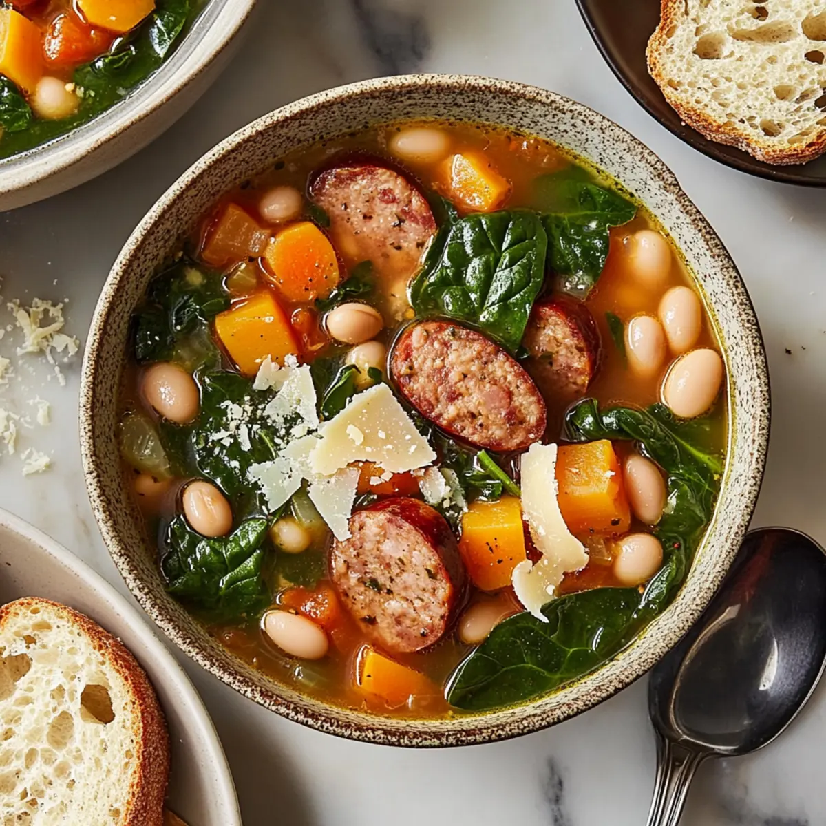 As the chilly evenings roll in, there’s nothing quite like the sound of a slow cooker bubbling away, promising comfort and warmth. This Slow Cooker Sausage, Spinach and White Bean Soup brings together the perfect medley of flavors and textures, making it an instant favorite for cozy nights. With merely 10 minutes of prep time, you can easily whip up this heartwarming dish, allowing you to savor a delightful and satisfying meal with little fuss. Not only is it gluten-free with a few simple swaps, but it’s also a wonderful option for meal prep, ensuring you have a nourishing meal ready to go. So, are you ready to embrace the comfort of homemade soup that practically cooks itself? Keep reading for the delicious details! Why is this soup a must-try? Simplicity at Its Best: With just 10 minutes of prep, this soup lets you enjoy a hearty meal without the hassle. Rich, Comforting Flavor: The combination of savory sausage, creamy white beans, and fresh spinach creates a delightful harmony that will warm your soul. Versatile Ingredients: Feel free to mix it up! You can swap sausage for turkey or add seasonal veggies like zucchini for endless variations. Meal Prep Friendly: This soup not only stores well, but it also freezes beautifully, making weeknight dinners a breeze. Crowd-Pleasing Dish: Perfect for family gatherings or cozy nights in, everyone will love this tasty, satisfying bowl of goodness. Pair it with some crusty bread, and you’ve got a winner! Slow Cooker Sausage, Spinach and White Bean Soup Ingredients For the Base • Olive Oil – A staple for sautéing; any cooking oil can be used in its place. • Smoked Andouille Sausage – This adds a rich, smoky flavor; consider kielbasa or chicken sausage for a lighter alternative. • Garlic (3 cloves, minced) – Fresh garlic truly enhances flavor; dried garlic works in a pinch but fresh is best. • Onion (1, diced) – Provides sweetness and depth; opt for yellow or white onions to complement the dish. • Carrots (3, peeled and diced) – Adds natural sweetness and texture to the soup. • Celery (2 ribs, diced) – Contributes to the flavor base; can be replaced with bell peppers if preferred. For the Soup • Great Northern Beans (2 cans, drained and rinsed) – This ingredient forms the creamy backbone of the dish; soaked dry beans can also be used if cooking time is adjusted. • Dried Oregano (½ teaspoon) – Brings a lovely herbal note; Italian seasoning works well as a substitute. • Bay Leaves (2) – Infuses the soup with rich flavors; don’t forget to remove them before serving. • Chicken Broth (4 cups) – The soup’s main liquid; use vegetable broth for a vegetarian option. • Kosher Salt & Freshly Ground Black Pepper – Season to taste; adjust according to personal preference. For the Finish • Baby Spinach (3 cups) – A nutritious addition that wilts perfectly; substitute kale if desired, added towards the end of cooking. • Shaved Parmesan (½ cup) – A delightful finishing touch; grated Parmesan or nutritional yeast can be great vegan alternatives. Step‑by‑Step Instructions for Slow Cooker Sausage, Spinach and White Bean Soup Step 1: Sauté the Sausage In a large cast iron skillet, heat 1 tablespoon of olive oil over medium-high heat. Once hot, add the sliced smoked Andouille sausage and cook for about 3-4 minutes until lightly browned. This step enhances the depth of flavor in your Slow Cooker Sausage, Spinach and White Bean Soup, so make sure the sausage has a nice caramelized color. Step 2: Transfer to Slow Cooker Carefully transfer the browned sausage to your slow cooker. Next, add the minced garlic, diced onion, carrots, and celery to the skillet. Sauté these veggies for 2-3 minutes until aromatic. Then, transfer them into the slow cooker along with the Great Northern beans, dried oregano, and bay leaves. Season generously with kosher salt and freshly ground black pepper. Step 3: Add Liquids Pour in 4 cups of chicken broth and add 2 cups of water to the slow cooker. Stir everything well to combine the ingredients thoroughly, ensuring the beans and vegetables are evenly distributed. This creates a flavorful base for your hearty soup, so give it a gentle mix before sealing it up. Step 4: Slow Cook the Soup Cover the slow cooker with its lid and set it to cook on low for 7-8 hours, or on high for 3-4 hours. During this time, the flavors will meld beautifully, and the soup will develop a thick and hearty consistency. Be sure to check occasionally; the soup should be bubbling gently as it cooks. Step 5: Add Spinach Before Serving About 10 minutes before you plan to serve the soup, open the lid and stir in the 3 cups of baby spinach. Allow the spinach to wilt nicely in the hot soup for those last few minutes of cooking. This addition brings vibrant color and nutrition to your Slow Cooker Sausage, Spinach and White Bean Soup. Step 6: Serve and Enjoy Once the spinach is beautifully wilted, your soup is ready to serve hot! Ladle it into bowls and sprinkle with shaved Parmesan for a delightful finishing touch. Pair your comforting bowl of Slow Cooker Sausage, Spinach and White Bean Soup with some crusty bread for a complete and satisfying meal. What to Serve with Slow Cooker Sausage, Spinach and White Bean Soup Creating a cozy meal is all about finding the right companions that elevate your dish even further. Crusty French Bread: The perfect vessel for soaking up the rich broth, this warm, toasted bread complements the soup’s heartiness beautifully. Simple Garden Salad: A fresh salad with crisp greens and a light vinaigrette provides a refreshing contrast to the warm flavors of the soup. Garlic Breadsticks: Buttery, herby, and slightly crunchy, these add a garlicky flair that pairs wonderfully with the savory notes of your slow cooker dish. Roasted Vegetables: Seasoned seasonal veggies add a caramelized sweetness that highlights the soup’s savory qualities, creating an irresistible side. Cheese Platt