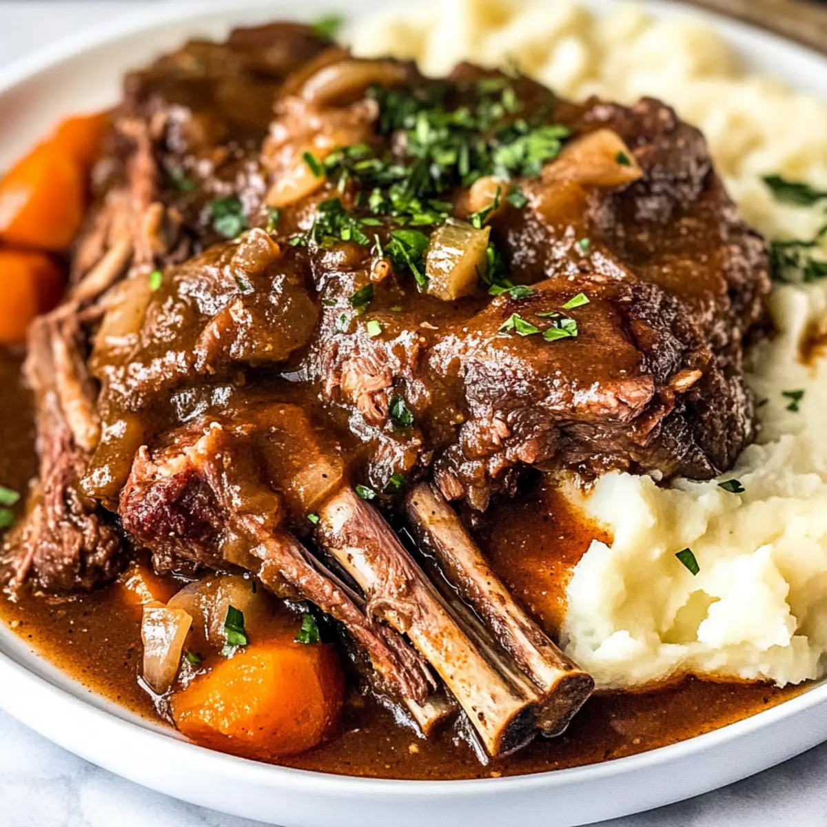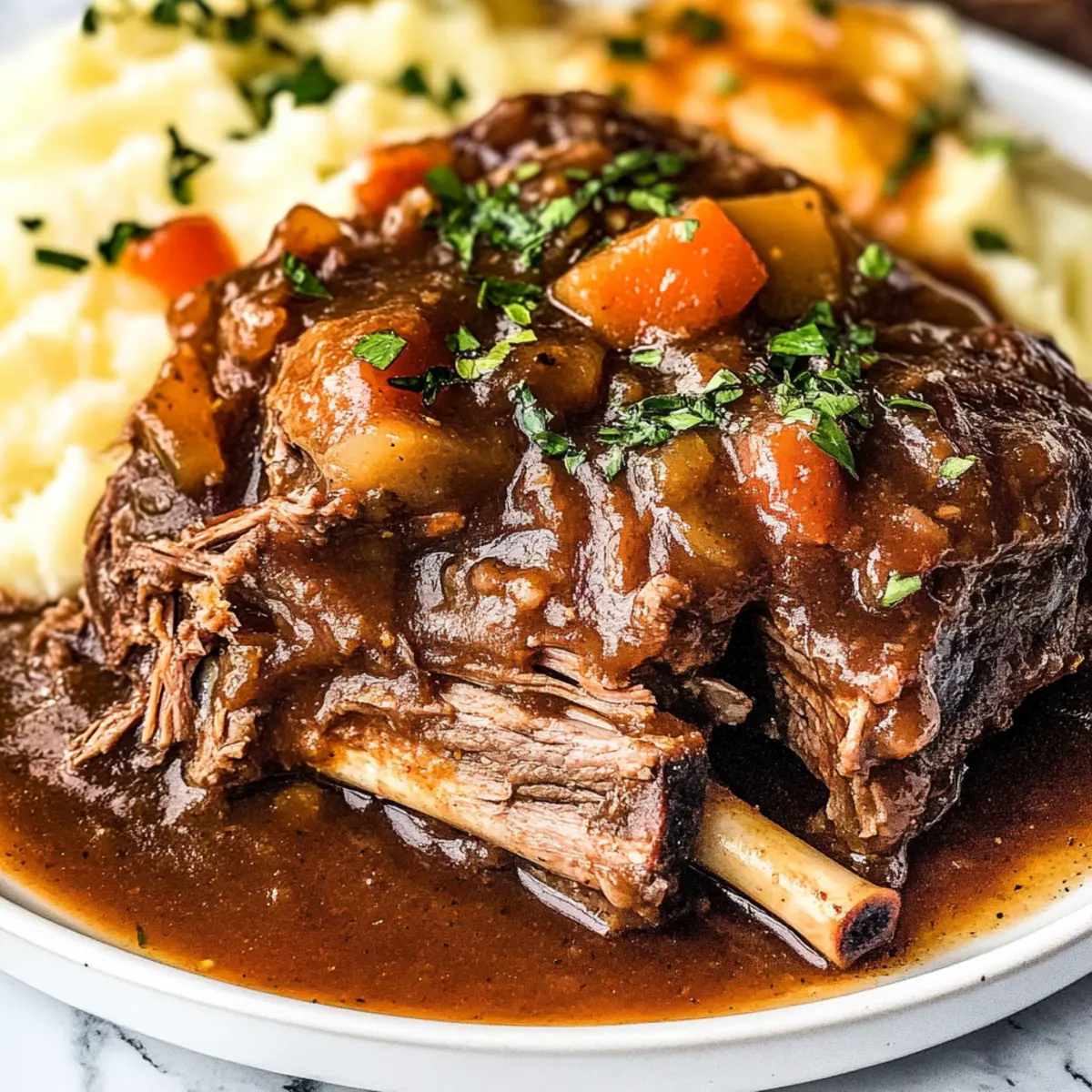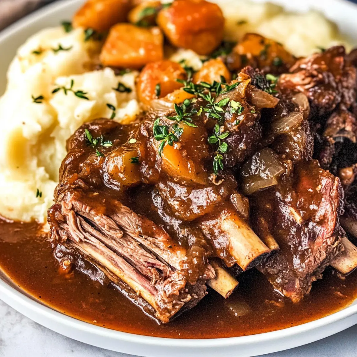 As the chilly air settles in, there’s nothing quite like the aroma of a home-cooked meal simmering away in the slow cooker. I’ve discovered that these Fall-Apart Tender Slow Cooker Short Ribs are the epitome of comfort food, perfect for cozy evenings with family or friends. With just a bit of prep, you can set it and forget it while indulging in the rich flavors and tender meat that falls right off the bone. This slow cooker meal not only saves time but also whisks you away to the heart of American cuisine, making it a true crowd-pleaser. Whether served over creamy mashed potatoes or a bed of fluffy rice, these short ribs are sure to satisfy even the heartiest appetites. Ready to transform your dinner routine? Let’s dive into this comforting recipe that’s bound to become a favorite in your household! Why are Slow Cooker Short Ribs a Must-Try? Melt-in-Your-Mouth goodness awaits with these slow cooker short ribs that guarantee a mouthwatering experience. Time-saving is a breeze—prep in no time and let the slow cooker work its magic. Hearty and satisfying, these ribs are perfect for cold evenings and create that cozy atmosphere we all crave. Versatile serving options, like creamy mashed potatoes or crusty bread, enhance your meal. With crowd appeal built right in, they’re sure to impress at your next gathering or become a family favorite. If you enjoy slow-cooked delights, check out my Slow Cooker Beef Stroganoff or Slow Cooker Butter Chicken for more comforting recipes! Slow Cooker Short Ribs Ingredients • Get ready to savor comfort food magic! For the Ribs Short Ribs – Use bone-in for rich flavor and tenderness in your SLOW COOKER SHORT RIBS. Cornstarch – Aids in thickening the gravy; mix well to ensure even distribution. Salt – Essential for bringing out the flavors; adjust based on your taste. Black Pepper – Freshly ground adds the right touch of heat to each bite. For the Aromatics Onion Powder – Offers a subtle onion flavor; substitute with fresh onions for added texture. Garlic Powder – Gives depth; fresh garlic can enhance the aroma significantly. Sweet Onions – Provides a base sweetness; yellow onions work well as an alternative. Garlic Cloves – Freshly minced escalates the dish’s fragrance. For the Flavor Base Cayenne Pepper – Add warmth; adjust according to your spice preference. Balsamic Vinegar or Worcestershire Sauce – Provides acidity and deep flavor; pick one based on your taste. Beef Broth – Keeps the ribs moist and acts as a seasoning base; low-sodium options are great for a healthier choice. Tomato Paste – Boosts richness; crushed tomatoes can work if you’re in a pinch. Herbs & Vegetables Fresh Thyme and Rosemary – Aromatic herbs for a lovely fragrance; if using dried, use less for the right balance. Bay Leaves – Infuses subtle depth; remember to remove them before serving. Carrots – Brings sweetness and nutrition to the dish; root vegetable substitutions are welcome! For Garnish Optional Herbs for Garnish – Fresh parsley or extra thyme/Rosemary brighten up the presentation. Dive into the rich flavors with these thoughtfully selected ingredients for your slow cooker short ribs and enjoy a cozy dinner experience! Step‑by‑Step Instructions for SLOW COOKER SHORT RIBS Step 1: Prepare the Ribs Begin by patting the short ribs dry with paper towels to remove excess moisture, ensuring a good sear. Season generously with cornstarch, salt, black pepper, onion powder, garlic powder, and cayenne pepper, coating all surfaces evenly. This helps build flavor and adds a nice crust when seared, setting the stage for your mouthwatering SLOW COOKER SHORT RIBS. Step 2: Sear the Ribs Heat a skillet over medium-high heat and add avocado oil. Once shimmering, carefully place the seasoned short ribs in the hot skillet. Sear the ribs for about 5 minutes on each side until a rich, brown crust forms, releasing aromatic scents, which will enhance the dish’s depth. Transfer the seared ribs to the slow cooker, leaving the flavorful bits in the skillet. Step 3: Sauté Aromatics In the same skillet, add the sweet onions and minced garlic. Sauté over medium heat for 1 to 2 minutes, stirring frequently until they soften and become fragrant. This step infuses your dish with robust flavor, making it an essential part of your SLOW COOKER SHORT RIBS’ base. Once ready, transfer the mixture directly into the slow cooker over the short ribs. Step 4: Build the Flavor Base Pour balsamic vinegar or Worcestershire sauce into the skillet to deglaze, scraping up any browned bits from the bottom. Add in the beef broth, tomato paste, fresh thyme, rosemary, and bay leaves, bringing the mixture to a gentle boil. This flavorful liquid serves as a rich cooking liquid for the short ribs, adding complexity to the texture and taste as it simmers away. Step 5: Slow Cook the Ribs Carefully pour the flavorful liquid over the seared short ribs in the slow cooker, ensuring they are well-covered. Set your slow cooker to LOW for 6-8 hours or HIGH for 4-6 hours, allowing the meat to cook low and slow. Check occasionally for doneness; the ribs should be fall-apart tender at the end of cooking, creating that deliciously rich flavor you expect from SLOW COOKER SHORT RIBS. Step 6: Add Vegetables About 1-2 hours before you’re ready to serve, add in the sliced carrots to the slow cooker. Their natural sweetness will complement the savory flavors of the ribs, enriching the overall dish. Continue to cook the SLOW COOKER SHORT RIBS until the carrots are tender, ensuring that every bite is soft and flavorful. Step 7: Garnish and Serve Once cooked to perfection, remove the bay leaves and discard them. Carefully plate the SLOW COOKER SHORT RIBS alongside the tender carrots, spooning generous amounts of the luxurious gravy over the top. Serve with creamy mashed potatoes, rice, or crusty bread to soak up the delectable sauce, creating a truly comforting meal for you and your loved ones. S