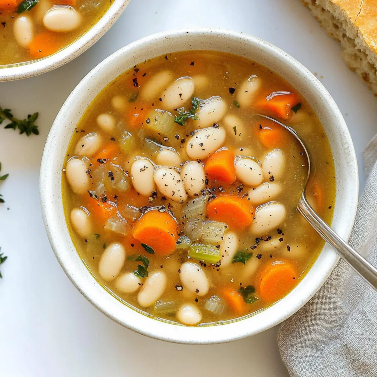 The aroma of simmering vegetables wafting through the kitchen has a way of feeling like a warm hug on a chilly day. My Easy Slow Cooker Vegetable Bean Soup is not just a meal; it’s a soul-soothing bowl of comfort that effortlessly combines wholesome ingredients like creamy Great Northern beans and vibrant vegetables. This vegan delight comes together with minimal effort, making it a go-to for busy weeknights when you crave something nourishing yet satisfying. While the slow cooker does the heavy lifting, you can sit back and unwind, knowing this hearty soup will be ready to enjoy by mealtime. Plus, it’s budget-friendly and perfect for meal prep, so you can stock your freezer with healthy home-cooked goodness. Are you ready to dive into a culinary adventure that nourishes both body and spirit? Why is this soup a must-try? Nourishing Comfort: Each bowl of this Slow Cooker Vegetable Bean Soup is packed with wholesome ingredients, delivering a hearty meal that warms the soul. Effortless Preparation: Simply toss your ingredients in the slow cooker, set the timer, and let it do the work while you focus on other things. Budget-Friendly: Using dried beans and seasonal veggies makes this recipe easy on your wallet, proving that healthy meals don’t need to be expensive. Endless Versatility: Customize your soup with different beans or veggies! Add some spices for a kick, or throw in greens like spinach for added nutrition. Perfect for Meal Prep: Make a big batch, store it in the fridge, or freeze individual portions for easy, healthy meals later. You’re set for busy days ahead! Serve with a Smile: Pair it with crusty bread or a fresh salad for a complete meal that your family will adore. It’s perfect for gatherings or cozy nights in! Slow Cooker Vegetable Bean Soup Ingredients • Dive into the heart of flavor with essential ingredients! For the Soup Base Dried Great Northern Beans – Soak them overnight for optimal texture, or substitute with Navy or Cannellini beans for variety. Carrots – Adds a hint of natural sweetness; ensure they’re freshly sliced for the best flavor. Yellow Onion – An aromatic foundation for your soup; shallots or leeks can be used in its stead. Celery – Provides crunch and depth; chop about two stalks. Garlic – Fresh minced garlic significantly enhances the soup’s flavor profile. Fresh Rosemary – Use minced fresh leaves for a fragrant aroma; dried rosemary works in a pinch (½ teaspoon). Dried Rubbed Sage – Offers a warm, earthy taste; Italian seasoning serves as a suitable alternative. For Flavoring & Cooking Black Pepper – Adjust to your taste; it perfectly rounds out the soup’s flavor. Vegetable Broth – A must for adding depth; homemade is ideal, but quality store-bought is also effective. Water – Essential for balancing the broth while ensuring beans cook nicely. Bay Leaves – Infuse the broth with herby goodness; remember to remove them before serving. Kosher Salt – Adjust to your liking; it enhances the natural flavors of all ingredients. Fresh Lemon Juice or Apple Cider Vinegar (optional) – Brightens up the soup; add it to taste before serving. Optional Garnishes Fresh Parsley/Rosemary – Adds freshness and a pop of color; consider drizzling olive oil for added richness. Step‑by‑Step Instructions for Slow Cooker Vegetable Bean Soup Step 1: Soak the Beans Begin by rinsing your dried Great Northern beans thoroughly under cold water. Next, place the beans in a large bowl, covering them with water. Allow the beans to soak overnight or for at least 4-6 hours. This helps to soften the beans and enhance their digestibility. Once ready, drain and rinse the beans again before using them in your Slow Cooker Vegetable Bean Soup. Step 2: Combine Ingredients In your slow cooker, add the soaked beans along with sliced carrots, chopped onion, and diced celery. Then, sprinkle in minced garlic, fresh rosemary, and dried rubbed sage for a fragrant base. Season with black pepper to your liking and pour in vegetable broth and water to cover the ingredients. Give everything a good stir to ensure even mixing within the slow cooker. Step 3: Cook the Soup Cover your slow cooker with the lid and set it to cook on HIGH for 4-5 hours if you prefer a brothy texture, or on LOW for 6-8 hours for a thicker, stew-like consistency. As the Slow Cooker Vegetable Bean Soup simmers, the beans will tenderize, and the aromas will fill your kitchen, making it a warm and inviting space. Step 4: Final Seasoning Once cooking time is complete, carefully remove the bay leaves from the soup. Taste and adjust the seasoning by adding kosher salt according to your preference. For a delightful finish, stir in some fresh lemon juice or apple cider vinegar to brighten the flavors. If desired, garnish your soup with chopped fresh parsley or rosemary for an elegant touch. Step 5: Store the Leftovers After savoring your delicious Slow Cooker Vegetable Bean Soup, allow any leftovers to cool completely. Transfer the soup into airtight containers for storage. In the refrigerator, it will stay fresh for 3-4 days, or you can freeze portions for up to 3 months. Just reheat as needed, and enjoy a homemade meal at any time! Make Ahead Options Preparing your Slow Cooker Vegetable Bean Soup in advance is a fantastic way to save time during busy weekdays! You can soak the Great Northern beans up to 24 hours in advance to enhance their texture and digestibility. Additionally, chop your vegetables—carrots, onion, and celery—one day ahead and store them in airtight containers in the fridge to preserve their freshness. When it’s time to cook, simply combine the soaked beans with the prepped vegetables, garlic, herbs, and broth in your slow cooker. Set it to cook, and enjoy a heartwarming meal that’s just as delicious as if made fresh! Note that leftovers can be refrigerated for up to 4 days or frozen for up to 3 months, making this soup a truly versatile option for meal prep. Slow Co
