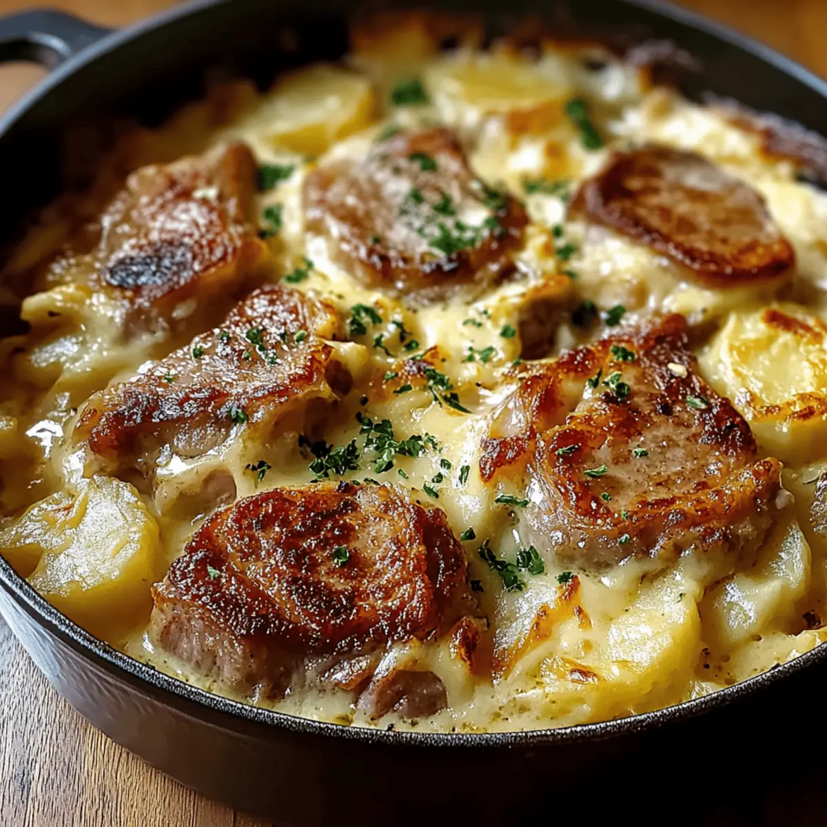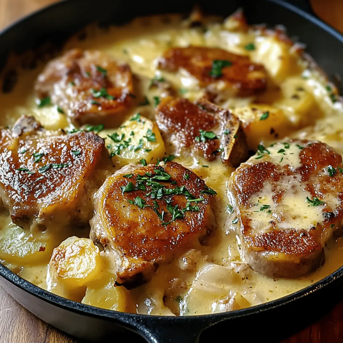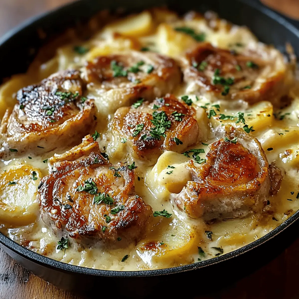 In the midst of a bustling kitchen, I overheard a friend lamenting about the endless cycle of takeout. That’s when I realized that nothing can quite replace the comforting embrace of a home-cooked meal, like my favorite Smothered Pork Chop and Cheesy Scalloped Potato Casserole. This dish isn’t just a recipe; it’s a hearty celebration of flavors that brings family together for cozy dinners. With juicy pork chops nestled atop creamy, cheesy scalloped potatoes, you’ll enjoy not only quick prep but also the joy of delicious leftovers that taste even better the next day. Isn’t it time we traded in those cardboard takeout boxes for something that truly feels like home? Let’s dive into this nurturing recipe that’s sure to become a cherished staple in your kitchen! What makes this casserole a family favorite? Unforgettable flavor: The combination of juicy pork chops and creamy, cheesy scalloped potatoes creates a mouthwatering experience that your family will crave. Comforting layers: Each bite delivers a warm embrace, with perfectly tender potatoes harmonizing with the savory flavors of the sauce. Easy preparation: This recipe simplifies dinner time with straightforward steps, allowing even novice cooks to shine in the kitchen. Leftover delight: Enjoy the joy of leftovers, as this casserole tastes even better the next day, providing a quick and satisfying meal option. Versatile ingredients: Feel free to mix in your favorite veggies or swap out the protein for chicken to keep things fresh and exciting. Bring back that home-cooked love by trying out this remarkable Smothered Pork Chop and Scalloped Potato Casserole—it’s sure to become the star of your family dinners! Smothered Pork Chop and Scalloped Potato Casserole Ingredients • Dive into the comforting goodness of this dish with the following ingredients that promise a delightful family dinner experience. For the Pork Chops Bone-in Pork Chops – Use thicker cuts for juiciness and flavor retention. Salt and Pepper – Essential for enhancing flavor; adjust to your family’s taste. Vegetable Oil – Great for browning; can substitute with olive oil for added flavor. For the Sauce Onion – Adds aromatic depth; yellow onion gives a classic touch, while sweet onions offer a different sweetness. Garlic – Fresh cloves provide the best flavor; pre-minced can save time, but fresh is always recommended. All-Purpose Flour – Thickener for the sauce; swap with cornstarch for a gluten-free option if needed. Milk – Creates a rich, creamy sauce; whole milk adds richness while plant-based milk suits a dairy-free diet. Chicken Broth – Provides moisture and flavor; low-sodium helps keep salt content in check. For the Casserole Potatoes – Yukon Gold or Russet work well; ensure they are thinly sliced for even cooking. Shredded Cheddar Cheese – Adds creaminess; mix with Monterey Jack or your favorite cheeses for added variety. Paprika – Enhances color and flavor; smoked paprika can offer a delightful twist. Fresh Parsley – Optional garnish but adds a fresh touch and a pop of color. This Smothered Pork Chop and Scalloped Potato Casserole is not just a meal—it’s an invitation to create warm, cherished memories at your dinner table! Step‑by‑Step Instructions for Smothered Pork Chop and Scalloped Potato Casserole Step 1: Preheat the Oven Begin by preheating your oven to 350°F (175°C). This ensures that when your Smothered Pork Chop and Scalloped Potato Casserole is ready to bake, it achieves that perfect, bubbly finish. While the oven heats, gather your ingredients so the cooking process flows smoothly. Step 2: Season and Brown Pork Chops Take your bone-in pork chops and generously season both sides with salt and pepper. In a large skillet, heat vegetable oil over medium-high heat. Once the oil is shimmering, add the pork chops, browning them for about 4-5 minutes on each side until they develop a lovely golden crust. This step enhances the flavor of your casserole. Step 3: Make the Sauce In the same skillet, add chopped onions and minced garlic, sautéing them until they are soft and fragrant, about 3-4 minutes. Sprinkle in the all-purpose flour, stirring continuously to create a roux for about 1 minute. This forms the base of your sauce, giving it that rich and creamy texture essential for the casserole. Step 4: Add Liquids Gradually stir in the milk and chicken broth, continuing to cook the mixture over medium heat. Keep stirring until the sauce thickens, approximately 5-7 minutes. Once it reaches a smooth, creamy consistency, remove the skillet from heat and allow the sauce to cool slightly while you prepare the casserole. Step 5: Assemble Casserole In a greased 9×13-inch baking dish, layer half of the thinly sliced potatoes evenly across the bottom. Pour half of the creamy sauce over the potatoes, then sprinkle half of the shredded cheddar cheese on top. Repeat with the remaining potatoes, sauce, and cheese, creating beautiful layers that will meld together wonderfully during baking. Step 6: Sprinkle Paprika To add a touch of color and flavor to your Smothered Pork Chop and Scalloped Potato Casserole, evenly sprinkle paprika over the top layer of cheese. This not only enhances the dish visually but also contributes a subtle warmth to the overall flavor profile. Step 7: Bake the Casserole Place the browned pork chops atop the layered casserole, ensuring they are nestled into the potatoes and sauce. Cover the dish with aluminum foil and bake in the preheated oven for 1 hour. This allows the flavors to meld and the potatoes to cook through. Step 8: Finish Baking After 1 hour, carefully remove the foil, allowing the casserole to bake for an additional 15-20 minutes. The cheese on top should be golden and bubbly, while a knife inserted into the potatoes should glide through easily, indicating they are tender and fully cooked. Step 9: Rest and Serve Once your casserole has finished baking, let it rest for about 10 minute