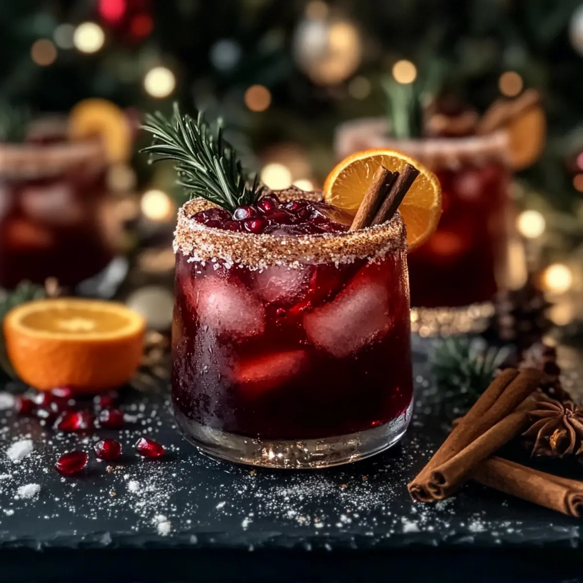 There’s something magical about the holiday season that makes every sip feel like a celebration. This Spiced Christmas Margarita captures that festive charm perfectly! With the zesty brightness of fresh pomegranate and citrus juices mingling delightfully with warm spices like cinnamon and ginger, it’s a cocktail that promises to elevate your holiday gatherings. Not only is this Christmas margarita a delicious crowd-pleaser, but it also offers a fun twist on a classic favorite, bringing warmth and cheer to chilly nights. So, whether you’re toasting with family or mingling at a holiday party, this drink will have everyone smiling. Curious to see how easy it is to mix up this festive delight? Let’s dive into the recipe! Why Is This Margarita Perfect for Holidays? Flavorful Fusion: The Spiced Christmas Margarita masterfully combines fresh pomegranate and citrus juices with the warmth of cinnamon and ginger, creating a cocktail that’s both refreshing and cozy. Visually Stunning: With a beautiful cinnamon-sugar rim and a rosemary garnish, this drink isn’t just delicious; it’s a feast for the eyes, perfect for impressing guests at any holiday gathering. Easy to Make: The straightforward instructions make it accessible for anyone, whether you’re a seasoned chef or a home cook just starting out. Versatile for All: This recipe allows for easy ingredient swaps—cranberry juice instead of pomegranate, or even a non-alcoholic version using sparkling water—offering something for every palate. Party Favorite: Designed to be a crowd-pleaser, this drink provides a festive spirit that will have everyone toasting and celebrating together. Transform your holiday gatherings with this delightful cocktail, and if you’re in the mood for more festive flavors, you might also enjoy our Spiced Pumpkin Pancakes or Sparkling Apple Spiced drinks. Spiced Christmas Margarita Ingredients For the Cocktail Tequila – Smooth silver tequila enhances the festive flavors beautifully; substitute with blanco tequila if needed. Pomegranate Juice – Offers a sweet-tart burst and vibrant color; cranberry juice can be used for a different twist. Orange Juice – Brightens the drink with fresh citrus notes; try tangerine juice for a unique flavor instead. Orange Liqueur – Enhances the citrus profile; Cointreau is preferred, but regular Triple Sec works well too. Honey – Natural sweetness balances the spices perfectly; agave syrup serves as a great vegan alternative. Vanilla Extract – Adds depth and warmth; make sure it’s fresh for the best flavor. Ground Cinnamon – Infuses cozy warmth into every sip; consider ground nutmeg for a different spice profile. Ground Ginger – Provides a delightful spice kick; fresh grated ginger can deliver an even fresher taste. Cayenne Pepper – An optional ingredient that adds heat to balance out the flavors; omit if preferred. Rosemary – Used as a garnish, it imparts aromatic herbal notes; thyme is a lovely alternative if you need it. Ginger Beer (optional) – Introduces a festive fizz; for a still cocktail, simply omit this ingredient. Step‑by‑Step Instructions for Spiced Christmas Margarita Step 1: Prepare the Cinnamon-Sugar Rim In a small bowl, combine coarse sugar, granulated sugar, and ground cinnamon, adding a pinch of cayenne pepper for a bit of heat if desired. Take a slice of tangerine or orange and rub it around the rim of a rocks glass to moisten it, then dip the rim into the cinnamon-sugar mixture. Fill the glass with ice, ready to hold your festive Spiced Christmas Margarita. Step 2: Combine Ingredients in a Shaker In a cocktail shaker, pour in fresh pomegranate juice, orange juice, smooth tequila, and orange liqueur. Add a drizzle of honey, a splash of vanilla extract, and sprinkle in ground cinnamon and ground ginger. If you’re feeling adventurous, toss in a pinch of cayenne pepper for added warmth. This will create the base for your vibrant cocktail. Step 3: Shake the Cocktail Fill the shaker with ice and securely close the lid. Shake vigorously for about 15 seconds, allowing the outside of the shaker to get frosty and cold. This step is crucial as it perfectly chills the mixture, blending all the flavors harmoniously for your delightful Spiced Christmas Margarita. Step 4: Strain and Serve Carefully strain the frosty cocktail into the prepared rocks glass, over the fresh ice. Watch the rich, colorful liquid flow into the glass, showcasing the beautiful hues of the pomegranate and orange juices. This step is vital to ensure a smooth drink without any ice shards or pulp. Step 5: Optional Top-Off For an extra festive touch and a bit of fizz, top off your Spiced Christmas Margarita with a splash of ginger beer. This step is optional but adds a delightful effervescence that elevates the drink’s flavors and makes it even more refreshing. Step 6: Garnish and Enjoy Finish your holiday cocktail with a charming garnish by placing a sprig of rosemary or a cinnamon stick into the glass. This not only adds an aromatic note but also makes your Spiced Christmas Margarita visually stunning, perfect for holiday gatherings or toasting with loved ones. Tips for the Best Spiced Christmas Margarita Quality Ingredients: Use high-quality silver tequila and fresh juices for the best flavor impact; avoid packaged juices whenever possible. Chill Everything: Chill your glass and shaker beforehand. This enhances the drinking experience by keeping your cocktail refreshingly cold. Balanced Sweetness: Adjust honey to taste based on your preference, ensuring the flavors remain harmonious and enjoyable in your spiced margarita. Experiment with Spice: Feel free to modify the ground ginger and cayenne to match your heat tolerance, creating a drink tailored just for you. Serve Fresh: Always prepare your Spiced Christmas Margarita right before serving to maintain its vibrant flavors and refreshing qualities. Garnish Creatively: A rosemary sprig or a cinnamon stick not only adds