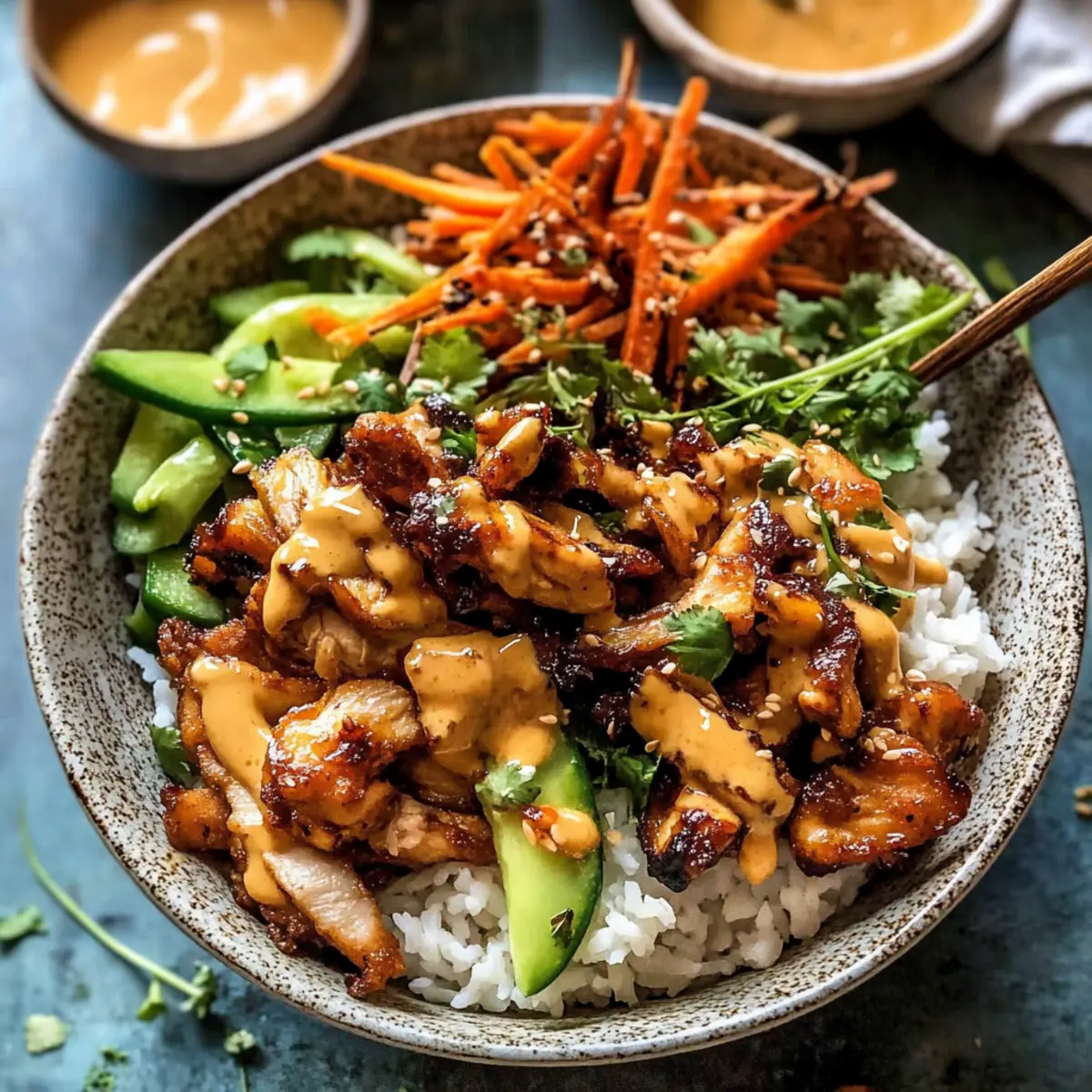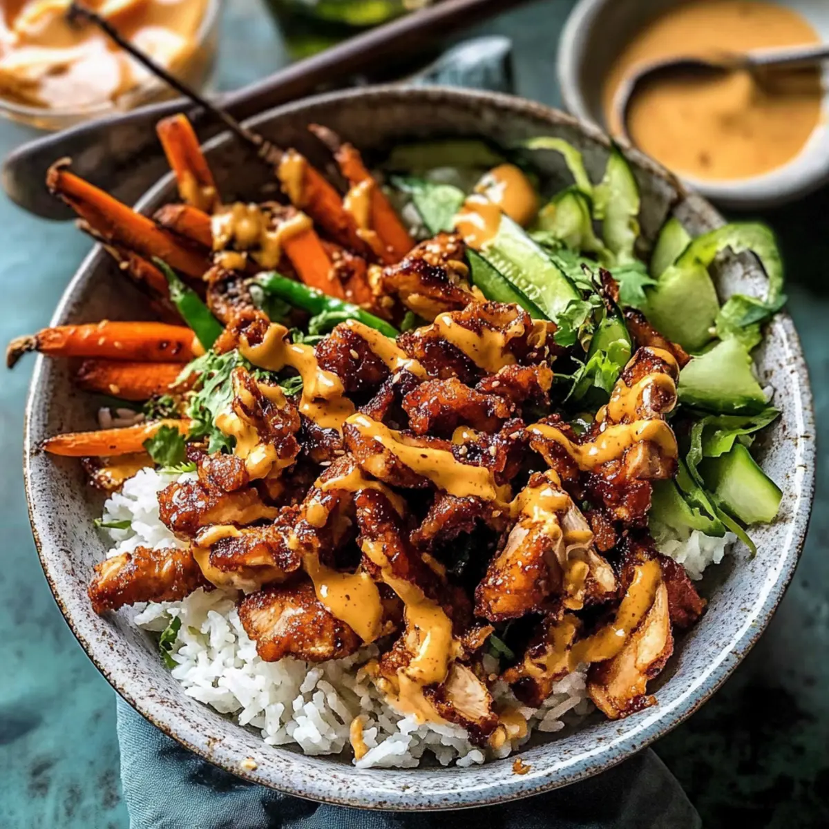 As I hurriedly prepped dinner one hectic weeknight, the tantalizing aroma of ginger and honey filled the air, instantly lifting my spirits. These Spicy Honey-Ginger Chicken Bowls have become my go-to for a quick weeknight meal, and they never fail to impress! Tender chicken, fluffy rice, and vibrant veggies come together in under 30 minutes, ensuring that busy evenings don’t have to sacrifice flavor. Plus, this dish is a comforting yet customizable feast that caters to the whole family—whether you keep it gluten-free or choose your favorite grains. As I drizzled on the creamy Yum Yum Sauce, I couldn’t help but wonder: what delicious twists will you add to make it your own? Why are these chicken bowls a must-try? Flavor Explosion: The combination of sweet honey and zingy ginger creates an unforgettable taste experience that dances on your palate. Quick & Easy: Perfect for busy weeknights, these bowls can be whipped up in just under 30 minutes without skimping on flavor. Customizable Delight: Tailor this dish to your liking by switching out proteins or grains; it’s just as delicious with tofu, shrimp, or quinoa. Healthy Comfort Food: Packed with lean protein and fresh veggies, these bowls are not only satisfying but also nourish your body. Crowd-Pleaser: Whether it’s a family dinner or a meal prep for the week, these Spicy Honey-Ginger Chicken Bowls are sure to impress everyone at the table! Feel free to pair it with a light salad or pickled vegetables for extra crunch, or check out my Garlic Butter Chicken for more inspiration! Spicy Honey-Ginger Chicken Bowl Ingredients For the Chicken Chicken Breast – A lean protein source that keeps the dish healthy; feel free to substitute with tofu or tempeh for a vegetarian option. Honey – Adds delightful sweetness and contributes to the sticky glaze; for a vegan option, use maple syrup instead. Fresh Ginger – Provides that aromatic kick and comes packed with health benefits; fresh is better, but powdered can work in a pinch. For the Base Rice or Quinoa – The perfect canvas for your dish; use brown rice, jasmine rice, or quinoa based on your preference to keep it gluten-free if desired. For the Vegetables Carrots, Peppers, Cucumbers – These crunchy veggies add texture and vitamins; customize based on what’s in season or available to you. For the Sauce Yum Yum Sauce – A creamy drizzle that elevates the flavors; you can either buy it ready-made or whip up your own for a fresher touch. Step‑by‑Step Instructions for Spicy Honey-Ginger Chicken Bowls Step 1: Cook the Base Start by preparing your base for the Spicy Honey-Ginger Chicken Bowls. In a medium saucepan, bring 2 cups of water to a boil. Add 1 cup of rice or quinoa, cover, and reduce the heat to low. Let it simmer for about 15-20 minutes until fluffy and water is absorbed, then remove from heat and let it sit covered for 5 minutes. Step 2: Prepare the Chicken While your rice or quinoa cooks, dice 1 pound of chicken breast into bite-sized pieces. Season the chicken with salt and pepper. In a large skillet, heat 1 tablespoon of oil over medium-high heat. Add the chicken pieces and cook for 5-7 minutes, stirring occasionally, until the chicken is golden and no longer pink in the center. Step 3: Make the Glaze In a small bowl, whisk together 1/4 cup honey and 1 tablespoon freshly grated ginger. Pour this sweet mixture over the cooked chicken in the skillet. Stir to coat the chicken evenly, cooking for an additional 2-3 minutes until the glaze thickens and becomes sticky, giving the chicken a delicious shine. Step 4: Assemble the Bowls With your rice or quinoa ready and glazed chicken prepared, it’s time to assemble your Spicy Honey-Ginger Chicken Bowls. Divide the cooked rice or quinoa among serving bowls, creating a cozy bed for the stunning toppings. Generously spoon the sticky chicken over the base and layer with your choice of fresh, crunchy vegetables such as sliced carrots, peppers, or cucumbers for added color and nutrition. Step 5: Drizzle with Yum Yum Sauce To bring your dish to the next level, finish by drizzling a generous amount of Yum Yum Sauce over your beautifully assembled bowls. This creamy sauce will enhance the flavors perfectly. Serve the bowls immediately while everything is warm, and marvel at this quick yet delightful meal that your family will love! How to Store and Freeze Spicy Honey-Ginger Chicken Bowls Fridge: Store leftovers in an airtight container for up to 3 days to maintain freshness and flavor. Freezer: For longer storage, freeze individual portions in airtight containers for up to 2 months. Just remember to cool completely before freezing to prevent ice crystals. Reheating: When ready to enjoy, thaw in the refrigerator overnight, then reheat on the stove over medium heat until warmed through. Adding a splash of water can help restore moisture. Meal Prep Tip: Preparing batch servings of Spicy Honey-Ginger Chicken Bowls in advance makes for quick, satisfying meals throughout the week! Make Ahead Options These Spicy Honey-Ginger Chicken Bowls are perfect for meal prep, allowing you to enjoy a flavorful dinner even on the busiest of nights! You can prep the chicken and honey-ginger glaze up to 24 hours in advance. Simply marinate the diced chicken in the glaze and refrigerate it in an airtight container until you’re ready to cook. The rice or quinoa can also be cooked and stored in the fridge for 3 days. When it’s time to serve, just sauté the marinated chicken until cooked through, reheat the grain, and assemble your bowls with fresh veggies and Yum Yum Sauce. This way, you’ll have a delicious, home-cooked meal with minimal effort, just as delightful as when freshly made! Spicy Honey-Ginger Chicken Bowls Variations Feel free to get creative and make these Spicy Honey-Ginger Chicken Bowls your own! Protein Swap: Replace chicken with shrimp or tofu for a different protein option that offers unique flavors. Grain Alternatives: Switch fro