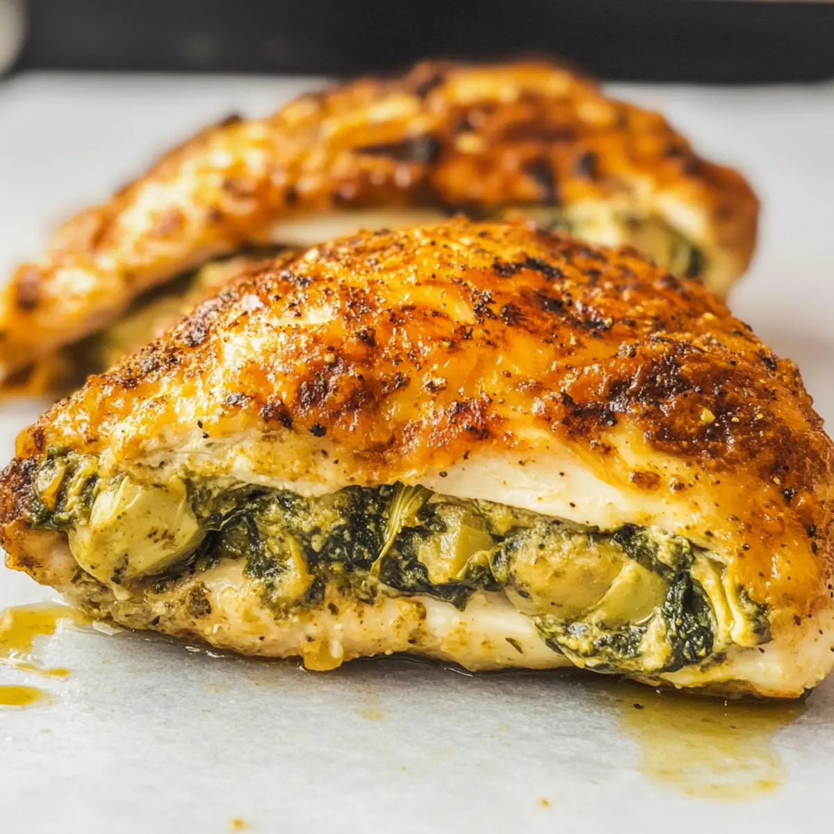 Store any leftover Spinach Artichoke Stuffed Chicken in an airtight container in the refrigerator for up to 3 days. Make sure the chicken has cooled completely before sealing to maintain its freshness. Gently reheat in the microwave or cover and warm in the oven at 350°F (175°C) for about 15-20 minutes to prevent drying out.