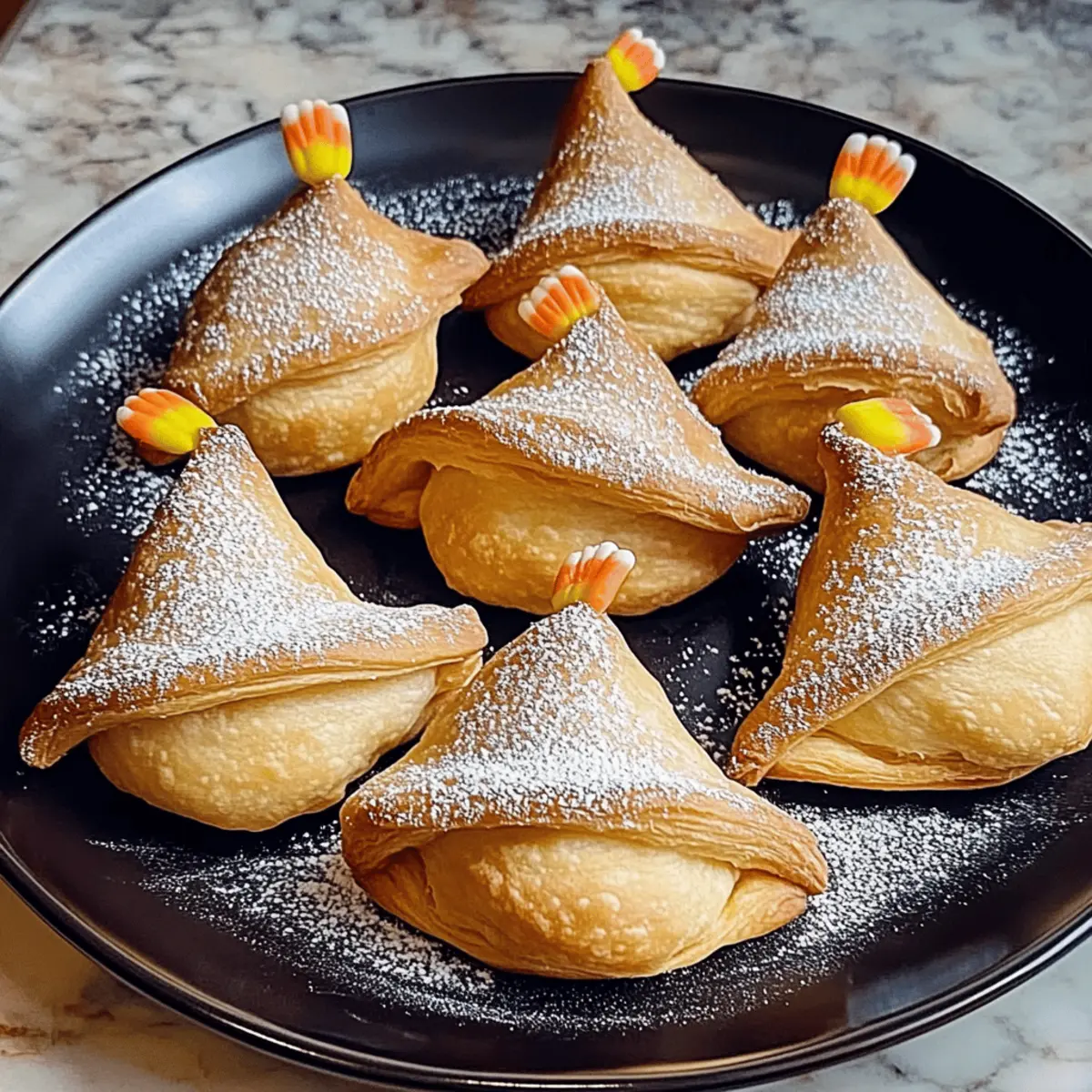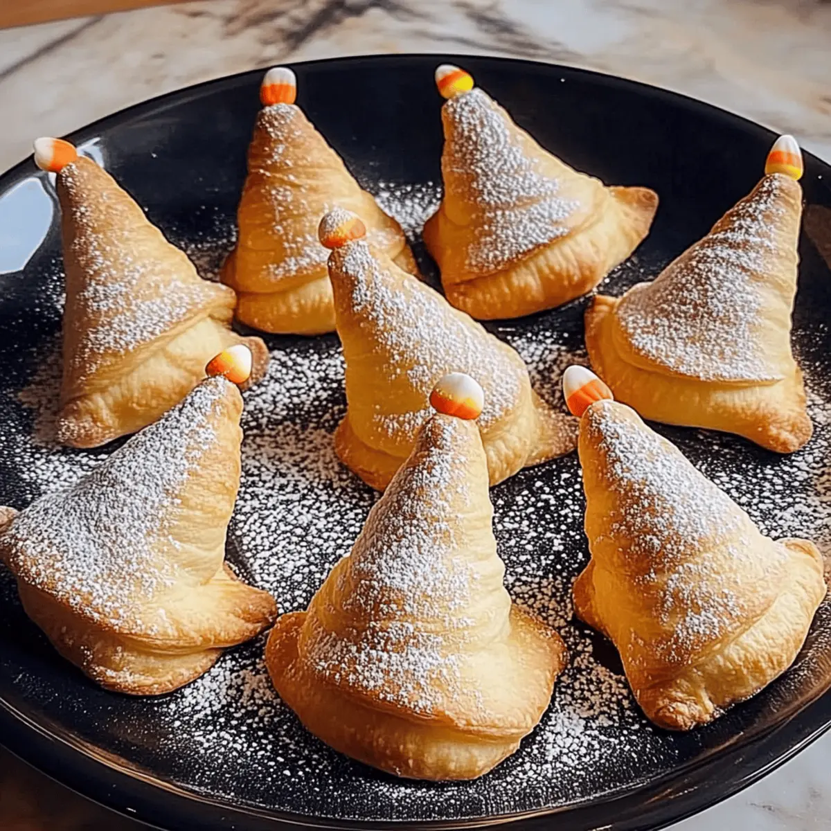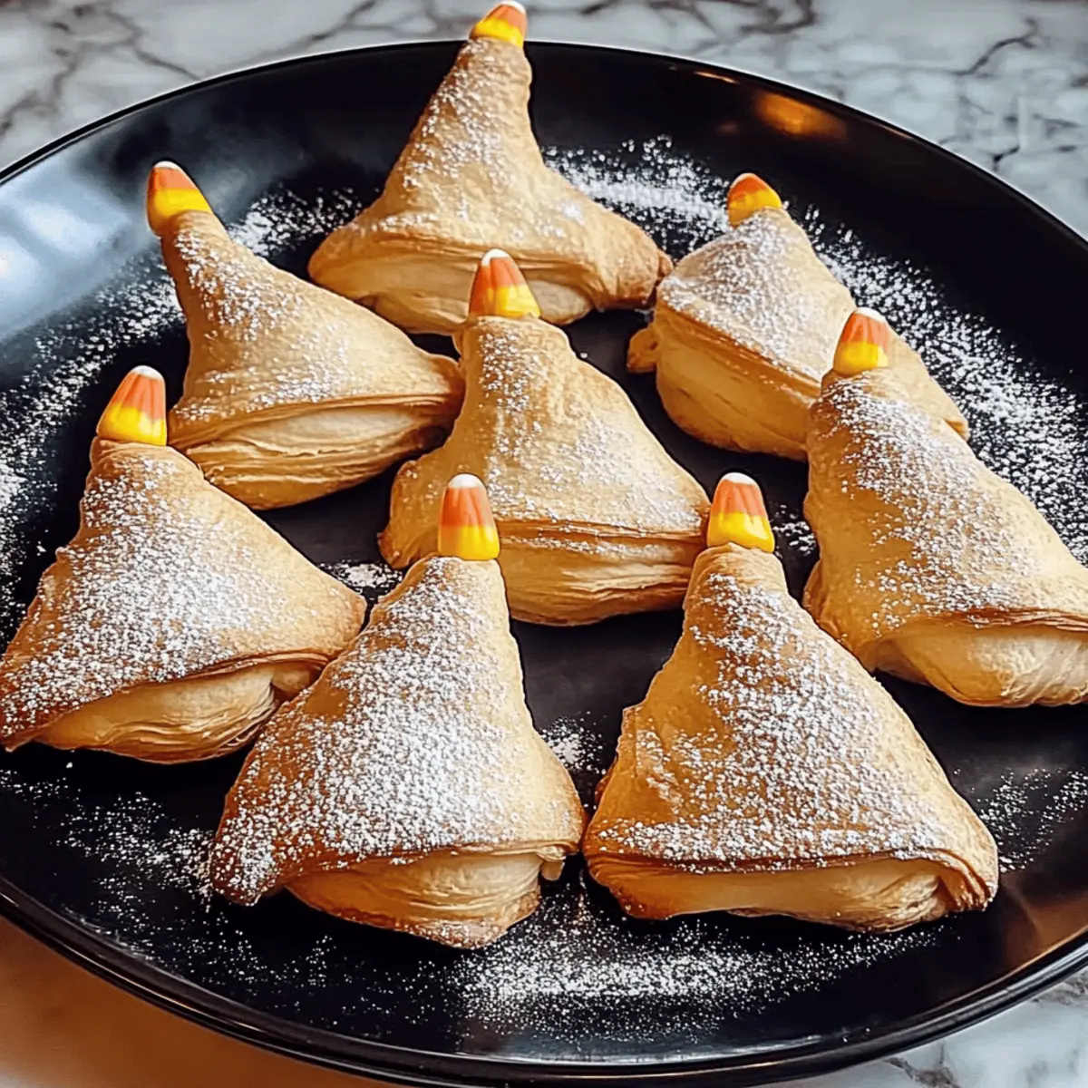 As the leaves turn and the air grows crisp, I can’t help but embrace the delightful chaos of Halloween. This year, I’m excited to whip up some Spooky Crescent Roll Witch Hats—easy Halloween treats that not only look wickedly fun but are also a breeze to prepare. Imagine flaky, buttery dough wrapped around gooey chocolate, bringing smiles to both kids and adults alike. The best part? These whimsical snacks can be ready in under 30 minutes, making them a fantastic addition to last-minute spooky gatherings or a fun family project. With endless filling possibilities—candy corn, mini marshmallows, or even peanut butter—the creativity is as boundless as your Halloween spirit! Want to join me in conjuring up these festive delights? Let’s get rolling! Why Are These Witch Hats So Special? Flaky Perfection: The crescent roll dough provides a wonderfully flaky texture that kids and adults will love. Customizable Fillings: Choose from chocolate, candy corn, or even mini marshmallows for a treat that fits everyone’s taste. Quick and Easy: With a prep and bake time under 30 minutes, you can whip these up in no time—ideal for spontaneous Halloween parties! Fun for Kids: Get the whole family involved in the fun! This recipe is easy enough for children to help make. Adorable Presentation: The finished product—golden brown witch hats topped with vibrant candy corn—is sure to impress your guests. Pair them with delicious snacks like Baked Parmesan Zucchini for a festive spread! Spooky Crescent Roll Witch Hats Ingredients For the Dough Crescent Roll Dough – Provides flaky, buttery goodness that’s the perfect base for these spooky treats. For the Filling Semi-Sweet Chocolate Chips – Adds a rich, gooey texture; feel free to substitute with mini marshmallows for a whimsical spin. Peanut Butter – A creamy option that adds a delightful twist; pairs wonderfully with candy corn! For the Topping Candy Corn – Festive and sweet; this classic Halloween candy adds a touch of vibrant color. Edible Glitter or Colorful Sprinkles – Use these instead of candy corn for a magical sprinkle of fun! For Baking Cooking Spray – Prevents sticking on the baking sheet; alternatively, line with parchment paper for easy removal. Dive into these Spooky Crescent Roll Witch Hats and let your creativity flourish as you try out the endless filling possibilities! Step‑by‑Step Instructions for Spooky Crescent Roll Witch Hats – Easy Halloween Treats Step 1: Preheat the Oven Begin by preheating your oven to 375°F (190°C). While the oven heats up, prepare a baking sheet by lining it with parchment paper or spraying it lightly with cooking spray. This step is vital to ensure your Spooky Crescent Roll Witch Hats don’t stick to the surface during baking, allowing for easy removal once they’re done! Step 2: Prepare the Dough Unroll the crescent roll dough and separate it into individual triangles. Take a moment to gently pinch any seams together to ensure they hold their shape during baking. The dough should feel soft and pliable; this will create the flaky base for your witch hats. Lay the triangles out on a clean surface for easy filling! Step 3: Fill the Dough At the wide end of each prepared triangle, place a small mound of chocolate chips or your chosen filling. Be careful not to overfill, as you want to ensure the hat can close properly. If you’re feeling adventurous, try adding mini marshmallows or peanut butter for a fun twist! This step is where your creativity can shine. Step 4: Shape the Hats Starting from the wide end, carefully roll each triangle towards the tip, forming the shape of a witch hat. Make sure to pinch the seams tightly to prevent any filling from leaking out during baking. To ensure a whimsical appearance, bend the tip slightly after rolling it up to give it that characteristic hat look. Step 5: Bake Arrange your rolled witch hats on the prepared baking sheet, making sure to leave some space between each one. Place them in the preheated oven and bake for 12-15 minutes, or until they are golden brown and puffed up. Keep an eye on them as they bake; the perfect witch hats should be lightly browned and smell absolutely delightful! Step 6: Garnish Once they are finished baking, remove the Spooky Crescent Roll Witch Hats from the oven and let them cool for a few minutes. While they’re still warm, gently press a piece of candy corn onto the tip of each hat. This will not only secure the candy but also add a fun pop of color to your treat! Step 7: Serve After garnishing, allow your witch hats to cool further before displaying them on a festive platter. These delightful treats are best served warm but can also be enjoyed at room temperature. Share them at your Halloween gathering and watch as these Spooky Crescent Roll Witch Hats become the star of the evening! Expert Tips for Spooky Crescent Roll Witch Hats Pinch It Tight: Ensure you pinch the seams of the dough tightly after shaping the hats to prevent any filling leaks while baking. Mind the Time: Keep a close eye on your treats in the oven; overbaking can lead to dry witch hats instead of those flaky, buttery delights we desire. Warm Toppings: For better adhesion, allow your witch hats to cool slightly before adding candy corn on top while still warm. This will ensure they stay in place! Creative Fillings: Feel free to experiment with fillings! Mini marshmallows or a mix of peanut butter can add whimsical twists to these spooky crescent roll witch hats. Storage Success: If you have leftovers, store them in an airtight container at room temperature for up to two days to maintain freshness and flavor. Make Ahead Options These Spooky Crescent Roll Witch Hats are perfect for meal prep enthusiasts! You can assemble the dough-filled triangles up to 24 hours in advance by rolling them and placing them on a baking sheet lined with parchment paper. Cover the sheet tightly with plastic wrap and refrigerate to keep them fresh. When you’