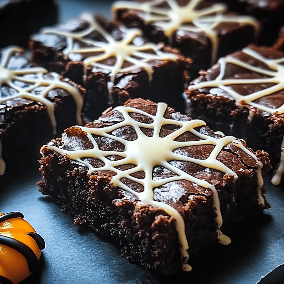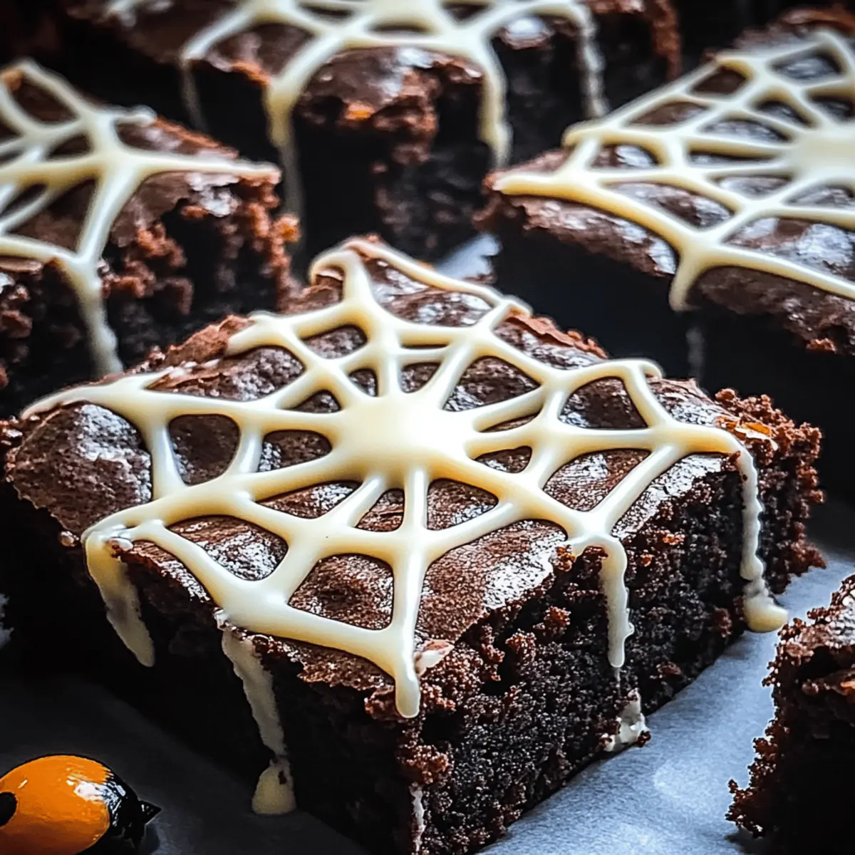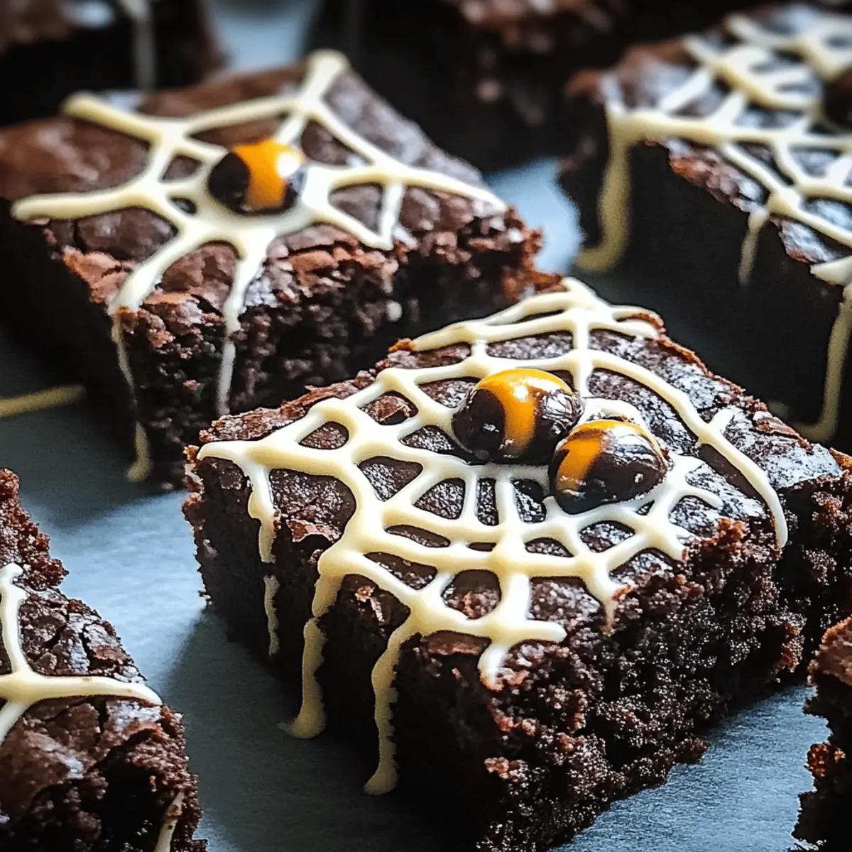 With the rustle of leaves and the crispness in the air, Halloween brings with it the thrilling chance to create something delightfully spooky. These Spider Web Halloween Brownies add a whimsical twist to your festive gatherings, combining the rich indulgence of fudgy brownies with a playful white chocolate topping that transforms each bite into a perfect treat. Not only are they impressively easy to whip up, making them a quick solution for unexpected guests, but they’re also bound to be a crowd favorite at any Halloween party. Just imagine your friends’ faces lighting up as they encounter these charming, spooky desserts! Ready to whip up a batch that will wow your guests? Let’s dive into this spooky delight! Why are these brownies a Halloween hit? Spooktacular Presentation: The playful spider web design elevates your dessert’s appearance, making it a standout centerpiece. Decadent Flavor: Each bite delivers a rich, fudgy chocolate experience that chocolate lovers will adore. Quick and Easy: This recipe simplifies baking with straightforward steps, perfect for those busy party prep days. Customizable Fun: Mix in your favorite nuts or festive sprinkles to make each batch uniquely yours. Crowd-Pleasing Treat: Ideal for both kids and adults, these brownies are sure to bring smiles at any gathering. If you’re also looking for more fun desserts, check out our Baked Ziti for a savory option! Spooky Spider Web Halloween Brownies Ingredients For the Brownie Batter • Unsweetened Cocoa Powder – Provides the deep chocolate flavor; substitute with dark cocoa powder for a richer taste. • Granulated Sugar – Sweetens the brownies, contributing to their fudgy texture; can replace with brown sugar for a hint of caramel flavor. • Unsalted Butter – Adds richness and moisture; use coconut oil for a dairy-free option. • Large Eggs – Binds the mixture and contributes to the structure; no direct substitute, but flax eggs can be used for a vegan version. • All-Purpose Flour – Gives structure to the brownies; for gluten-free brownies, swap with a gluten-free all-purpose blend. For the Spider Web Decoration • White Chocolate Chips – Used for the spider web decoration; substitute with white candy melts for a similar look. • Black Gel Food Coloring (optional) – Used to color the white chocolate; omit for a classic look. Unleash your creativity with this Spooky Spider Web Halloween Brownies recipe that’s sure to wow your guests! Step‑by‑Step Instructions for Spooky Spider Web Halloween Brownies Recipe to Wow Guests Step 1: Preheat and Prepare Begin by preheating your oven to 350°F (175°C). While it heats, grab a 9×9-inch baking pan and either grease it lightly with butter or line it with parchment paper for easy removal later. This step ensures your Spooky Spider Web Halloween Brownies release seamlessly after baking. Step 2: Melt the Base In a medium saucepan, combine unsalted butter, granulated sugar, and unsweetened cocoa powder. Heat on low, stirring continuously until the mixture is smooth and fully melted, about 5 minutes. Remove from heat and let it cool slightly. This is the base of your brownies, where the chocolatey magic begins. Step 3: Add the Eggs Once your brownie mixture has cooled, whisk in large eggs one at a time, ensuring each egg is fully incorporated before adding the next. This should take about 2-3 minutes, and you’ll notice a glossy texture forming. This mixture adds moisture and richness to your spooky brownies! Step 4: Mix the Dry Ingredients In a separate bowl, sift together all-purpose flour and a pinch of salt to combine. Gently fold this flour mixture into the chocolate batter using a spatula or wooden spoon until just mixed; avoid overmixing to keep your Spooky Spider Web Halloween Brownies fudgy and tender. This process is key to achieving a rich texture. Step 5: Bake the Brownies Pour the brownie batter into the prepared baking pan, spreading it evenly with a spatula. Bake in the preheated oven for 25-30 minutes. To check for doneness, insert a toothpick in the center—there should be a few moist crumbs clinging to it, indicating perfection in the fudgy center. Step 6: Cool and Prepare the Decoration Once baked, remove the brownies from the oven and allow them to cool in the pan on a wire rack for about 30 minutes. This essential cooling period ensures the brownies firm up, making them easier to cut later on. Prepare your white chocolate decoration during this time. Step 7: Melt the White Chocolate In a microwave-safe bowl, melt the white chocolate chips in 30-second increments, stirring between each until smooth. If you’re using black gel food coloring, mix it in now to achieve that classic spooky look. This melted chocolate is what will create the enchanting spider web on your brownies. Step 8: Create the Spider Web Once cooled, drizzle the melted white chocolate over the brownies in a circular pattern, starting from the center and working your way outward. Then, use a toothpick or knife to gently drag through the lines to create a web effect. This final touch transforms your Spooky Spider Web Halloween Brownies into an eye-catching dessert. Step 9: Set and Serve Allow the chocolate web to set for about 15-20 minutes at room temperature. Once set, cut the brownies into squares with a sharp knife and serve. These delightful treats are perfect for sharing at Halloween parties or gatherings, ensuring everyone oohs and aahs with delight! Make Ahead Options These Spooky Spider Web Halloween Brownies are perfect for meal prep, allowing you to save time on those busy days when Halloween festivities are just around the corner! You can prepare the brownie batter and store it in the refrigerator for up to 24 hours before baking. When you’re ready to bake, simply pour the batter into the prepared pan and follow the baking instructions. Additionally, you can fully bake the brownies up to 3 days in advance and keep them in an airtight contai