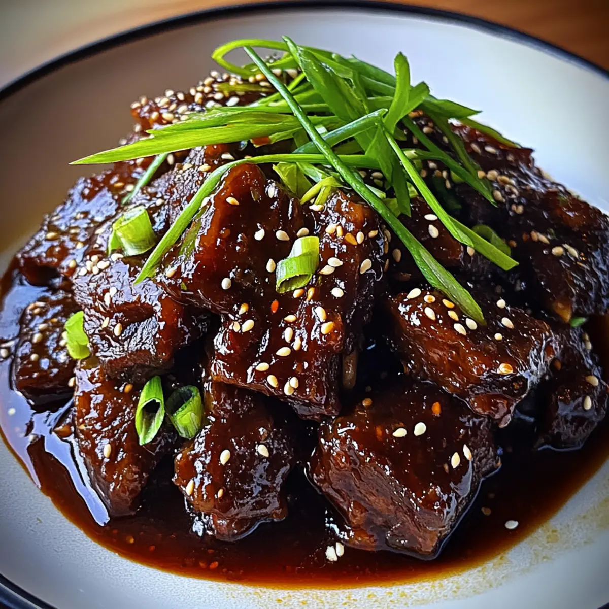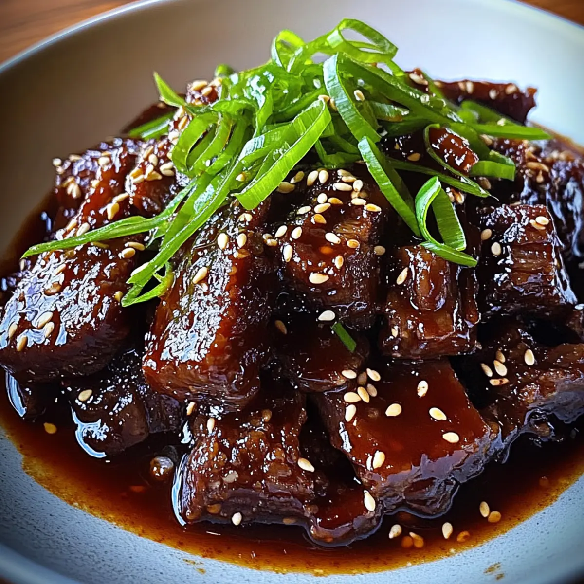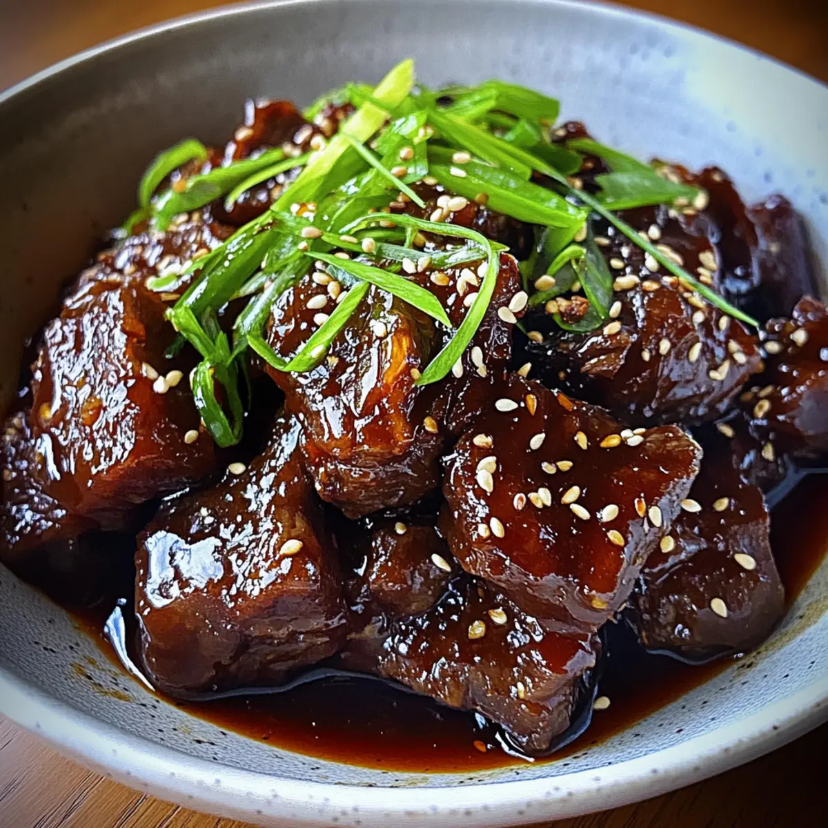 As I opened my slow cooker, the mouthwatering aroma of garlic and ginger wrapped around me like a warm hug, instantly making my kitchen feel like a cozy haven. This Asian Sticky BBQ Chuck Roast is a delightful masterpiece that promises not just a meal but an experience, transforming a marbled cut of meat into an irresistible centerpiece for any gathering. The beauty of this recipe lies in its perfect balance of bold umami flavors from soy sauce and the sweet tanginess of hoisin and honey, ensuring that every bite is a savory celebration. Plus, it’s a slow-cooker wonder—ideal for busy days when you crave comforting, homemade food without the fuss. Who wouldn’t want a hearty dish that all the family will love? Ready to dive into the details and make your own sticky BBQ magic? Why Is This Sticky BBQ Chuck Roast Amazing? Flavor Explosion: The sweet and savory marriage of hoisin, soy, and honey creates a profound depth of flavor that will have everyone asking for seconds. Slow-Cooker Friendly: Set it and forget it! Perfect for busy days, this recipe lets you enjoy more family time without sacrificing great taste. Tender Perfection: Made with chuck roast, the slow cooking makes the meat fall-apart tender—an absolute crowd-pleaser. Versatile Serving Options: Pair it with steamed jasmine rice, or toss it in sliders with fresh vegetables for a twist that suits any occasion. Make-Ahead Magic: Feel free to prepare this dish ahead of time; it stores beautifully in the fridge, making weeknight dining a breeze. This dish is bound to impress, so grab your slow cooker and let’s make some sticky BBQ magic! Sticky BBQ Chuck Roast Ingredients For the Marinade Soy Sauce – The umami backbone that adds rich, savory depth to your Sticky BBQ Chuck Roast. Hoisin Sauce – This thick paste brings sweetness and a unique Asian BBQ tang that enhances the glaze. Honey – A natural sweetener that helps achieve the perfect sticky glaze on your roast. Rice Vinegar – Adds a bright acidity that balances the richness of the meat and sauce. Brown Sugar – Imparts deep sweetness and contributes to the beautiful caramelized finish. Garlic (minced) – Provides aromatic warmth that intensifies the flavor of the marinade. Ginger (minced) – Offers zest and helps to tenderize the meat for optimal texture. Sesame Oil – Infuses the marinade with a nutty aroma that complements the overall flavor profile. Chili Flakes (optional) – A dash of heat that rounds out the savory flavor, taking your dish to the next level. For the Glaze Cornstarch – Helps thicken the cooking liquid into a glossy glaze that clings perfectly to the meat. For Garnishing Sesame Seeds – Adds a crunchy texture and a delightful finish to your Sticky BBQ Chuck Roast. Green Onions – Provides a fresh, mild onion flavor and a pop of color to your dish. Prepare these ingredients, and get ready to create a Sticky BBQ Chuck Roast that your family will savor! Step‑by‑Step Instructions for Sticky BBQ Chuck Roast Step 1: Prepare the Chuck Roast Begin by placing your chuck roast in a slow cooker or a large oven-safe pot. This hearty cut is perfect for our Sticky BBQ Chuck Roast. Pat the meat dry with paper towels to help seasonings adhere better, and set it aside while you prepare the marinade. Step 2: Mix the Marinade In a mixing bowl, combine the soy sauce, hoisin sauce, honey, rice vinegar, brown sugar, minced garlic, minced ginger, sesame oil, and optional chili flakes. Whisk everything together until the mixture is smooth and well incorporated. This aromatic marinade will infuse the meat with amazing flavors. Step 3: Coat the Roast Pour the prepared marinade evenly over the chuck roast, making sure every inch of the meat is coated. The glossy sauce will enhance the tenderness of the roast as it cooks. If needed, use a spoon or spatula to ensure the marinade seeps into all nooks and crannies, sealing in the delicious flavors. Step 4: Cook Low and Slow Cover the slow cooker or pot with a lid, and cook the Sticky BBQ Chuck Roast on low for 6–8 hours. If you prefer using an oven, preheat it to 325°F (160°C) and place the pot in the oven, cooking for 3–4 hours. The roast is done when it becomes tender and easily shreds with a fork. Step 5: Rest the Roast Once cooked, carefully remove the roast from the cooker and transfer it to a cutting board. Tent it with aluminum foil to keep it warm while it rests for about 15–20 minutes. This resting period allows the juices to redistribute, making every bite succulent and flavorful. Step 6: Prepare the Glaze While the roast is resting, pour the remaining cooking liquid into a saucepan. Bring it to a simmer over medium heat, scraping any browned bits from the bottom of the pan. These bits add depth and flavor to your glaze, making your Sticky BBQ Chuck Roast even more irresistible. Step 7: Thicken the Sauce In a small bowl, mix cornstarch with a little water to make a slurry. Slowly stir this into the simmering cooking liquid, cooking until the sauce thickens into a glossy glaze—about 2–3 minutes. This rich glaze will beautifully coat the roast and elevate your dish. Step 8: Glaze the Roast Slice the rested chuck roast against the grain into tender pieces. Drizzle the thickened glaze generously over the beef, ensuring each slice is beautifully coated. This step gives your Sticky BBQ Chuck Roast a captivating shine and a burst of flavor that will delight everyone at the table. Step 9: Garnish and Serve For a delightful finishing touch, sprinkle sesame seeds and chopped green onions over the glazed roast. This adds a lovely crunch and a pop of color. Serve your Sticky BBQ Chuck Roast with steamed jasmine rice or in sliders for a delicious meal that everyone will love. Sticky BBQ Chuck Roast Variations Unlock a world of creative tweaks to make this Sticky BBQ Chuck Roast truly your own! Beef Swap: Use brisket or beef shoulder for different textures. Both cuts offer delightful flavor and are equall