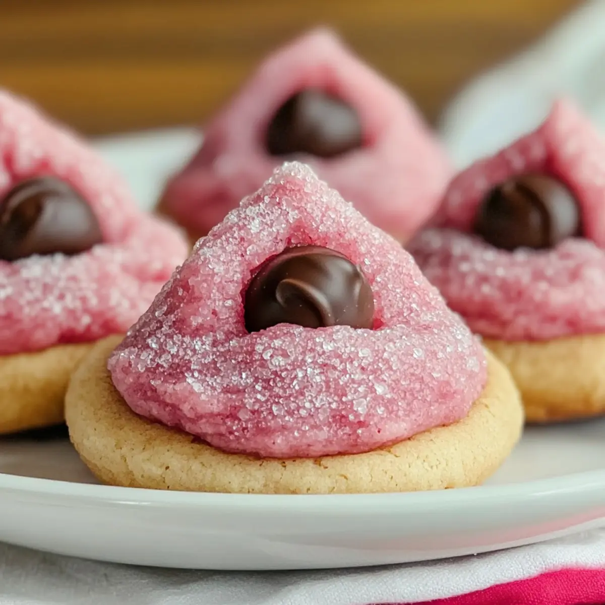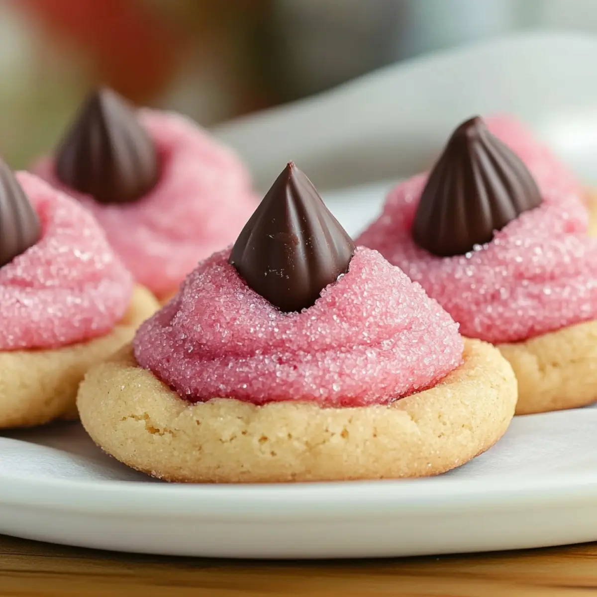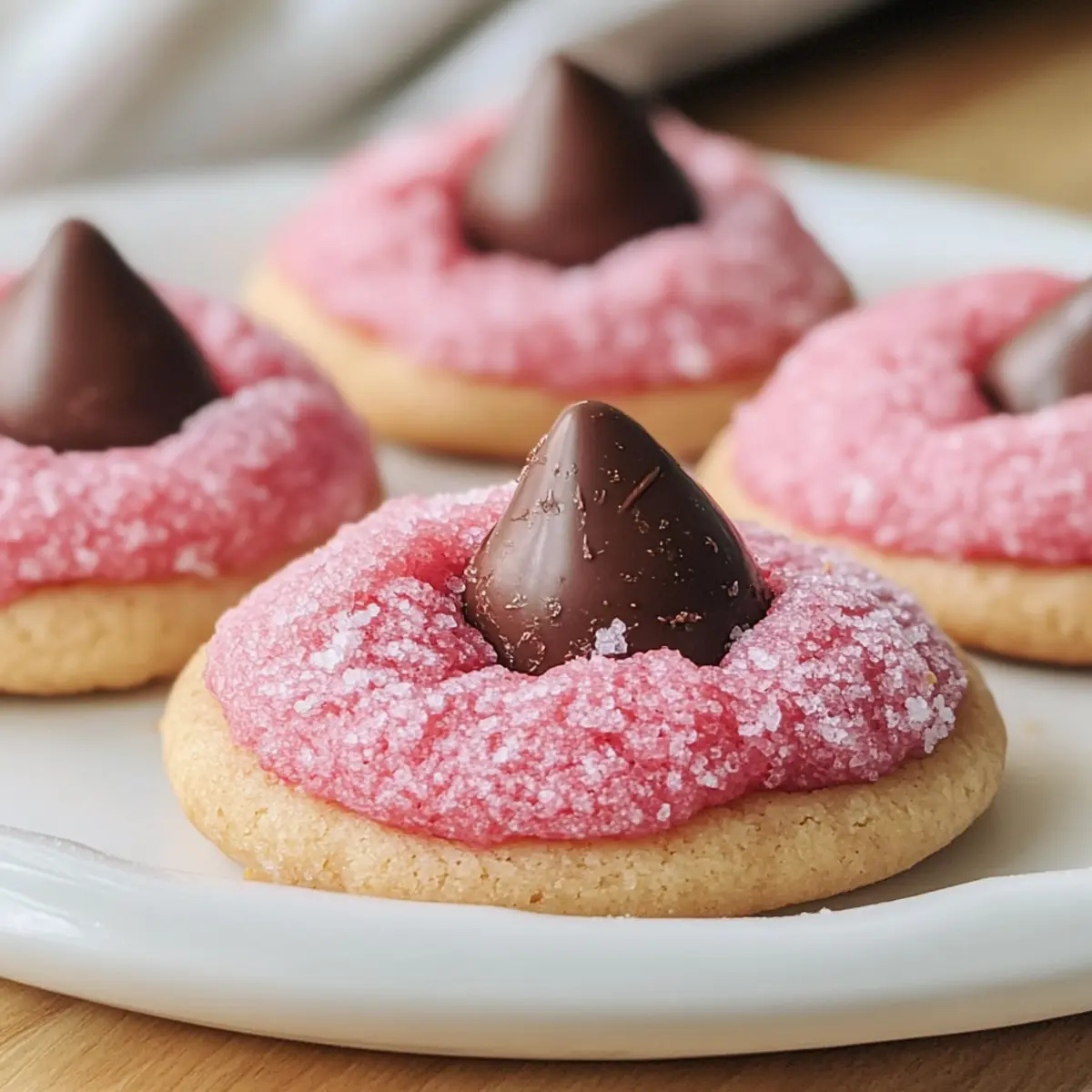 These Strawberry Kiss Cookies are soft, buttery treasures with a delightful chocolate center, perfect for any occasion.