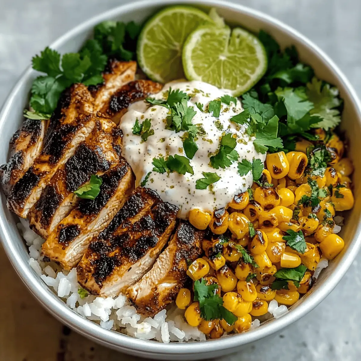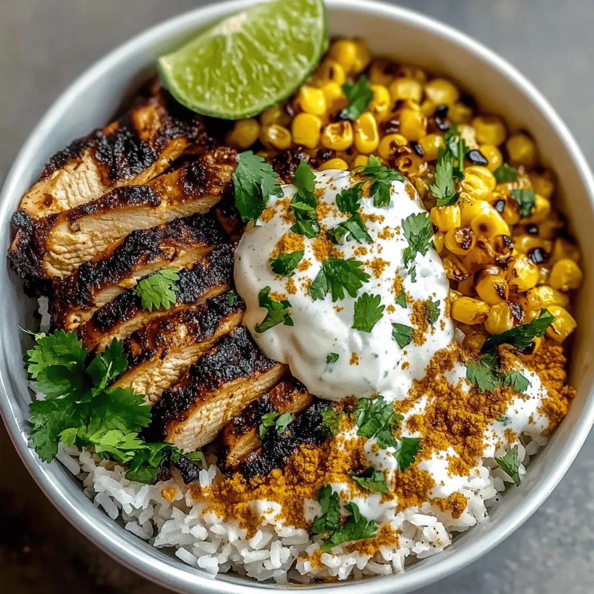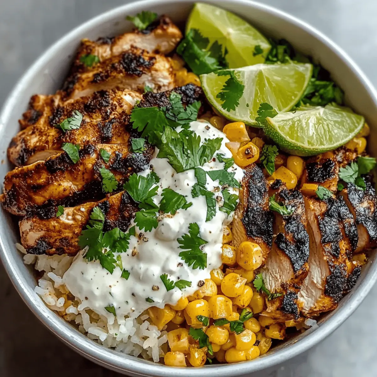 As I stood in my kitchen, the enticing smell of grilled corn wafted through the air, instantly transporting me to vibrant street markets in Mexico. This Smoky Mexican Street Corn Chicken Rice Bowl captures that spirit with its rich, smoky flavors and fresh ingredients, making it a delightful weeknight dinner that embraces the essence of comfort food. With juicy chicken and a customizable array of toppings, this dish is not only protein-rich but also incredibly satisfying. It’s the perfect remedy for anyone tired of fast food, and what’s more, it comes together in a flash! Curious about how to create this deliciously hearty bowl that’s sure to impress? Let’s dive into the recipe! Why is this bowl a must-try? Vibrant flavors come together in this bowl to create a rich tapestry of taste that’s like a culinary hug. Quick to prepare, you can whip it up in under 30 minutes, making it perfect for busy weeknights. Customizable toppings allow everyone to build their ideal dish—whether you prefer extra spice or a creamy finish. Nutritious and filling, this Street Corn Chicken Rice Bowl packs a protein punch, ensuring you’ll feel satisfied and energized. For added flair, serve with fresh sides like pico de gallo or enjoy paired with a refreshing drink like horchata. Once you take a bite, you’ll never look at boring meals the same way again! Street Corn Chicken Rice Bowl Ingredients For the Chicken Boneless Chicken Thighs – A hearty protein base; chicken breasts are a leaner substitute. Olive Oil – Moisturizes the chicken while marinating; feel free to use any neutral oil. Chili Powder – Adds depth and warmth; adjust to control spice levels. Cumin – Offers an earthy flavor; coriander can be used for a different twist. Paprika – Infuses a subtle sweetness; smoked paprika enhances the smokiness. Garlic (Minced) – Elevates the overall flavor; fresh garlic is best for a robust taste. Lime (Juice & Zest) – Provides essential acidity and freshness, crucial for marinating the chicken. For the Rice Jasmine Rice – The fragrant, fluffy carbohydrate base; swap for brown rice for added fiber. Chicken Broth – Adds rich flavor while cooking the rice; water is a lighter alternative. Fresh Cilantro – Introduces brightness; can be omitted for a non-herbal touch. For the Corn Mixture Fresh Corn – Offers the signature street corn flavor; frozen corn is a quick shortcut. Mayonnaise – Binds the corn for creaminess; Greek yogurt is a healthier option. Cotija Cheese – Adds a salty, creamy contrast; feta cheese works well as a substitute. Mexican Crema or Sour Cream – Enhances the dish’s creaminess; mix sour cream with buttermilk for a light version. For Final Seasoning Salt & Pepper – Essential for seasoning; adjust to fit your taste preferences. Each bite of this Street Corn Chicken Rice Bowl promises warmth and joy, merging flavors and textures that will awaken your culinary senses! Step‑by‑Step Instructions for Street Corn Chicken Rice Bowl Step 1: Marinate the Chicken In a mixing bowl, combine the boneless chicken thighs with olive oil, chili powder, cumin, paprika, minced garlic, lime juice, salt, and pepper. Massage the marinade into the chicken to ensure even coverage and flavor. Let the chicken marinate for at least 30 minutes at room temperature, or up to 2 hours in the refrigerator for deeper flavor. Step 2: Cook the Rice While the chicken marinates, rinse the jasmine rice under cold water until the water runs clear to remove excess starch. In a medium saucepan, cook the rice using chicken broth according to package instructions, usually around 15-20 minutes. Once done, fluff the rice with a fork and stir in freshly chopped cilantro and lime zest for added brightness. Step 3: Grill the Corn Preheat your grill or a large skillet over medium-high heat. Carefully place fresh corn on the grill or in the skillet, charring the corn until it develops a deep golden color and smoky aroma, about 10-12 minutes. Be sure to rotate the corn occasionally. Once done, remove from heat and let cool slightly before cutting the kernels off the cob. Step 4: Prepare the Corn Topping In a large bowl, combine the charred corn kernels with mayonnaise and half of the chili powder. Mix thoroughly until the corn is nicely coated. This creamy topping adds a delightful, smoky flavor to your Street Corn Chicken Rice Bowl. Set this mixture aside while you continue with the chicken. Step 5: Grill the Chicken Preheat your grill or skillet again to a medium-high heat. Grill the marinated chicken thighs for about 6-7 minutes per side, or until the internal temperature reaches 165°F and the chicken has a nice char. Allow the chicken to rest for about 5 minutes after grilling, then slice it into bite-sized pieces to prepare for assembly. Step 6: Make the Lime Crema In a small bowl, whisk together Mexican crema or sour cream with lime juice and a pinch of salt. This zesty lime crema will enhance the flavors of your Street Corn Chicken Rice Bowl, providing a creamy and tangy contrast. Set it aside until you’re ready to assemble the bowls. Step 7: Assemble the Bowls Start by layering the cooked jasmine rice as the base in each serving bowl. Top with sliced grilled chicken, a generous scoop of the corn mixture, and crumbled cotija cheese for extra richness. Finish with a sprinkle of fresh cilantro and a drizzle of lime crema over the top. Serve immediately with lime wedges for that perfect zing! Storage Tips for Street Corn Chicken Rice Bowl Fridge: Store each component separately in airtight containers for up to 4 days to maintain freshness and prevent sogginess. Freezer: For longer storage, freeze the grilled chicken and corn mixture separately in freezer-safe bags for up to 3 months. Reheating: Thaw in the refrigerator overnight before reheating. Warm chicken and corn in a skillet or microwave until heated through, ensuring it stays juicy before serving. Assembly: For the best flavor and texture,