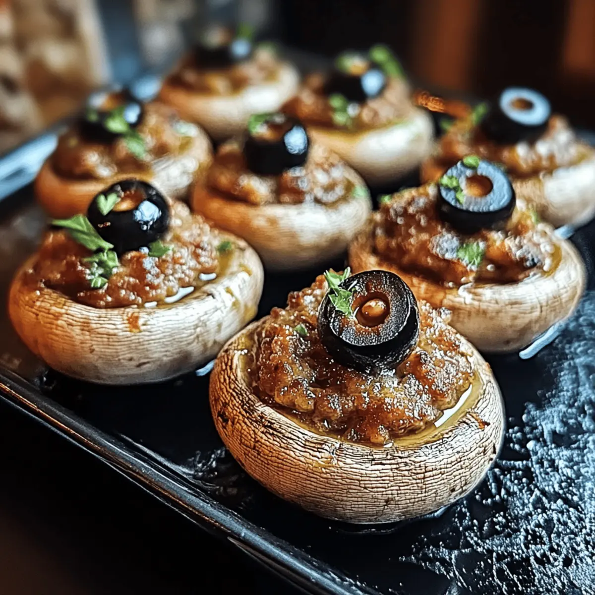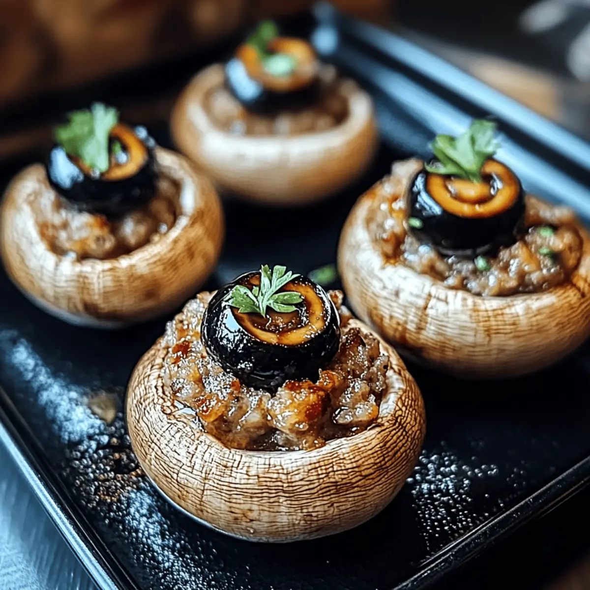 To complete the spooky effect, press a small pitted olive into the center of each stuffed mushroom cap to serve as the “pupil.” This playful touch enhances the appearance of your Stuffed Mushroom Eyeballs, making them both creepy and captivating as they bake to perfection.