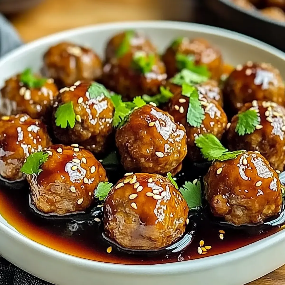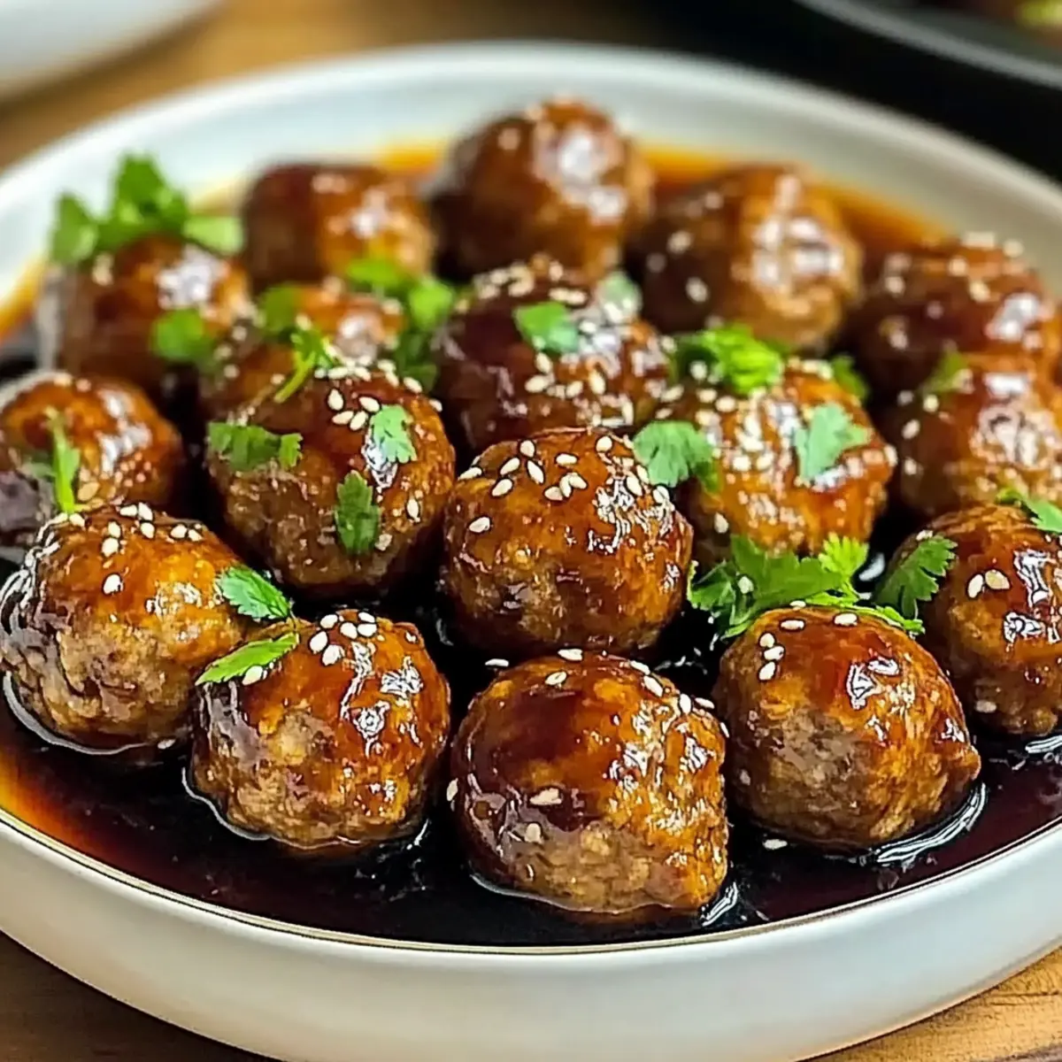 7. Sprinkle sesame seeds and fresh cilantro over the meatballs before serving.