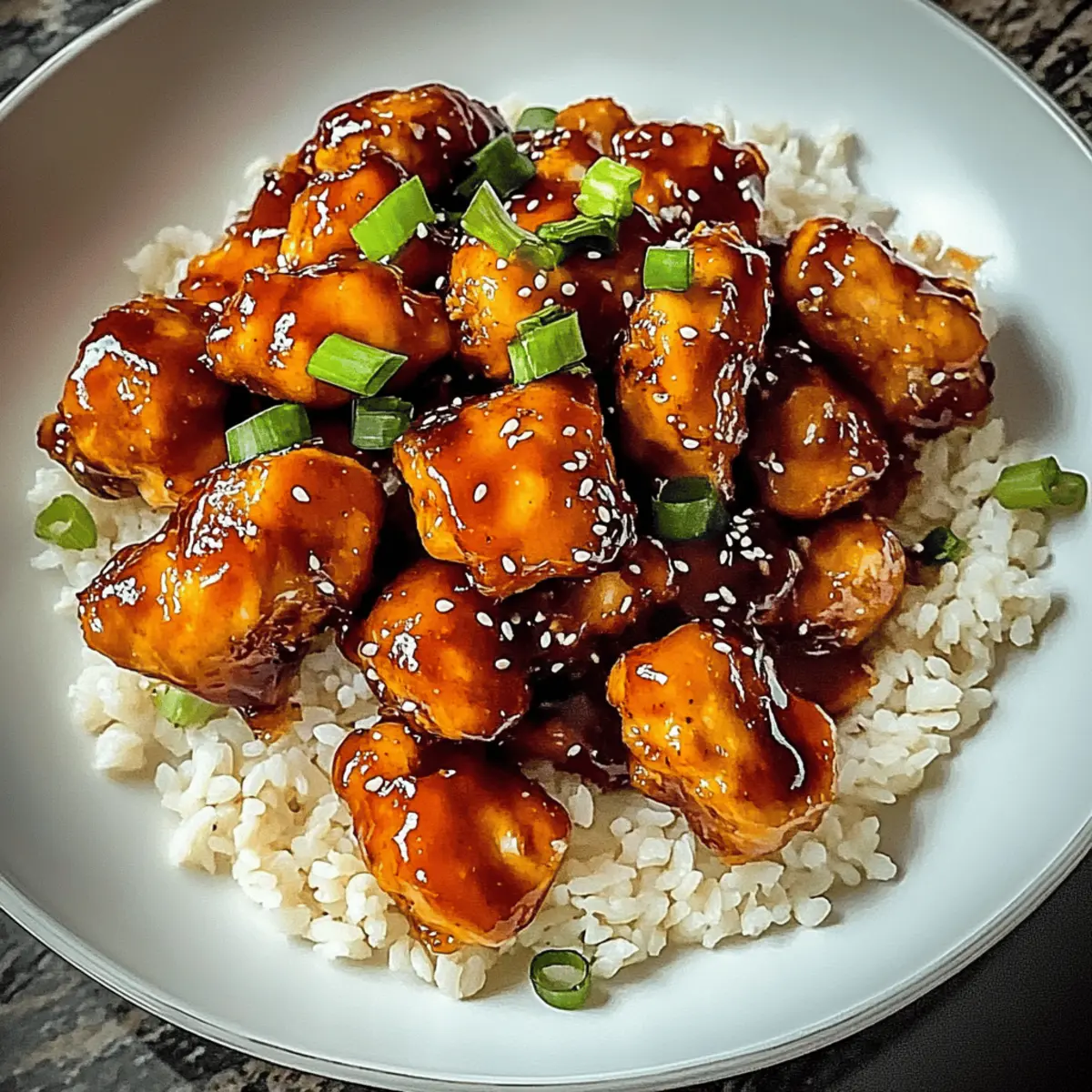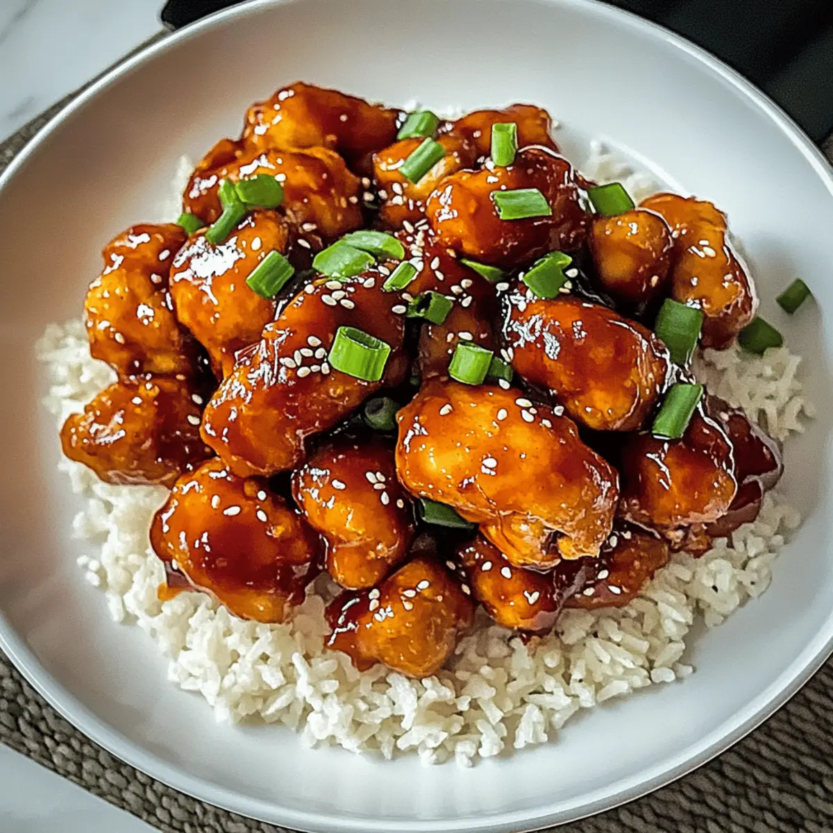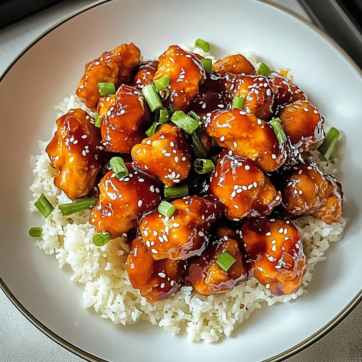 As I stood in my kitchen, the allure of sweet and spicy aromas wrapped around me, I realized my weeknight dinner dilemma had a delicious solution: Sweet Chili Chicken. This dish tantalizes with each tender bite, blending juicy chicken with a vibrant sweet chili sauce that dances on the palate. Not only is it a breeze to whip up, but it also offers remarkable versatility—you can easily transform it into a vegetarian delight by swapping in tofu! Perfect for evenings when time is tight, this recipe guarantees a crowd-pleaser on the dinner table. Pair it with fluffy rice or noodles, and watch as smiles light up around you. Ready to discover how to master this easy weeknight dinner? Let’s dive in! Why is Sweet Chili Chicken a Must-Try? Irresistible Flavor: Sweet Chili Chicken brings together a perfect blend of sweetness and heat, ensuring a delightful dining experience. Quick to Prepare: With just a few simple steps, you can have an impressive dish ready in no time, making it ideal for busy evenings. Versatile Base: Not only does this recipe shine with chicken, but you can easily swap in tofu for a tasty vegetarian option, appealing to everyone at the table. Crowd-Pleaser: Serve this dish at gatherings or family dinners, and watch as it garners compliments from guests eager for seconds. Colorful Presentation: The vibrant colors from the sauce and garnishes make it not just delicious but visually enticing too! Pair it with Garlic Butter Chicken or Garlic Parmesan Chicken for a full meal experience. Sweet Chili Chicken Ingredients • Let’s gather the essentials for your delicious Sweet Chili Chicken! For the Chicken Chicken Breast – 1.5 to 2 pounds of boneless, skinless chicken breasts will ensure tenderness and ease in cooking. Cornstarch – ¼ cup helps achieve that irresistibly crispy texture on the chicken. For the Sauce Sweet Chili Sauce – 1 cup (store-bought or homemade) adds the perfect balance of sweetness and heat. Soy Sauce – 2 tablespoons introduces a savory depth of flavor that enhances the dish. Garlic – 4 cloves, minced for that aromatic punch that elevates the overall taste. Ginger – 1 tablespoon, minced lends warmth and a touch of spiciness to the sauce. For Cooking Vegetable Oil – 2 tablespoons are necessary for frying the chicken to golden perfection. Salt and Pepper – To taste, essential for seasoning to enhance the flavors. For Garnish Green Onions – 2, sliced to add fresh flavor and a colorful touch to your dish. Sesame Seeds – 1 tablespoon adds a delightful nutty crunch for the finishing touch. For Serving Rice or Noodles – Pair with jasmine rice, basmati rice, or your favorite noodles, making your Sweet Chili Chicken shine as a complete meal! With these ingredients, you’ll have everything needed to create a sensational Sweet Chili Chicken that’s sure to impress! Step‑by‑Step Instructions for Sweet Chili Chicken Step 1: Marinate the Chicken Begin by cutting the chicken breast into bite-sized pieces to ensure even cooking. In a mixing bowl, combine the sweet chili sauce, soy sauce, minced garlic, and ginger, creating a fragrant marinade. Add the chicken pieces, coating them well. Cover the bowl and allow the chicken to marinate in the refrigerator for at least 30 minutes to absorb the flavors, but if time permits, let it sit for up to 2 hours. Step 2: Prepare Cornstarch Coating While the chicken marinates, prepare the cornstarch coating for a crispy finish. In a separate bowl, season the cornstarch with salt and pepper. This simple blend will give the chicken an extra layer of flavor as well as that satisfying crunch. Set this seasoned cornstarch aside for the next step. Step 3: Coat the Chicken After marinating, remove the chicken from the fridge and drain any excess marinade. Carefully dredge each piece in the seasoned cornstarch, ensuring they are fully coated. This step is crucial for achieving the perfect crispy texture on your Sweet Chili Chicken. Place the coated chicken on a plate while you get ready for cooking. Step 4: Cook Chicken Heat 2 tablespoons of vegetable oil in a large skillet or wok over medium-high heat until it shimmers. Once hot, add the coated chicken pieces in a single layer without overcrowding the pan. Cook the chicken for about 6-8 minutes, turning occasionally, until golden brown and cooked through, with an internal temperature of 165°F. The chicken should have a crispy exterior and look deliciously golden. Step 5: Serve Once the chicken is perfectly cooked, transfer it to a serving plate. Garnish the Sweet Chili Chicken with sliced green onions and a sprinkle of sesame seeds for an added crunch and fresh flavor. Serve the dish hot alongside steamed jasmine or basmati rice, or toss it with your favorite noodles, and enjoy this delightful meal! Sweet Chili Chicken Variations Feel free to get creative and make this Sweet Chili Chicken your own with these delightful twists! Vegetarian Swap: Replace chicken with tofu or tempeh for a hearty vegetarian option. Just make sure to marinate for the same amount of time to absorb all the flavors. Add Veggies: Toss in colorful veggies like bell peppers, snap peas, or broccoli during cooking. They’ll add a vibrant crunch, making your dish even more enticing! Sauce Adjustments: For a less sweet flavor, reduce the sweet chili sauce and swap in a splash of rice vinegar. This balances out the heat beautifully! Heat Things Up: Love a spicy kick? Add sliced jalapeños or a dash of sriracha to the marinade to crank up the heat. It’s perfect for spice enthusiasts! Crispy Coating Upgrade: Add a blend of crushed cornflakes or panko breadcrumbs to your cornstarch coating for an extra crispy finish. Your chicken will have an addictive crunch that everyone will love! Fancy Garnish: Top your dish with fresh herbs, such as cilantro or basil, alongside green onions. This elevates the presentation and adds a pop of brightness. Noodle Twist: Instead of serving with rice, toss the cooked