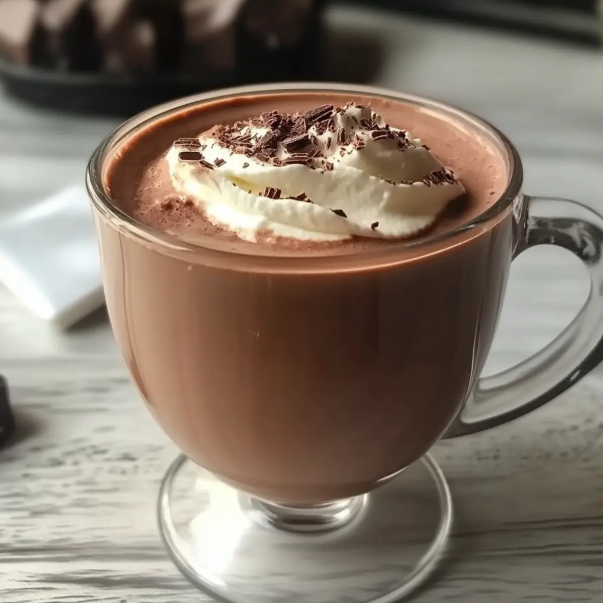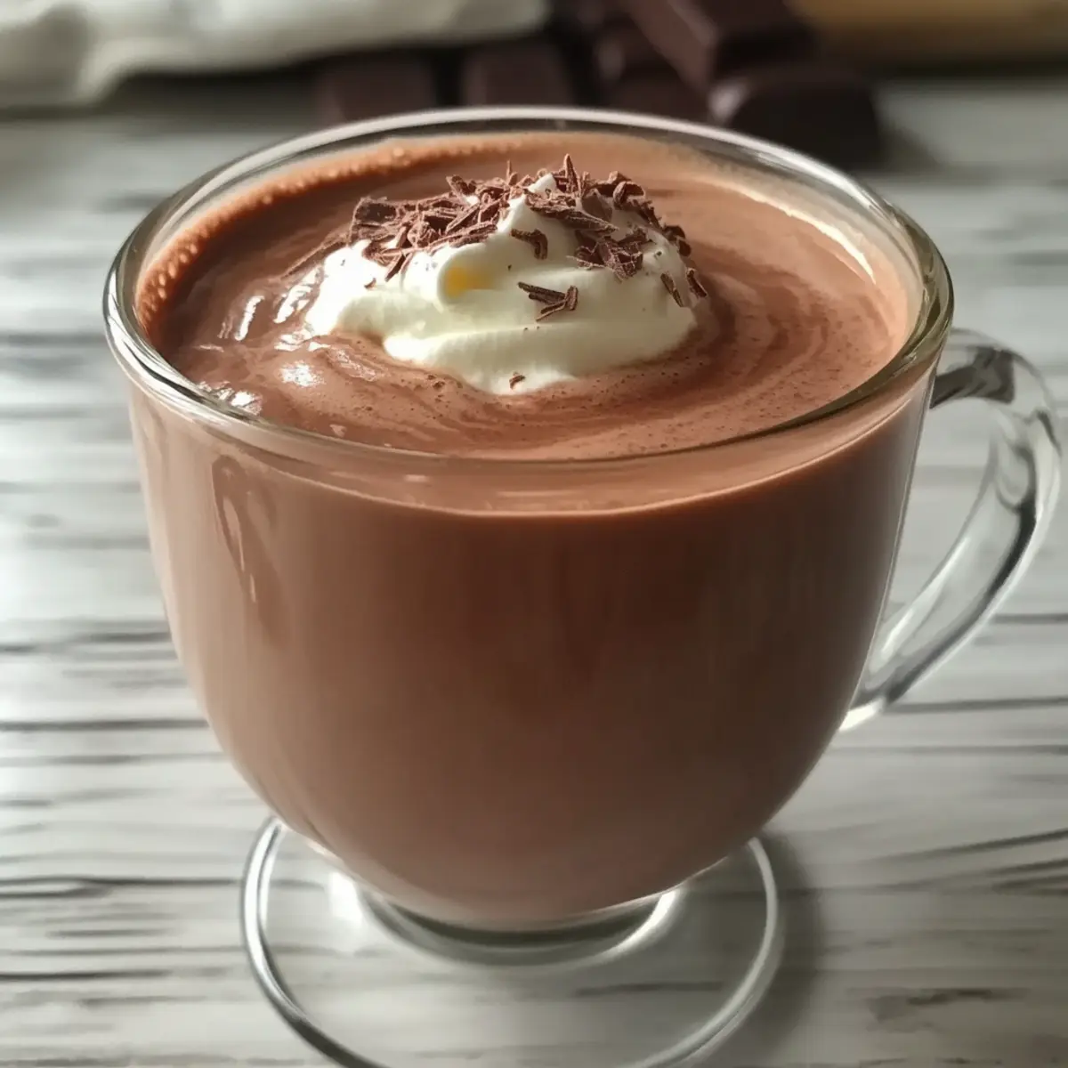 7. Pour into mugs and top with whipped cream, chocolate shavings, or a dusting of cocoa powder.