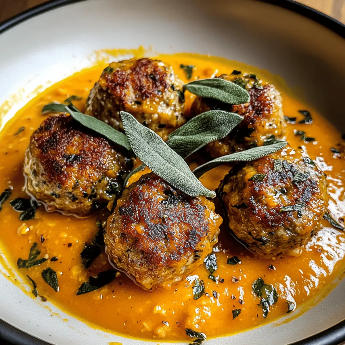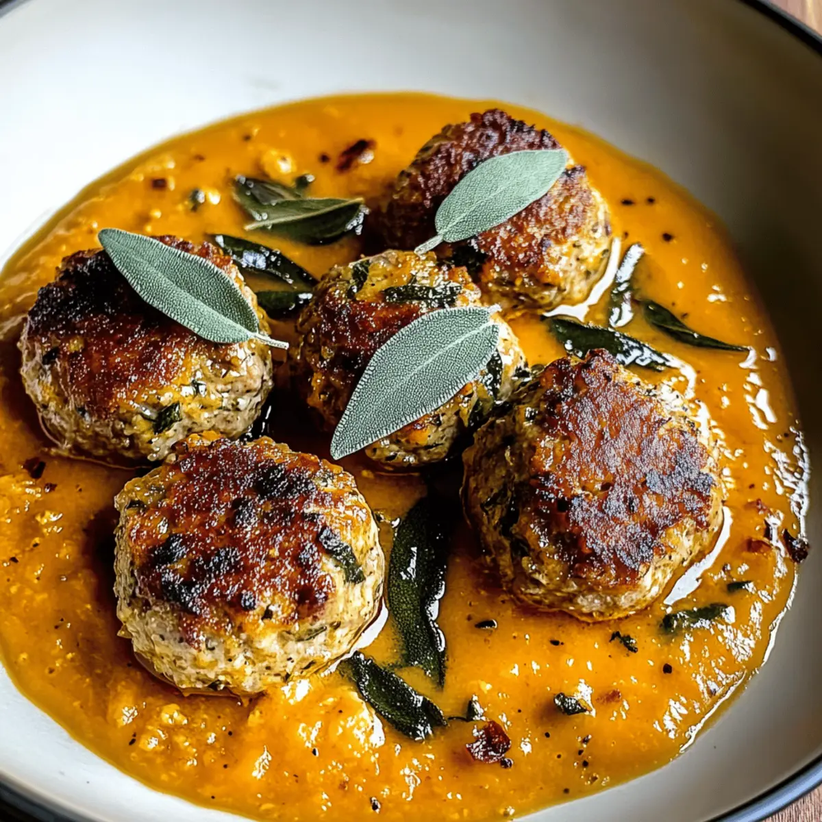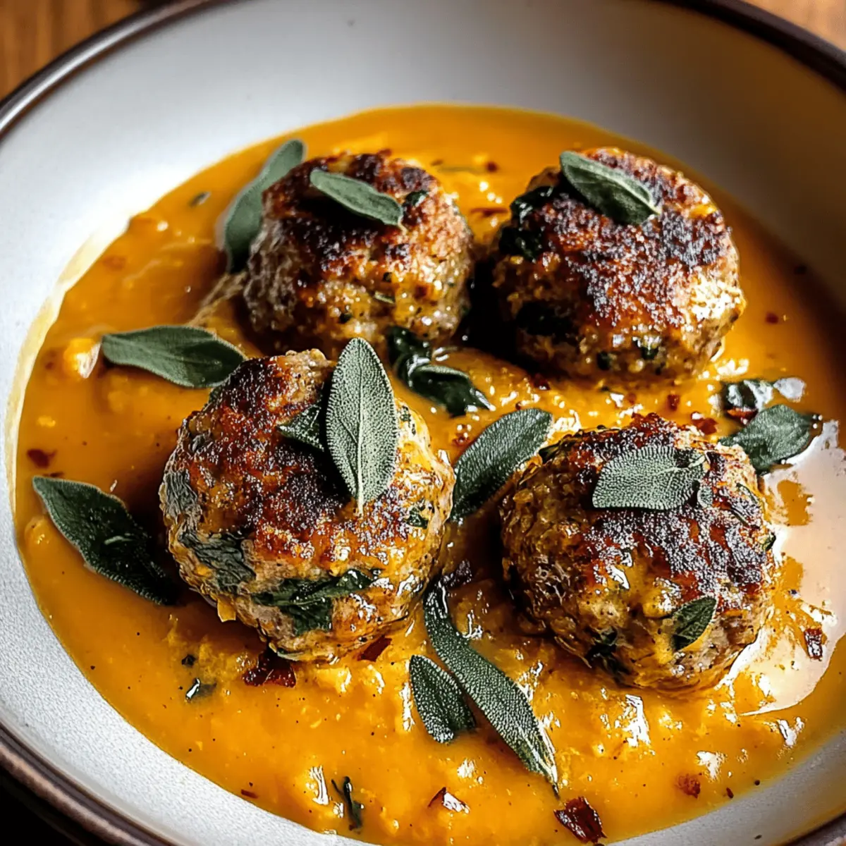 As autumn kisses us with its crisp embrace, I find myself craving dishes that wrap me in warmth and nostalgia. Today, I’m excited to share my favorite comfort food: tender turkey meatballs in a dreamy pumpkin sage sauce. This easy recipe not only comes together in a snap but also celebrates the rich, seasonal flavors that make fall so delightful. With each bite, you’ll experience the savory harmony of garlic, the earthiness of sage, and the subtle sweetness of pumpkin. It’s a dish that delights both the palate and the soul, perfect for cozy dinners or meal prepping for the week ahead. Curious how to create this comforting masterpiece? Let’s dive into the recipe! Why try Turkey Meatballs in Pumpkin Sauce? Comforting Warmth: As the days grow cooler, there’s nothing quite like a dish that embodies the essence of fall with its cozy flavors. Quick and Easy: This recipe comes together swiftly, allowing you to whip up a satisfying meal with minimal fuss. Creamy Delight: The luscious pumpkin sage sauce clings to the meatballs beautifully, creating a dish that’s rich yet balanced. Versatile Serving Options: Whether over pasta, rice, or even sweet potato mash, it offers options to suit any craving. Healthy Twist: Packed with protein from the turkey and the nutritional benefits of pumpkin, it’s a guilt-free indulgence you can savor. Jump into this culinary delight and experience the joy that comes with each bite! Want more fall-inspired ideas? Check out my recipe for Spiced Pumpkin Pancakes that perfectly complement your cozy evenings or try these delightful Turkey Cranberry Pinwheels for a seasonal twist on appetizers! Turkey Meatballs in Pumpkin Sage Sauce Ingredients Here’s everything you need to make these delightful turkey meatballs in pumpkin sage sauce! For the Meatballs Ground Turkey – Provides a lean protein base for the meatballs, contributing to a lighter meal. Breadcrumbs – Helps bind the meatballs; opt for gluten-free breadcrumbs for a gluten-free version. Parmesan Cheese – Adds a layer of richness; can be skipped for a dairy-free alternative or replaced with nutritional yeast. Egg – Acts as a binder for texture; flaxseed meal mixed with water can be a vegan substitute for this role. Garlic (minced) – Infuses both meatballs and sauce with robust flavor; fresh garlic is best for taste. Dried Oregano – Enhances aroma; fresh oregano works wonderfully too if you have it. Salt and Black Pepper – Essential for seasoning; adjust to suit your taste. Olive Oil – Necessary for frying the meatballs, giving them a golden brown crust; avocado oil is a nice substitute. For the Pumpkin Sage Sauce Canned Pumpkin Puree – The star of the sauce, offering creaminess and that seasonal flavor; avoid pumpkin pie filling due to added sugar and spices. Chicken Broth – Incorporates depth of flavor into the sauce; vegetable broth is perfect for a vegetarian option. Heavy Cream – Contributes to the sauce’s smooth texture; can swap it for coconut milk for a lighter touch. Butter – Used for sautéing aromatics to boost richness; replace with dairy-free butter for a vegan option. Onion – Provides a sweet and savory base when sautéed; yellow or white onions are recommended. Nutmeg – Elevates the pumpkin flavor; a dash of ground cinnamon can be added for extra warmth. Fresh Sage – Adds an earthy note; dried sage can work too but remember to use it in smaller amounts. Dive into your cooking adventure and relish the wonderful flavors of this turkey meatballs in pumpkin sage sauce! Step‑by‑Step Instructions for Turkey Meatballs in Pumpkin Sage Sauce Step 1: Combine the Meatball Mixture In a large mixing bowl, blend together ground turkey, breadcrumbs, Parmesan cheese, egg, minced garlic, dried oregano, salt, and black pepper. Use your hands for a gentle mix to avoid overworking the meat, which helps to keep the turkey meatballs tender. Aim for an even consistency and let it sit for about 5 minutes to absorb flavors. Step 2: Shape the Meatballs With your hands, form the mixture into small meatballs, about 1 inch in diameter. Place them on a plate or a baking sheet lined with parchment paper, ensuring they’re spaced apart. This step should take around 10 minutes, allowing you to create about 20 meatballs that will cook evenly in the skillet. Step 3: Brown the Meatballs Heat 2 tablespoons of olive oil in a skillet over medium heat. Once the oil shimmers, carefully add the meatballs in batches, making sure not to overcrowd the skillet. Sear the meatballs for 5–7 minutes, turning them occasionally until they are golden brown on all sides. Once browned, transfer them to a plate and set aside. Step 4: Sauté Aromatics In the same skillet, reduce heat to medium-low and add 2 tablespoons of butter. Once melted, add the chopped onion and sauté for 3-4 minutes until softened and translucent. This will create a flavorful base for your pumpkin sage sauce. Stir occasionally with a wooden spoon, making sure not to let the onions caramelize too much. Step 5: Add Garlic and Pumpkin Next, stir in 2 minced garlic cloves and sauté for 1 minute until fragrant. Immediately add the canned pumpkin puree, chicken broth, and heavy cream to the skillet. Use a whisk to combine everything smoothly, stirring continuously to avoid lumps. Increase heat slightly to bring the mixture to a gentle simmer, around 3–5 minutes. Step 6: Season the Sauce Once your sauce is simmering, add a teaspoon of chopped fresh sage and a pinch of nutmeg, seasoning it with salt and pepper to taste. Stir well to integrate the herbs into the sauce, enhancing the rich flavors of the turkey meatballs in pumpkin sage sauce. Allow it to simmer for another 2–3 minutes, letting the flavors meld beautifully. Step 7: Simmer the Meatballs in Sauce Return the browned meatballs back into the skillet, ensuring they are mostly submerged in the creamy pumpkin sage sauce. Cover the skillet with a lid and let the meatballs simmer