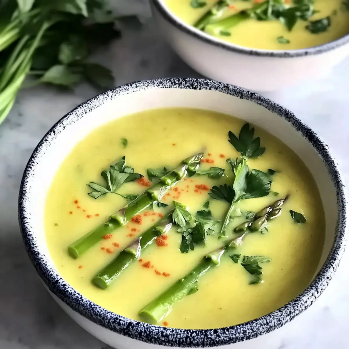 As spring sweeps in, there’s nothing quite like the lush green allure of fresh asparagus to elevate our meals. This Vegan Cream of Asparagus Soup is a delightful way to celebrate the season, with its rich and velvety texture that warms the soul. Packed with nutritional goodness, it’s a simple yet elegant dish that comes together in just 30 minutes. The fragrant blend of onions, garlic, and a splash of white wine creates a symphony of flavors, making it a stellar addition to your repertoire. Not to mention, this soup is both vegan and gluten-free, perfect for those looking for a comforting homemade meal without any fuss. Ready to dive into a bowlful of sunshine? Let’s get cooking! Why is Vegan Cream of Asparagus Soup Perfect? Richness in every spoon: This soup boasts a creamy texture that delivers comforting warmth, making it an ideal choice for chilly spring evenings. Nutrient-rich ingredients: Featuring fresh asparagus and white beans, this soup is both health-conscious and satisfying, packed with vitamins and protein. Quick and easy: Whipping up this delicious dish takes only 30 minutes, perfect for busy weeknights or impromptu gatherings. Versatile pairing: Enjoy it on its own or serve with a delectable Vegan Grilled Cheese for a complete meal experience. Customizable flavors: Add your twist by throwing in nutritional yeast for a cheesy kick or chickpeas for extra texture! This soup is here to please everyone at the table. Vegan Cream of Asparagus Soup Ingredients For the Soup Base Oil – Provides fat for sautéing; substitute with any neutral oil like vegetable or olive oil. Onion – Adds sweetness and depth of flavor when sautéed; choose a yellow or white onion for the best results. Garlic – Enhances aroma and adds a savory punch; fresh garlic delivers the most vibrant flavor. Celery – Contributes freshness and a delightful crunchy texture. Carrot – Provides natural sweetness and bright color to the soup. White Wine – Adds aroma and a touch of acidity; feel free to omit for a non-alcoholic version. For the Green Goodness Fresh Asparagus – The star of the dish, adding visual appeal and essential nutrients; remember to trim the ends before use. For the Creaminess Unsweetened Almond Milk – Creates a luxuriously creamy texture; swap this for unsweetened oat milk for a nut-free option. White Beans – Contributes creaminess and boosts nutrition with protein and fiber; cannellini or butter beans work wonderfully. For Seasoning Vegetable Stock Cube – Builds a savory base; ensure it’s gluten-free if necessary. Salt & Pepper – Essential for enhancing flavor; adjust to your personal taste preferences. For Garnish Fresh Parsley – A sprinkle at the end for a touch of freshness and added color to your lovely bowl of soup! This vegan cream of asparagus soup is not just a recipe; it’s a warm hug in a bowl, perfect for celebrating seasonal flavors! Step‑by‑Step Instructions for Vegan Cream of Asparagus Soup Step 1: Sauté the Aromatics In a large saucepan, heat 2 tablespoons of oil over medium heat. Once shimmering, add a finely chopped onion, 2 minced garlic cloves, 2 diced celery stalks, and 1 diced carrot. Sauté these for about 10 minutes, stirring occasionally, until the vegetables are soft and translucent, filling your kitchen with a warm aroma. Step 2: Deglaze the Pan Pour in ½ cup of white wine, stirring gently to combine. Allow the mixture to simmer for about 3-4 minutes, or until the wine reduces and most of the liquid evaporates. This step is vital as it adds depth and flavor to your vegan cream of asparagus soup. Step 3: Add the Asparagus Chop 1 pound of fresh asparagus into bite-sized pieces, and add it to the pan. Next, pour in 2 cups of unsweetened almond milk, 1 can of drained and rinsed white beans, a vegetable stock cube, salt, and pepper. Stir everything together, bringing the mixture to a gentle boil. Step 4: Simmer for Tenderness Reduce the heat to low and let the soup simmer uncovered for about 10 minutes. As it simmers, the asparagus should become bright green and tender, giving off its fragrant scent. This is when the flavors meld together beautifully, creating a comforting base for your soup. Step 5: Blend to Perfection Using an immersion blender, puree the soup directly in the saucepan until it reaches a smooth and creamy consistency. If you prefer a lighter texture, gradually add more water while blending to achieve your desired thickness. Take a moment to savor the fresh, vibrant green color of your vegan cream of asparagus soup. Step 6: Adjust Seasoning and Serve Taste the soup and adjust the seasoning with extra salt and pepper if needed. For an appealing presentation, ladle the vibrant soup into bowls and garnish with freshly chopped parsley. Your delicious vegan cream of asparagus soup is now ready to warm your heart and delight your palate! Make Ahead Options These Vegan Cream of Asparagus Soup preparations are ideal for busy weeknights and make meal planning a breeze! You can chop the vegetables (onion, celery, carrot, and asparagus) and store them in the refrigerator up to 3 days in advance, ensuring they’re ready to go when you’re set to cook. Additionally, you can make the soup base (steps 1-5) and refrigerate it for up to 24 hours before serving. When you’re ready to enjoy your soup, simply reheat it on the stove, blend again if needed for creaminess, and garnish with fresh parsley. This way, your soup will remain just as delicious and comforting as when freshly made! How to Store and Freeze Vegan Cream of Asparagus Soup Fridge: Store leftover soup in an airtight container for up to 3 days. Allow it to cool completely before sealing for maximum freshness. Freezer: For longer storage, freeze your vegan cream of asparagus soup in freezer-safe containers for up to 3 months. Leave some space at the top for expansion. Reheating: When ready to enjoy, thaw overnight in the fridge or use the microwave. Reheat gently on the stov
