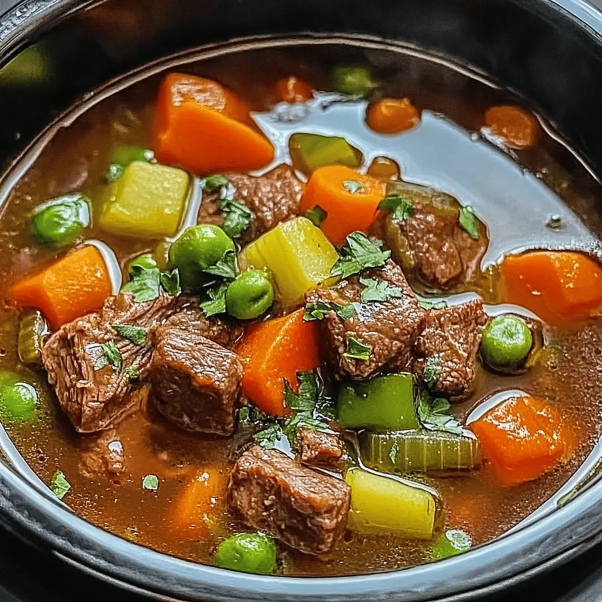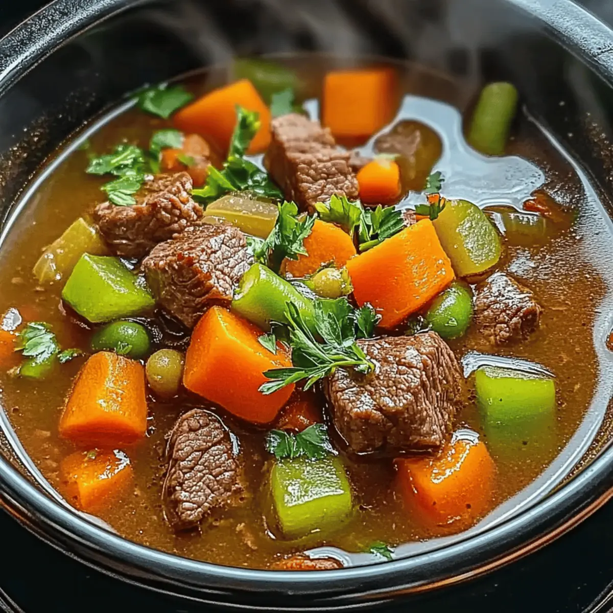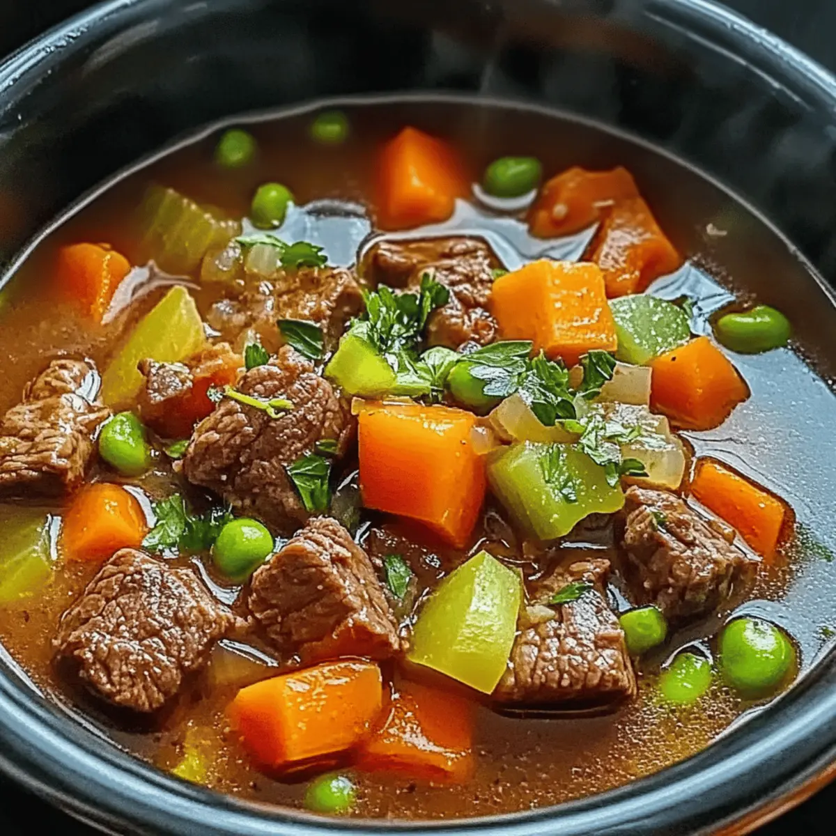 As the chilly evening air wraps around your home, there’s nothing more comforting than a steaming bowl of Easy Vegetable Beef Soup. With its rich, savory broth filled with tender beef and a colorful medley of vegetables, this hearty dish feels like a warm hug on a plate. Whipping it up is a breeze, making it an ideal weeknight dinner that won’t break the bank. Not only is this vegetable beef soup an excellent way to utilize whatever veggies you have on hand, but it’s also a nostalgic favorite that brings family and friends together. Curious about how easy it is to create this soul-warming meal? Let’s dive into the details! Why is This Vegetable Beef Soup Amazing? Comforting Warmth: This Easy Vegetable Beef Soup embraces you with every spoonful. It’s the perfect response to chilly nights, comforting both body and soul. Customizable Goodness: Use whatever veggies you have on hand! Throw in some bell peppers or switch to a vegetable broth for a vegetarian option, making it incredibly versatile. Time-Saving Delight: With just a bit of prep, this hearty dish simmers effortlessly while you relax. It’s perfect for busy weekdays—similar in ease to my Garlic Roasted Vegetables but with the heartiness of warming soup. Family Favorite: Gather your loved ones around the table, as this dish brings warmth and joy to every meal. Each comforting bite will remind you of home. Budget-Friendly: Save on groceries while enjoying rich flavors. It’s a delicious way to stretch your dollar without compromising on taste. Rich, Savory Flavor: The harmony of beef, herbs, and vegetables creates a robust experience, reminiscent of classic Slow Cooker Beef dishes, but with the added charm of a homemade touch. Vegetable Beef Soup Ingredients • Everything you need for comfort! For the Soup Beef Stew Meat – Provides protein and heartiness; substitute with chuck or brisket for tenderness. Olive Oil – Used for browning the beef; can substitute with vegetable oil if desired. Onion – Adds sweetness and depth to flavor; use yellow or white onions for best results. Garlic – For aromatic flavor; fresh is best for taste, but garlic powder will work in a pinch. Carrots – Contributes sweetness and vibrant color; substitute with parsnips for variation. Celery – Adds crunch and flavor to the mix; bell peppers can be used for a different twist. Beef Broth – Forms the soup’s base, enhancing richness; vegetable broth can replace for a vegetarian option. Water – Balances the broth; use more beef broth for a deeper flavor. Diced Tomatoes (canned) – Provides acidity and texture; fresh tomatoes can be used in season for a fresh taste. Green Beans – Adds freshness and texture; peas or corn make great substitutes if you prefer. Dried Thyme and Oregano – Infuse herbal notes into the soup; fresh herbs offer intensified flavor. Bay Leaves – Enhance aroma while cooking; remember to remove before serving. Salt and Pepper – Essential for seasoning; adjust to taste for the perfect flavor. Corn (fresh or frozen) – Adds sweetness and texture; canned corn is an option if fresh or frozen aren’t available. Potatoes – Contributes to heartiness and absorbs flavors; Yukon gold or russet potatoes yield the best results. Step‑by‑Step Instructions for Easy Vegetable Beef Soup Step 1: Brown the Beef Begin by heating 2 tablespoons of olive oil in a large pot over medium-high heat. Once the oil shimmers, add 1 pound of beef stew meat in a single layer. Sear the meat for about 5-7 minutes, turning occasionally until it’s browned on all sides. This step is crucial for developing rich flavors that will elevate your vegetable beef soup. Step 2: Sauté Aromatics Next, add 1 diced onion and 2 minced cloves of garlic to the pot with the beef. Stir frequently and sauté for 2-3 minutes until the onion becomes translucent and fragrant. This will create a flavorful base for your soup, allowing the aromas of the garlic to mingle beautifully with the browned beef. Step 3: Add Vegetables Now it’s time to add color and nutrition! Stir in 2 chopped carrots and 2 stalks of diced celery. Cook the mixture for an additional 3 minutes, stirring occasionally, until the vegetables begin to soften. This brief sautéing enhances their natural sweetness, making your easy vegetable beef soup even more delicious. Step 4: Add Liquids Pour in 4 cups of beef broth and 1 cup of water, scraping the bottom of the pot to release any flavorful bits adhering to the surface. This adds depth to the soup’s rich flavor. Stir well to combine all the ingredients, and prepare for the next layers of flavor in your hearty vegetable beef soup! Step 5: Incorporate Tomatoes Add a 14.5-ounce can of diced tomatoes, 1 cup of green beans (fresh or frozen), 1 teaspoon of dried thyme, 1 teaspoon of dried oregano, and 2 bay leaves. Stir well to incorporate all the ingredients, allowing the soup to be infused with herbal aromas and vibrant colors. The tomatoes will provide acidity and richness to the broth. Step 6: Simmer the Soup Bring the soup to a rolling boil over medium-high heat, then reduce to low, cover the pot, and let it simmer for 45 minutes. This slow cooking will allow all the flavors to meld together beautifully, as the beef becomes tender and the vegetables infuse the broth with their essence. Step 7: Add Potatoes and Corn In the final 15 minutes of cooking, carefully stir in 2 diced potatoes and 1 cup of corn (fresh, frozen, or canned). Allow the soup to simmer uncovered until the potatoes are tender, about 10-15 minutes. The potatoes will absorb some of the flavors while adding heartiness to your easy vegetable beef soup. Step 8: Season Taste your soup and adjust the seasoning with salt and pepper according to your preference. Remove the bay leaves before serving to avoid any tough bites. This final touch ensures that your vegetable beef soup is perfectly balanced and bursting with flavor. Step 9: Serve Hot Ladle the soup into warm bowls, 