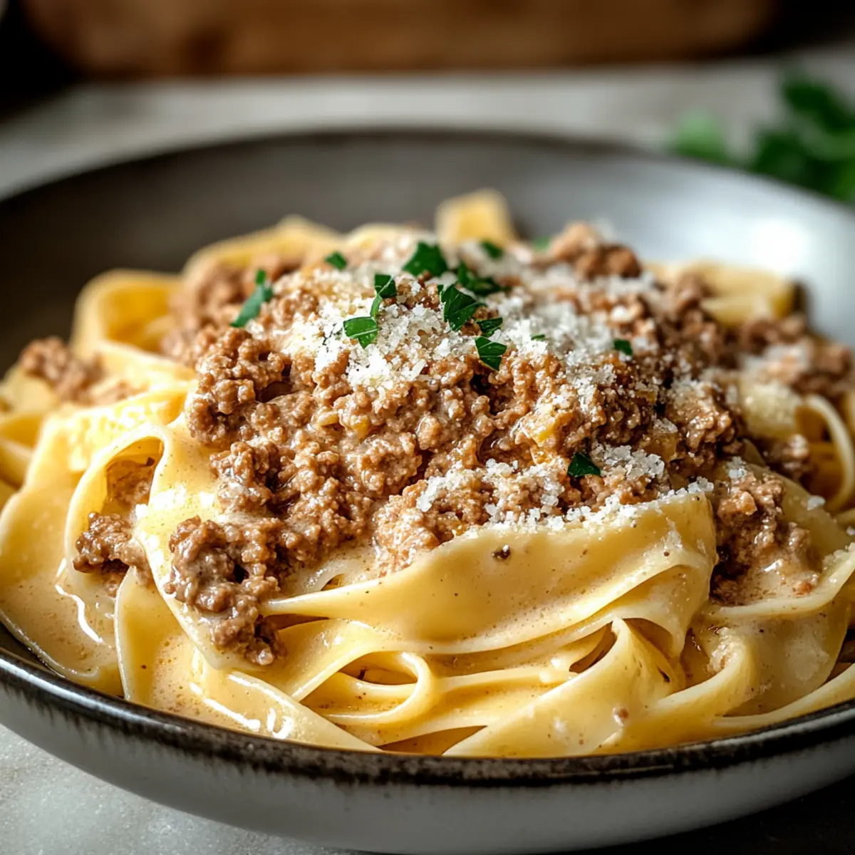 As I stood in my kitchen, the aroma of sizzling onions and garlic filled the air, instantly transporting me to a cozy trattoria tucked away in the heart of Italy. That’s when I decided to make my Creamy White Bolognese Sauce—a comforting twist on the traditional recipe that ditches the tomatoes for a velvety, rich experience. This delightful sauce offers a luxurious alternative that’s not only quick to prepare, but it also transforms any pasta dish into a hearty meal perfect for family gatherings or cozy nights in. Imagine a plate of wide fettuccine, blanketed in this creamy goodness, showcasing how comforting homemade food can be. Are you ready to dive into this decadent recipe that might just steal the show at your next dinner? Why is White Bolognese Sauce special? Simplicity Meets Flavor: Whipping up this sauce is a breeze, requiring minimal ingredients yet delivering maximum taste. Creamy Indulgence: The combination of milk or cream with fresh Parmesan results in a rich, velvety texture that envelops your pasta beautifully. Versatile Delight: Use it with pappardelle, fettuccine, or even as a flavorful base for lasagna. It’s adaptable to suit your preference! Crowd-Pleasing Comfort: Perfect for family gatherings or cozy evenings, this dish will make everyone feel at home. Meal Prep Friendly: Leftovers store beautifully, making it easy to enjoy this delight throughout the week. For more delicious Italian-inspired dishes, check out my Savory Chicken Piccata or dive into my Shrimp Orzo Sauce for more comforting options! White Bolognese Sauce Ingredients • Get ready to create a creamy, comforting dish! For the Sauce Ground Meat – A mix of ground beef, pork, or veal ensures a rich and flavorful base. Olive Oil – Essential for sautéing, it builds the savory foundation of the sauce. Onion – Finely chopped to add a delightful sweetness and depth of flavor. Carrot – Grated or finely diced, it provides a natural sweetness that balances the savory notes. Celery – Adds freshness and rounds out the flavor profile beautifully. Garlic – Essential for that aromatic savory depth we crave in comfort food. White Wine – A dry variety enhances acidity and complexity; perfect for a rich sauce. Milk or Heavy Cream – Creates the signature creaminess; choose milk for lighter or cream for a more indulgent finish. Nutmeg – Just a pinch elevates the sauce with warmth and subtle spice. Salt and Pepper – To taste; these seasonings bring all your flavors together harmoniously. Parmesan Cheese – Freshly grated for that savory richness that ties everything together! With this list of ingredients ready, you’re all set to whip up a delightful White Bolognese Sauce that’s sure to become a family favorite. Enjoy every creamy bite! Step‑by‑Step Instructions for White Bolognese Sauce Step 1: Sauté Vegetables In a large, heavy-bottomed pan, heat 2 tablespoons of olive oil over medium heat. Add finely chopped onion, grated carrot, and diced celery to the pan. Sauté the mixture for about 5-7 minutes, stirring occasionally, until the vegetables become soft and translucent. This creates a flavorful base for your creamy white Bolognese sauce. Step 2: Brown Meat Next, incorporate the mix of ground meat (beef, pork, or veal) into the pan. Increase the heat to medium-high, breaking the meat apart with a wooden spoon as it cooks. Sauté for approximately 8-10 minutes, or until the meat is browned and crumbly. This step adds depth and richness to your White Bolognese Sauce. Step 3: Deglaze with Wine Reduce the heat to medium and pour in 1 cup of dry white wine. Use your wooden spoon to scrape up any brown bits from the bottom of the pan, as these bits contain concentrated flavor. Cook for about 3-5 minutes, allowing the wine to reduce and enhance the overall complexity of the sauce. Step 4: Add Dairy Lower the heat to a gentle simmer and stir in 1 cup of milk or heavy cream, depending on your desired creaminess. Then, add a pinch of nutmeg, salt, and pepper to taste. Allow the sauce to simmer on low for 30-45 minutes, stirring occasionally. This process helps develop the rich, velvety texture characteristic of the White Bolognese Sauce. Step 5: Finish with Cheese Once the sauce has thickened, remove it from the heat and mix in 1 cup of freshly grated Parmesan cheese. Stir until the cheese is fully melted and integrated, resulting in a beautifully creamy and savory sauce. Taste and adjust the seasoning if needed; this adds the final touch to your White Bolognese Sauce. Step 6: Serve Now it’s time to serve! Plate your creamy White Bolognese Sauce generously over wide pasta like pappardelle or fettuccine. Pair the dish with a side of garlic bread to soak up any leftover sauce, making this comforting meal a true delight for any gathering or cozy night in. Make Ahead Options These Creamy White Bolognese Sauce is perfect for meal prep enthusiasts! You can prepare the sauce up to 3 days ahead, allowing the flavors to meld beautifully in the fridge. To do this, simply follow the recipe instructions up to the point of adding the dairy; let it cool completely before storing it in an airtight container. For best quality, refrigerate it and be sure to stir in Parmesan cheese just before reheating. When you’re ready to serve, gently warm the sauce on the stove over low heat, adding a splash of milk or cream to restore its creamy consistency. This way, you’ll enjoy a delicious homemade meal with minimal effort during your busy week! Expert Tips for White Bolognese Sauce Cook Low and Slow: Allow the sauce to simmer gently for 30-45 minutes to develop a truly rich and creamy texture. Choose Quality Ingredients: Use freshly grated Parmesan cheese for the best melting properties and optimal flavor in your White Bolognese Sauce. Watch for Thickness: If the sauce seems too thick, add a splash of milk or cream to achieve your desired consistency without sacrificing creaminess. Customize with Veggies: Feel 