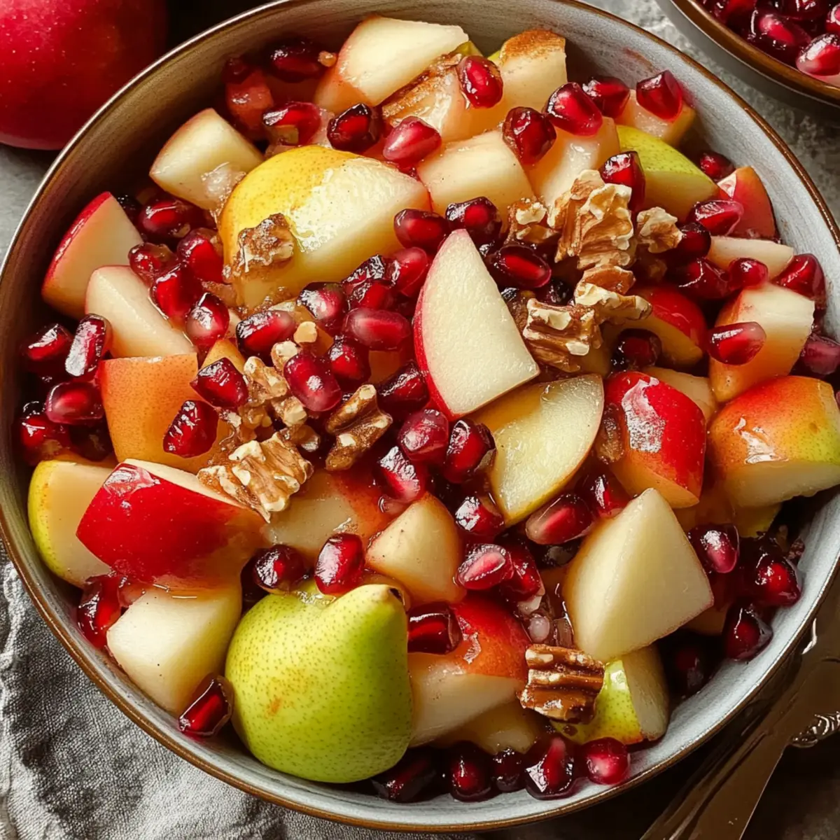 As I stood by the window, watching the first snowflakes of the season drift lazily to the ground, I felt a tugging inspiration to create something that captures the cozy spirit of winter. This Winter Fruit Salad with Cinnamon Vanilla Dressing is my answer—a bright and cheerful medley of seasonal fruits that brings a refreshing twist to chilly days. With no cooking required and just 15 minutes of prep, you have a nutritious dish that’s only 250 calories per serving! Perfect for holiday gatherings or a quick, guilt-free snack, this vibrant salad is sure to please everyone around the table. Ready to discover how simple and delightful healthy eating can be? Why is This Fruit Salad a Must-Try? Vibrant flavors: This salad bursts with the freshness of winter fruits, creating a delightful taste sensation that is both refreshing and comforting. No cooking required: Spend just 15 minutes prepping this salad, allowing you to enjoy healthy eating without the hassle. Versatile options: Mix and match seasonal fruits or adjust sweetness with honey—find the perfect combination for your taste! Nutrient-rich: At only 250 calories per serving, this salad is not just delicious but packed with vitamins and antioxidants for a guilt-free pleasure. Pair it with a creamy yogurt dip for an extra treat, just like with our Cucumber Caprese Salad. Crowd-pleaser: Serve as a festive addition to your holiday table or a refreshing snack, and watch it disappear! Winter Fruit Salad Ingredients For the Salad Pears – Adds gentle sweetness and juicy texture; substitute with apples for a similar flavor profile. Red Apples – Provide crispiness and a balanced tartness; green apples can be swapped for extra tartness. Pomegranate Seeds – Enhance juiciness with a tangy pop; consider blueberries as an alternative for a different flavor. Red Seedless Grapes – Contribute a smooth, sweet component; green grapes offer a unique taste as a fun swap. Kiwi – Offers tropical zing and a pleasing chew; use oranges for a refreshing citrus kick. Banana – Binds flavors together with creaminess; replace with avocados for a healthier fat option. Walnuts – Introduce a nutty crunch and healthy fats; omit for a nut-free version or substitute with pumpkin seeds. Dried Cranberries – Add sweetness and vibrant color; raisins or chopped dried apricots can be fun alternatives. Lemon Juice – Prevents fruit browning while adding acidity; lime juice works in a pinch for a different tang. For the Cinnamon Vanilla Dressing Orange Juice – Provides a bright, citrusy base; lemon juice can substitute if needed. Honey – Adds natural sweetness; use maple syrup or agave for a vegan option if desired. Ground Cinnamon – Offers warmth and depth; nutmeg can be a lovely substitute for a different spice profile. Vanilla Extract – Rounds out the dressing’s flavor; omit if there’s an allergy concern. This Winter Fruit Salad with Cinnamon Vanilla Dressing is not just a visual delight—it’s a healthy treat bursting with flavor! Step‑by‑Step Instructions for Winter Fruit Salad with Cinnamon Vanilla Dressing Step 1: Prepare the Fruits In a large mixing bowl, start by dicing your fresh pears and apples into bite-sized pieces. Squeeze in the lemon juice to coat the fruits, which will help keep them vibrant and prevent browning. This step takes about 5 minutes and creates a beautifully colorful base for your Winter Fruit Salad. Step 2: Combine the Ingredients Gently fold in the pomegranate seeds, red seedless grapes, kiwi slices, banana chunks, walnuts (if using), and dried cranberries. Use a spatula to mix everything carefully, ensuring not to bruise the delicate fruits. This should take around 3-4 minutes; look for even distribution of colors for a festive touch! Step 3: Whisk the Dressing In a separate small bowl, whisk together orange juice, honey, ground cinnamon, and vanilla extract until fully combined. This step can also take about 3 minutes. The dressing should be smooth and aromatic, with a warm, inviting scent. Don’t rush it; the flavors need to blend beautifully for the best result. Step 4: Dress the Salad Pour the cinnamon vanilla dressing over the fruit mixture and gently toss to ensure every piece of fruit is evenly coated. Use a light touch to maintain the integrity of the fruits, and admire the vibrant colors combining into a harmonious blend. This should take about 2 minutes of careful mixing. Step 5: Chill the Salad Cover your mixing bowl with plastic wrap or a lid and place it in the refrigerator for at least 30 minutes. This resting period will allow the flavors of the Winter Fruit Salad with Cinnamon Vanilla Dressing to meld beautifully, enhancing the overall taste. Make sure it’s chilled, as it tastes best served cool. Step 6: Serve and Enjoy Before serving, gently toss the salad one last time to refresh the ingredients. Transfer the vibrant fruit mix into a serving dish or individual bowls, and prepare to delight your guests with this colorful, healthy treat. This step takes only a minute, ensuring readiness for your gathering in no time! What to Serve with Winter Fruit Salad with Cinnamon Vanilla Dressing Elevate your meal with these delightful pairings that complement the bright flavors of winter fruits and warm cinnamon notes. Creamy Yogurt: A dollop of Greek yogurt adds richness and tang, enhancing the sweetness of the salad while providing a protein boost. Toasty Granola: Sprinkle crunchy granola atop the salad for an extra layer of texture and nutty flavor, making each bite a delightful surprise. Savory Cheese Platter: Serve alongside a selection of cheeses like brie or goat cheese to contrast the sweet, fruity flavors and create a balanced spread. Chilled Sparkling Water: A refreshing drink like sparkling water with a twist of lime not only hydrates but also refreshes your palate between bites. Nutty Charcuterie Board: Pair with a charcuterie board featuring nuts, olives, and cured meats for a delightful b