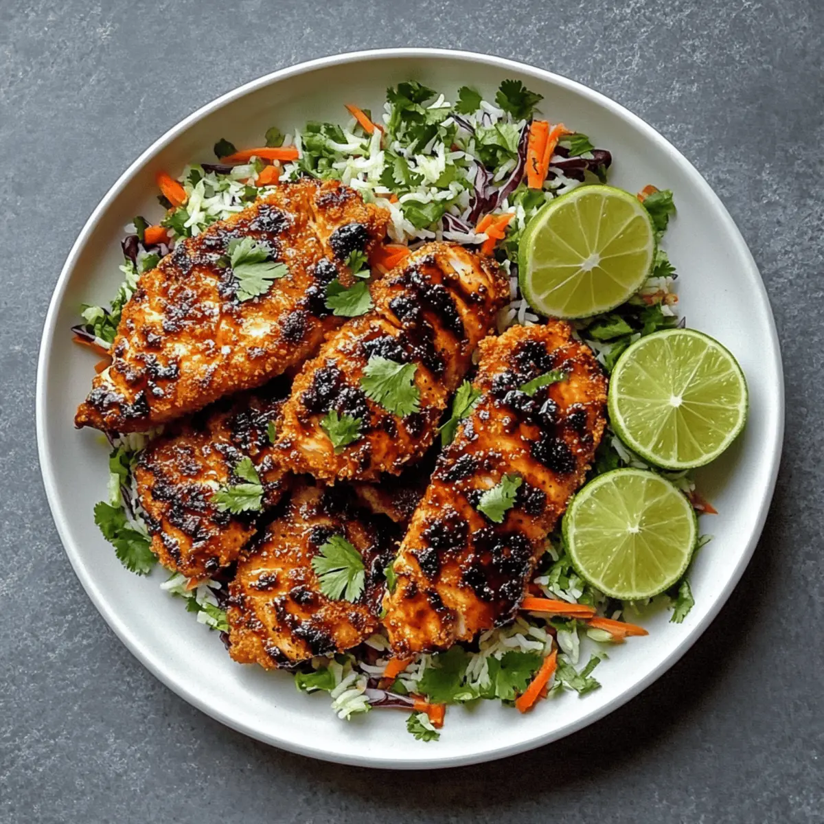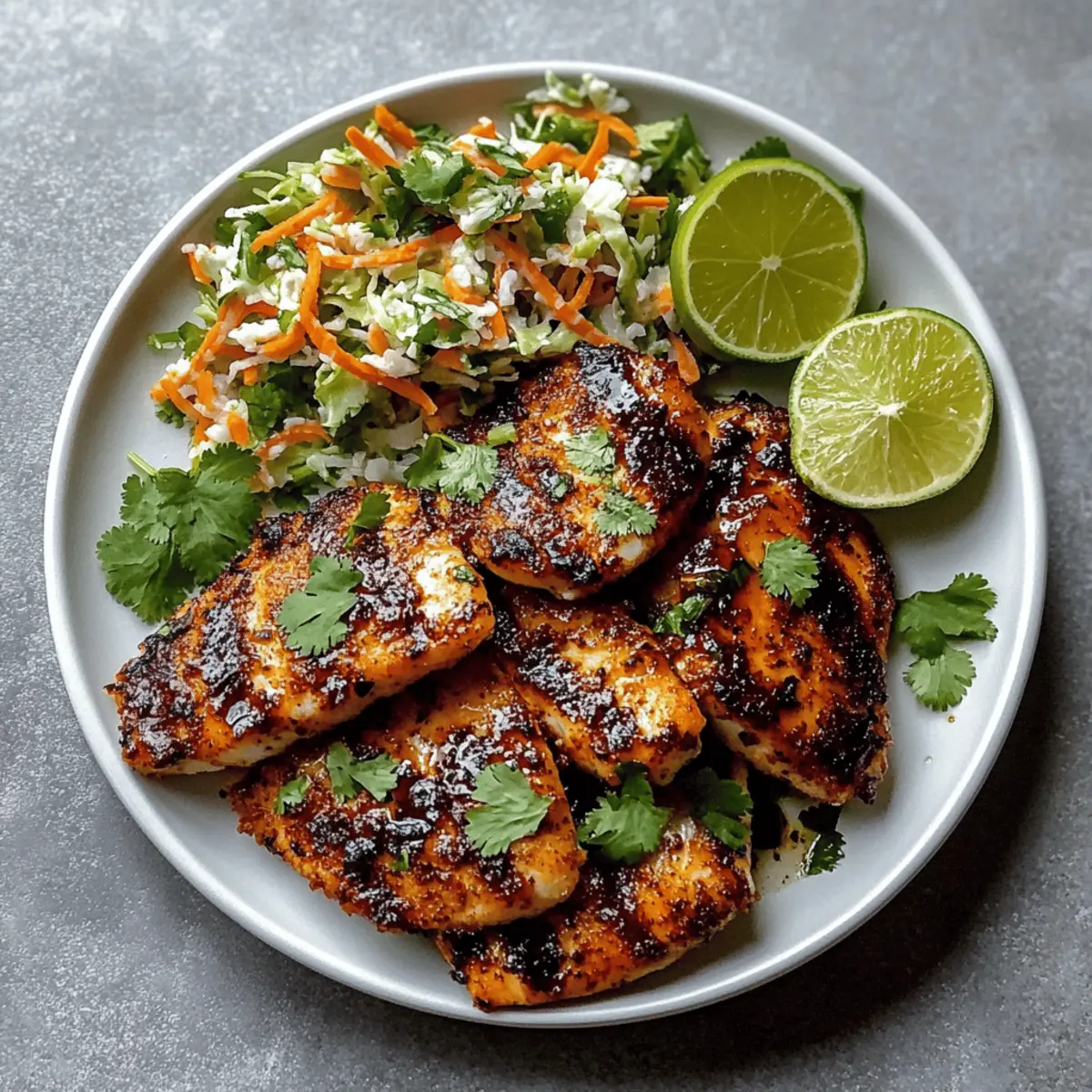 On a plate, arrange the crispy fish strips over a bed of rice or quinoa. Top generously with the freshly made slaw, and feel free to add your favorite toppings such as extra lime wedges or avocado slices. This bright and flavorful presentation brings together the elements of your Zesty Chili Lime Marinade, making for an irresistible meal that showcases your culinary skills.